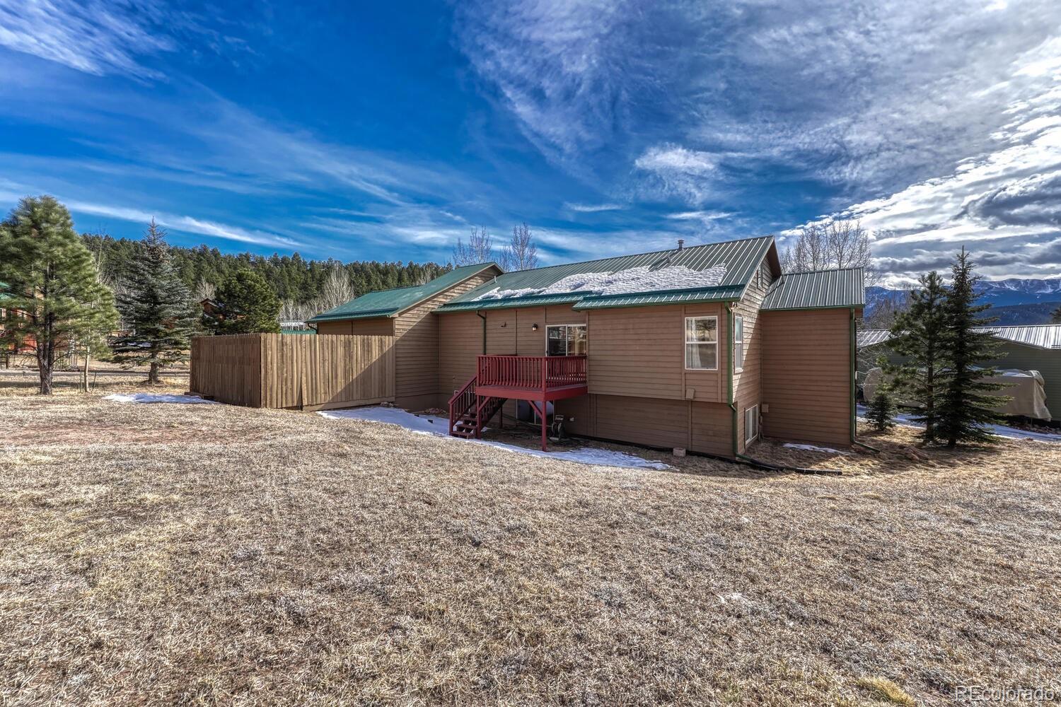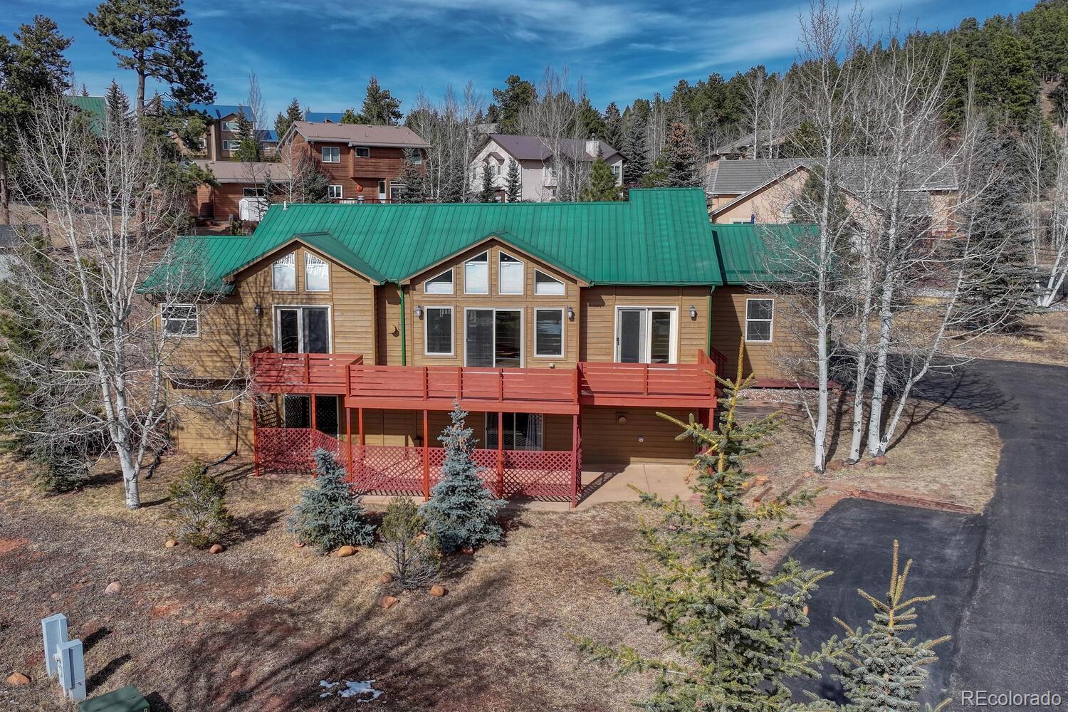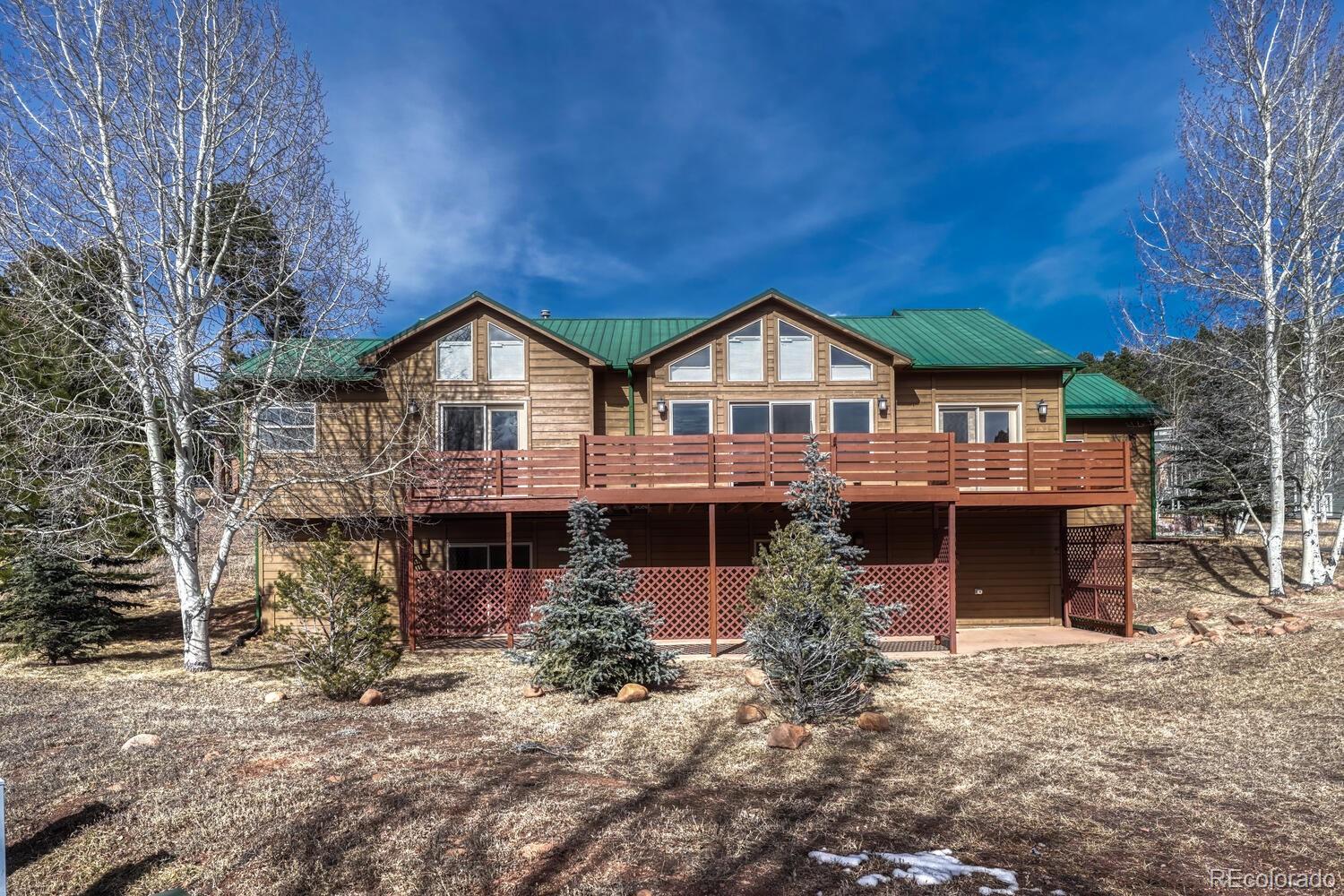 Nestled in a breathtaking mountain setting, this beautiful Woodland Park retreat offers the perfect blend of space, comfort, and unforgettable views. Set on a large lot surrounded by aspens and evergreens, this home delivers the peaceful Colorado lifestyle you’ve been searching for — with room to breathe, explore, and relax. Step inside to soaring vaulted ceilings and a light-filled great room framed by expansive windows showcasing big mountain views. The open main level is warm and inviting, centered around a cozy gas fireplace — perfect for crisp mountain evenings. The updated kitchen features ample cabinetry, modern appliances, and a functional layout that flows seamlessly into the dining area, ideal for everyday living or entertaining. One of the true highlights is the huge deck stretching across the back of the home, offering the perfect place to grill, gather with friends, or simply soak in the sweeping scenery and fresh alpine air. The spacious primary suite provides a relaxing retreat with plenty of room and comfort. Downstairs, a large basement family room offers flexible additional living space and features a second gas fireplace, creating the perfect spot for movie nights, guests, or a quiet lounge area. With RV parking, generous outdoor space, and an unbeatable mountain backdrop, this property is ideal as a full-time residence, second home, or Colorado getaway. Enjoy privacy, views, and the best of Woodland Park living — just minutes from town amenities, hiking, and endless outdoor adventure. Schedule your private showing today and experience mountain living at its finest!