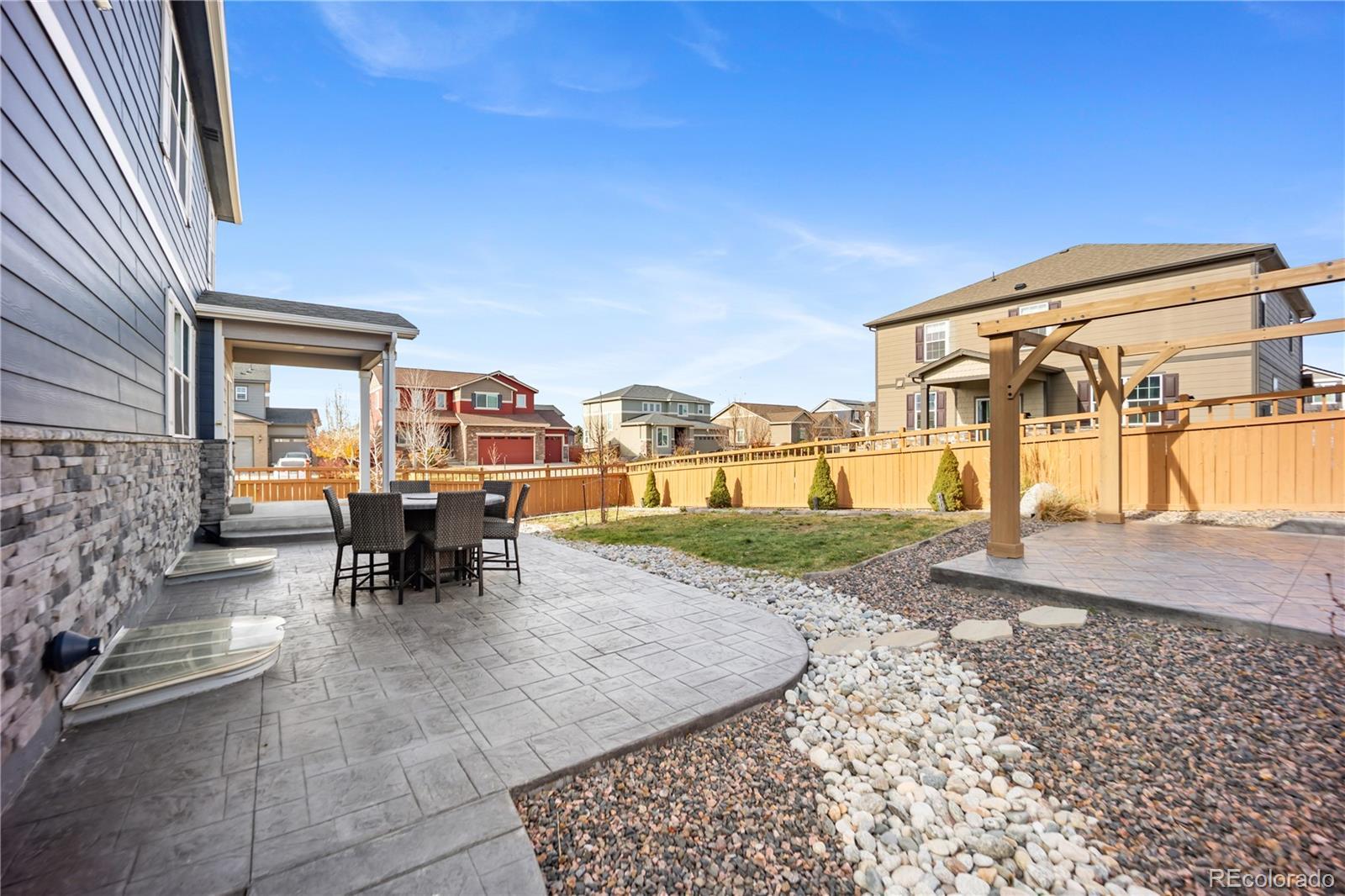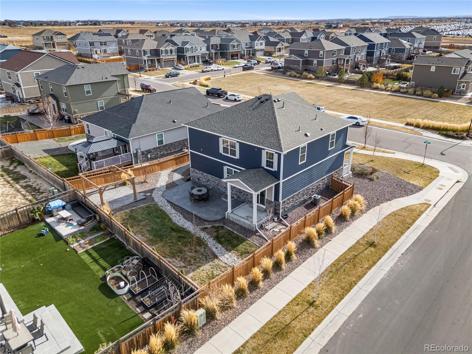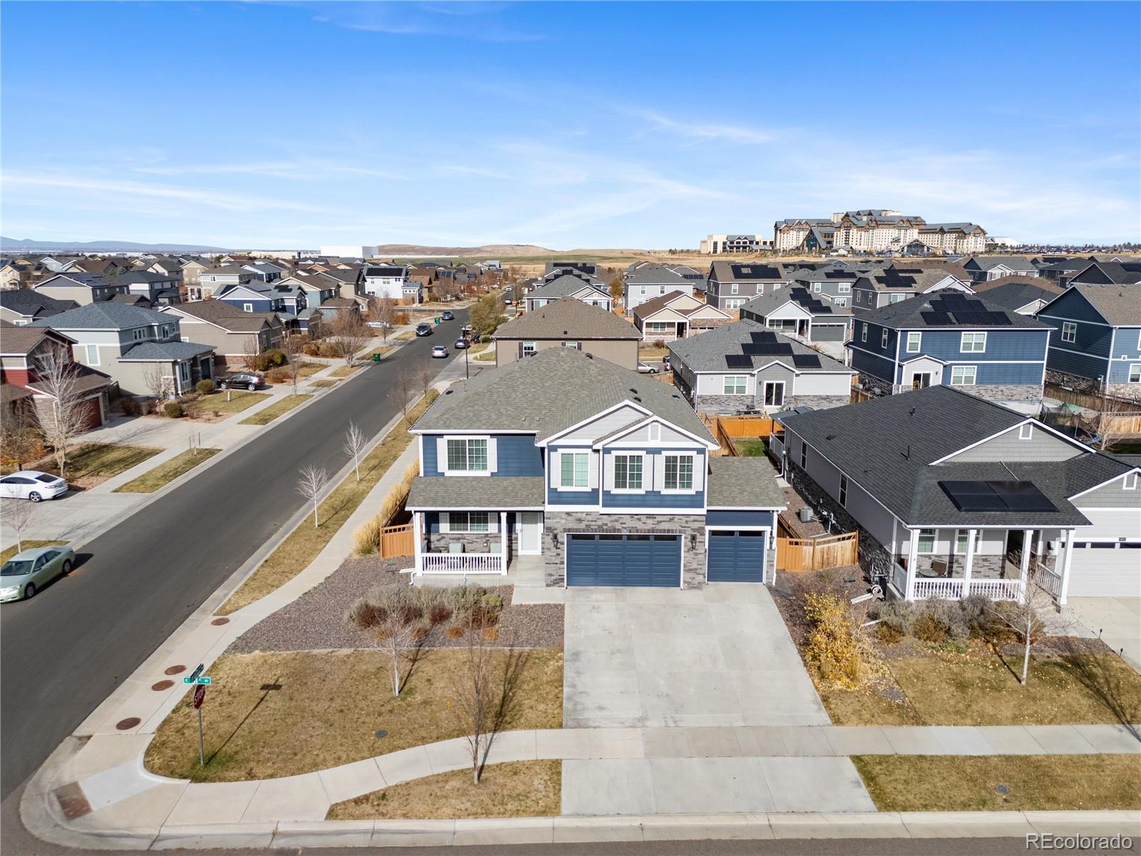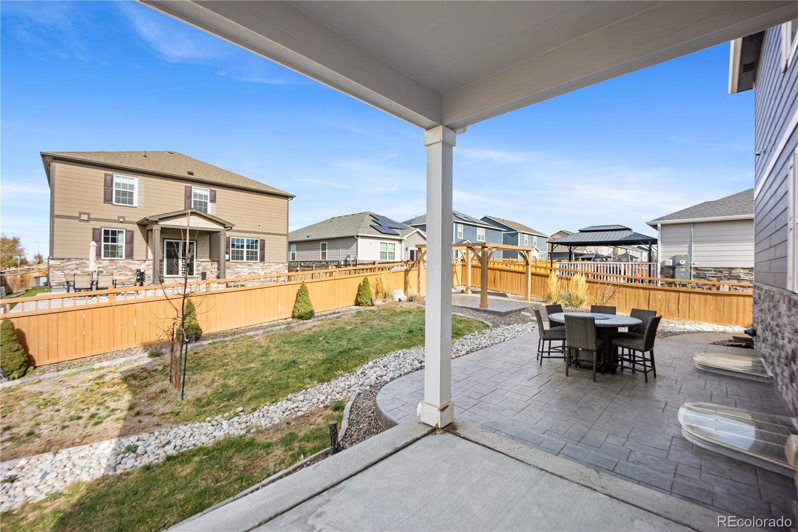 Welcome to this spacious 5-bedroom, 3-bathroom home located in the highly sought-after High Point DIA community in Denver. Offering over 3,800 sq. ft. of living space, this beautiful two-story home with an unfinished basement provides room to grow and endless potential. Step inside to an inviting, open layout featuring a modern kitchen with granite countertops, white cabinetry, and a walk-in pantry—perfect for cooking, hosting, and everyday living. Upstairs, a generous loft adds flexible space for a second living area, home office, or playroom. The backyard is designed for outdoor enjoyment, complete with stamped concrete and a charming gazebo that stays with the home—ideal for relaxing evenings and weekend gatherings. With its spacious floor plan, thoughtful upgrades, and prime location near DIA, parks, trails, and community amenities, this home is the perfect blend of comfort and convenience. *************CHECK OUT THIS VIDEO OF THE HOME!!!********************* https://listings.vibrantmediaco.com/videos/019a8e67-d7e8-7000-8ee6-df7176079578