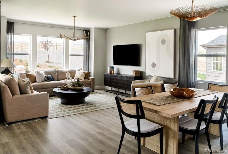 What's Special: Understairs Storage | 2nd Floor Laundry Room | Close to Park. New Construction - March Completion! Built by America's Most Trusted Home Builder. Welcome to the Estes at 28430 E 4th Place in Sky Ranch. This popular two-story floor plan offers a welcoming entry and a flexible main-floor space that’s perfect for a home office or playroom. The kitchen features a large pantry and an eat-in island that flows into the great room and dining area for easy entertaining. Upstairs, you’ll find a bright primary suite, a spacious loft, two additional bedrooms, and a convenient laundry room. Sky Ranch is a vibrant Aurora community with a neighborhood park, scenic trails, and quick access to E-470, DIA, and downtown Denver. You’ll also enjoy nearby shopping at Southlands Mall and endless outdoor recreation with parks, open space, and golf courses just miles away. Additional highlights include: gas range, crown molding in kitchen. Photos are for representative purposes only. MLS#3682979