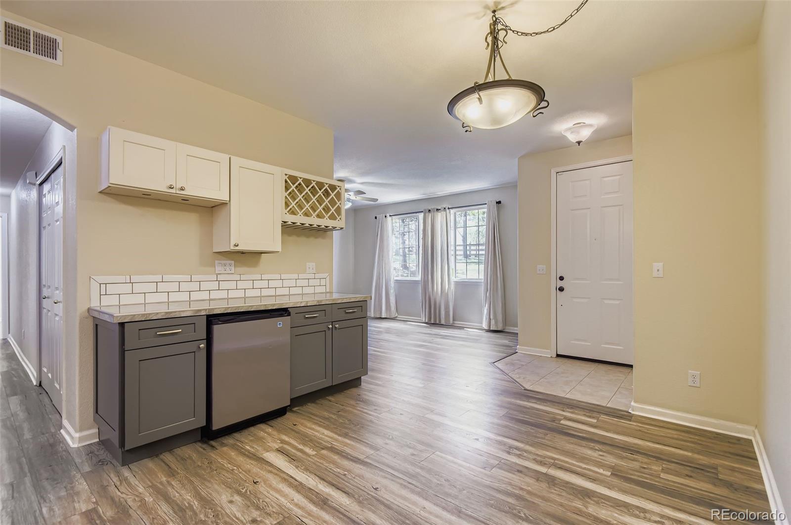 Welcome to this updated and beautifully maintained townhome offering one-level living at its best. The spacious living room features built-in shelves and cabinets, plus patio access. The large, beautiful kitchen comes complete with all appliances and Quartz Island while the dining area boasts a built-in cabinet with wine rack and beverage refrigerator. The light-filled primary suite includes a walk-in closet; natural light brightens every corner of this home. A two-car tandem garage with new epoxy flooring and sturdy shelving provides convenience and storage. Enjoy mountain views, open space, and foothills right outside your door. Minutes to Chatfield Reservoir. PEACEFUL Location yet perfectly positioned for mountain getaways, city trips, or quiet evenings on your deck. Home Warranty Included.