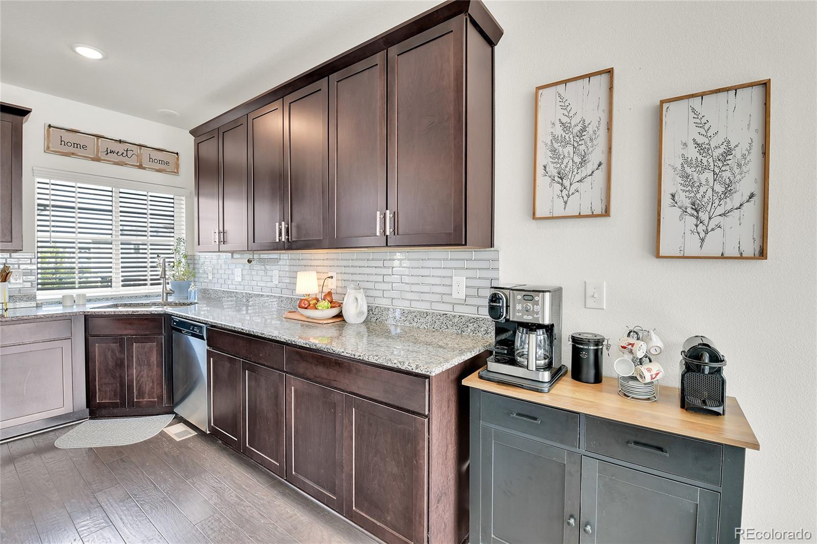 Discover low-maintenance living with thoughtful design and room to grow in this 3-story home, built in 2018 with soaring 9–10 ft ceilings and a light-filled open layout designed for easy living and entertaining. The gourmet kitchen shines with stainless steel appliances, gas range, large pantry, and an oversized island—perfect for hosting. Enjoy true low-maintenance luxury with full HOA coverage including lawn care and snow removal (sidewalks and stairs too). The main-floor primary suite offers a peaceful escape with a spa-like bath and walk-in closet. Upstairs, two bedrooms share a full bath, while the lower level provides flexible space for hobbies, pets, or storage, plus direct garage and laundry access. Step outside to a xeriscaped backyard with a custom patio and space for container gardening. Ideally located in vibrant Aurora near trails, parks, DIA, E-470, Southlands, Buckley SFB, and the Aurora Reservoir—this home is the perfect blend of comfort, convenience, and style.