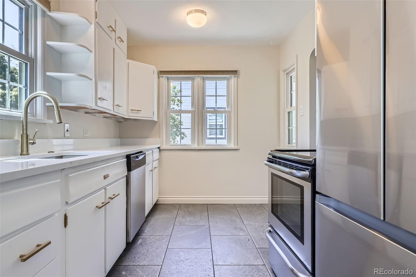 This darling, southern charm home is inviting and warm from the moment you pull up! A covered front porch greets you as you come inside. Gorgeous hardwoods throughout the open concept family room and dining room, 2 beds and an updated bath and kitchen with BRAND NEW Quartz countertops, hardware, sink and faucet complete the main floor. The basement has 2 non-Conforming bedrooms, Great Room, laundry and another bathroom, making this area the perfect spot for guests and/or watching movies. Enjoy the large flat backyard from the covered porch off the garage. Behind the garage is another fenced in parking space for another vehicle, boat or RV. This home is bursting in personality! Built-Ins, Arched Doorways, and Natural Light! Honestly, it is like a doll house! Brand new exterior paint. High ticket items have all been replaced within the last 10 years; roof, HVAC, windows, tree trimming, water heater, electrical panel and sewer line. This is an ADORABLE, WELL MAINTAINED home in a PRIME location! You have all that Denver has to offer right outside your door. Close to restaurants, shopping, trails, and parks. Come and See this Southern Charmer today!
