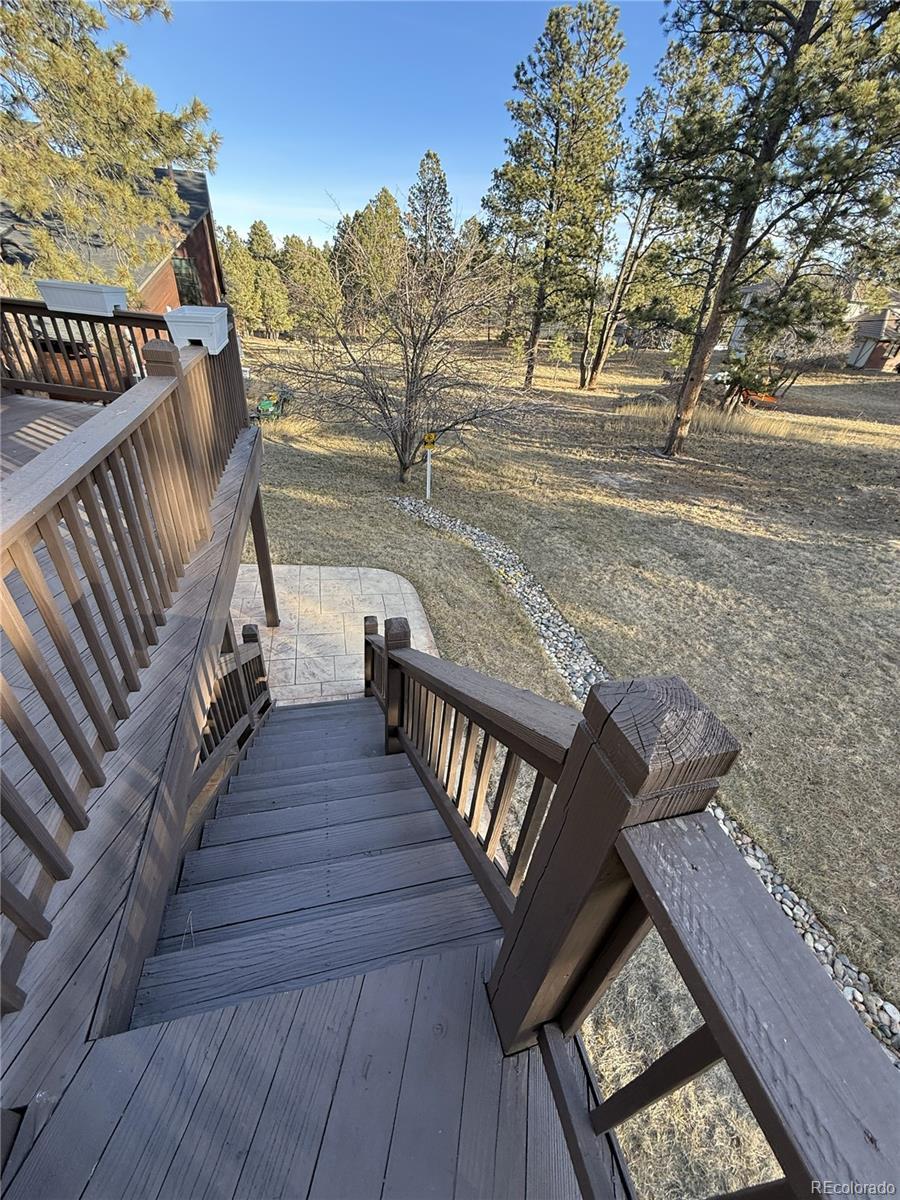 Immaculate and extensively updated ranch-style home with a finished walk-out basement in the heart of The Pinery. The open and bright main level features vaulted ceilings, hardwood flooring throughout the great room, dining area, and kitchen, anchored by a wood-burning fireplace. The brand-new, never-used kitchen showcases upgraded cabinetry, quartz countertops, and a full suite of new stainless-steel appliances, including double ovens and a hooded cooktop. The main level offers three generously sized bedrooms and two bathrooms, including a private primary suite, with recently remodeled bathrooms throughout. The finished walk-out basement provides flexible living space with multiple recreation or living areas, two additional bedrooms, a bathroom, a dedicated laundry room, and an additional private room currently used as a bedroom or home office, ideal for guests, multi-generational living, or work-from-home use. The home has been completely repainted inside and out and thoughtfully updated with a roof approximately two years old, newer dual-zone furnaces and air conditioning systems, a newer water heater, a brand-new electrical panel, new plumbing from the main service line throughout the home, and a brand-new whole-house water softener. Extensive attention to detail throughout the renovation results in a home that looks, feels, and functions like new, providing added confidence during the inspection process. Outdoor living is a standout feature, with an elevated deck offering exceptional privacy and a dry-below system beneath the deck, creating a covered space ideal for outdoor lounging or entertaining. Situated on a private, over half-acre lot, the property backs to a 10-acre parcel and Pinery Water District land, offering exceptional privacy in a peaceful, tree-lined setting while remaining close to community amenities and the Pinery Country Club and Golf Course.