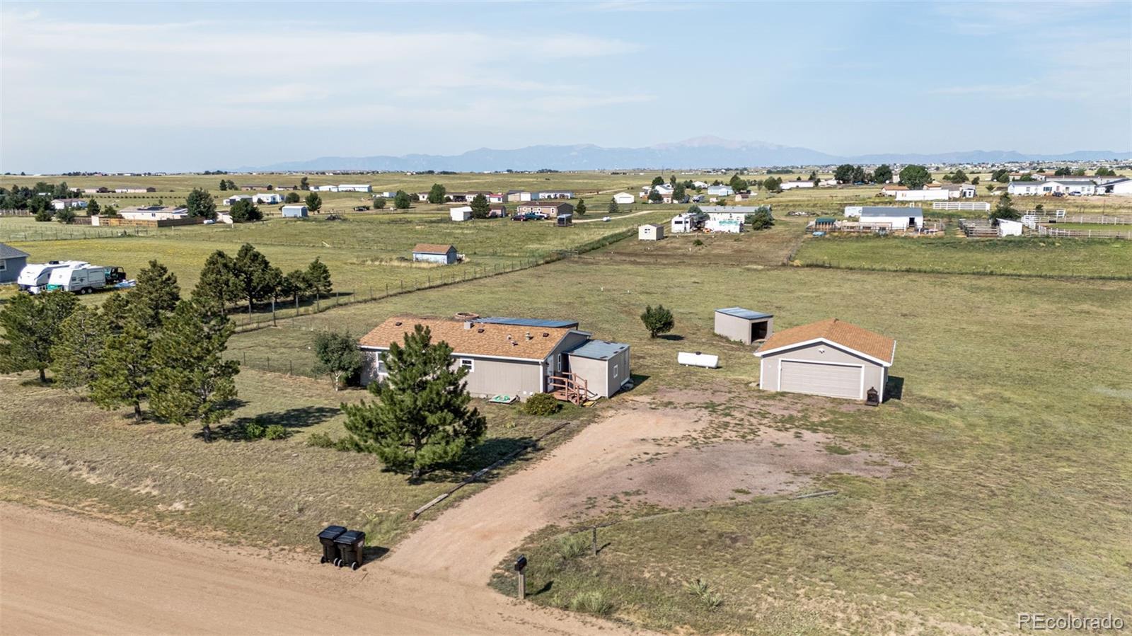 Welcome to your Colorado dream property! Nestled on 3.6 fully fenced acres in Sagecreek South, this charming home offers breathtaking Front Range and Pikes Peak views, with spectacular sunrises and sunsets right from your backyard. Inside, you'll find a bright and open floor plan featuring vaulted ceilings, 2 spacious bedrooms, 2 full bathrooms, and a dedicated office or den—perfect for working from home or flexible living. Thoughtfully updated for comfort and peace of mind, this home includes a newer roof, furnace, AC, hot water heater, and a whole-house water filtration system. Outside, enjoy an oversized detached garage, multiple outbuildings, and room to garden, roam, or bring your animals. With no HOA, RR-2.5 zoning, and space to grow, this property offers rare freedom and functionality—all under $400K. Don’t miss this move-in-ready gem with unmatched value, views, and versatility!