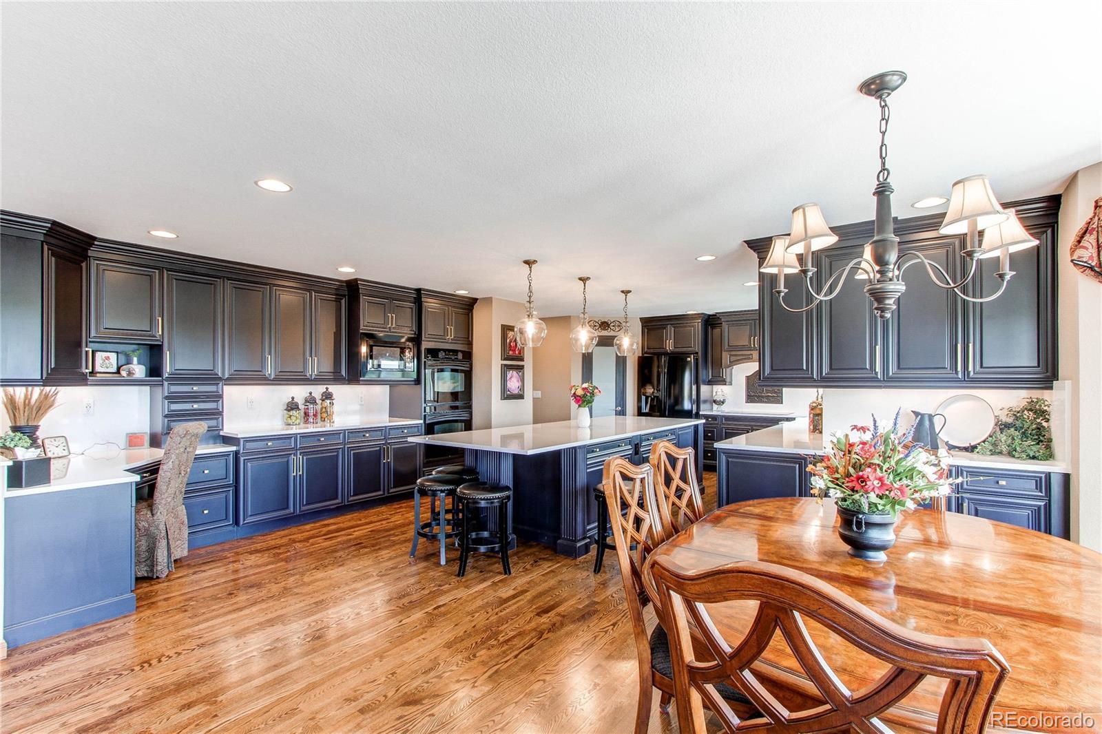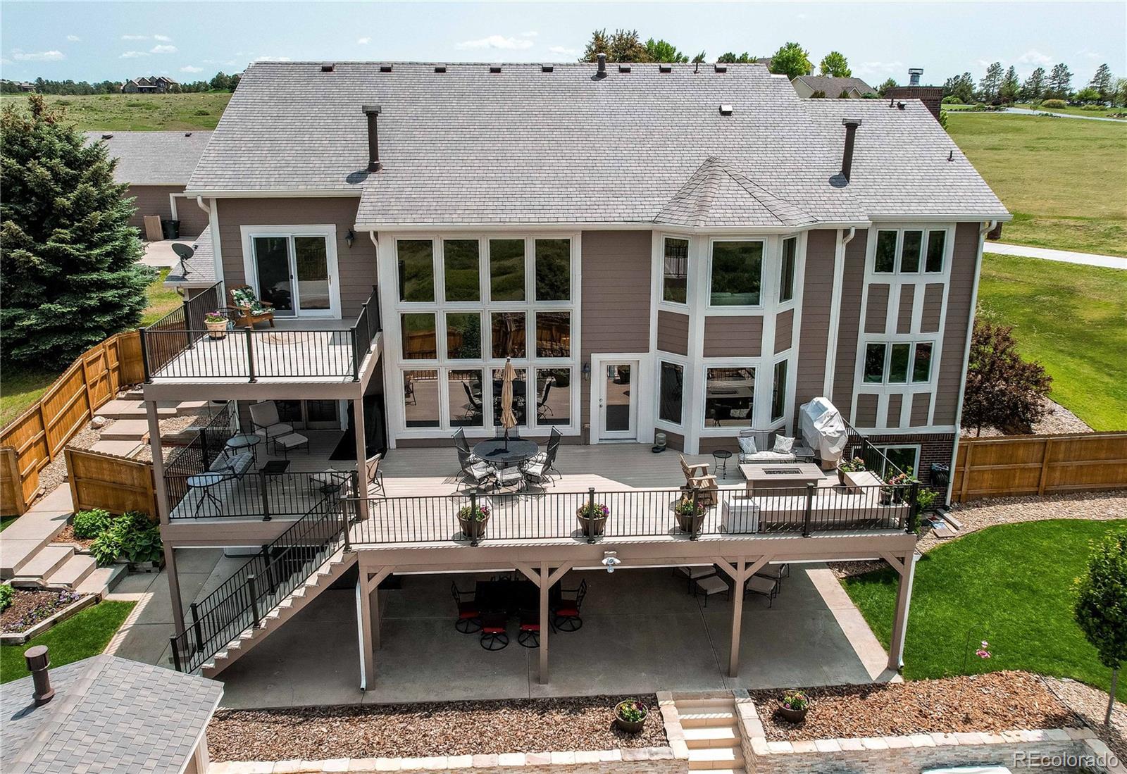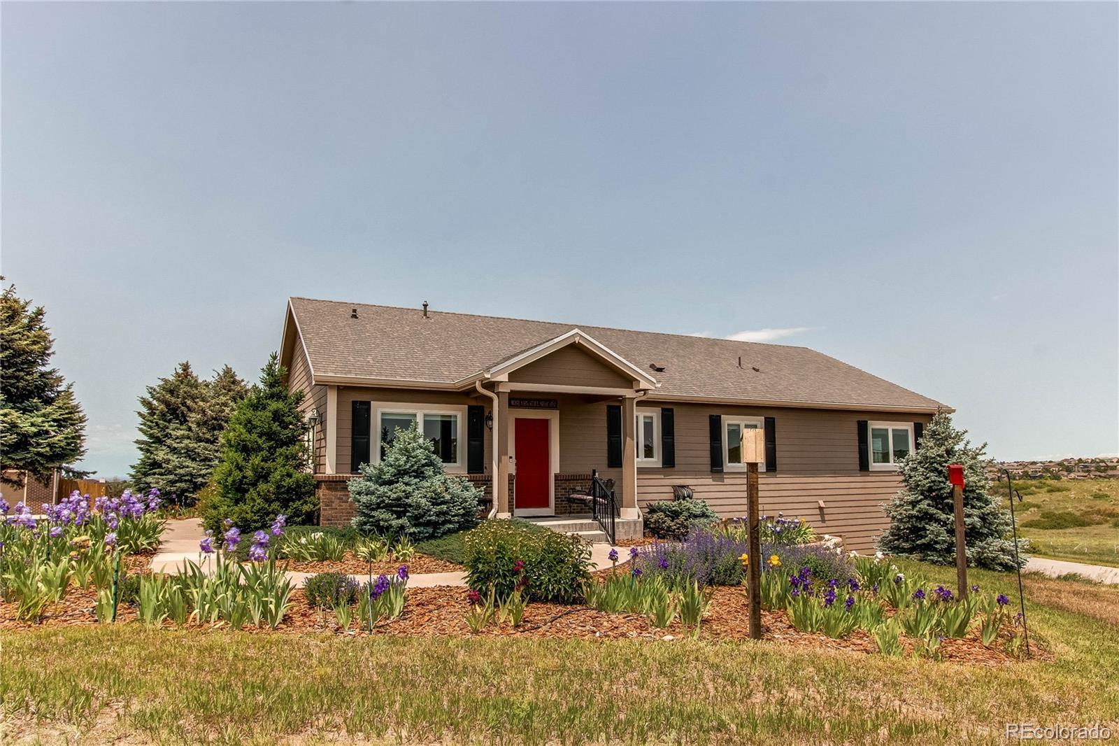 Exceptional Estate in Prestigious Butterfield Neighborhood! Discover luxury, space, and breathtaking mountain views in this custom-built estate nestled on 5 acres that is beautifully landscaped and just minutes from downtown Parker. The main home features 5 bedrooms and 5 bathrooms, paired with a fully updated 1,100 sq ft guest house / ADU offering 2 bedrooms and 1 bath—perfect for guests, multi-generational living, or a private office. Inside, enjoy a remodeled gourmet kitchen, elegant living spaces with 3 fireplaces, and a luxurious primary suite complete with heated floors and a spacious walk-in closet. The walk-out basement includes a wet bar, game room, and exercise area that opens directly to a private backyard oasis. Perfect for entertaining, the outdoor amenities include a swimming pool, hot tub, fire pit, in-ground trampoline, and horseshoe pit—all set against stunning mountain views. A car enthusiast’s dream, the property includes a 14-car garage/workshop with an RV garage having a 14x14 door, 50-amp hookup, and dump station. The combined garages have 3,500 sq ft of space. There is over 6,500 sq ft of total living space. Recent updates: roof, driveway, septic tank, hot water heater, guest house carpet/windows, and new pool deck, plaster, tile, and fencing. Additional conveniences include upstairs laundry and abundant storage throughout. This estate combines high-end finishes, privacy, functionality, and unmatched views—an entertainer’s dream and a true Colorado gem!
