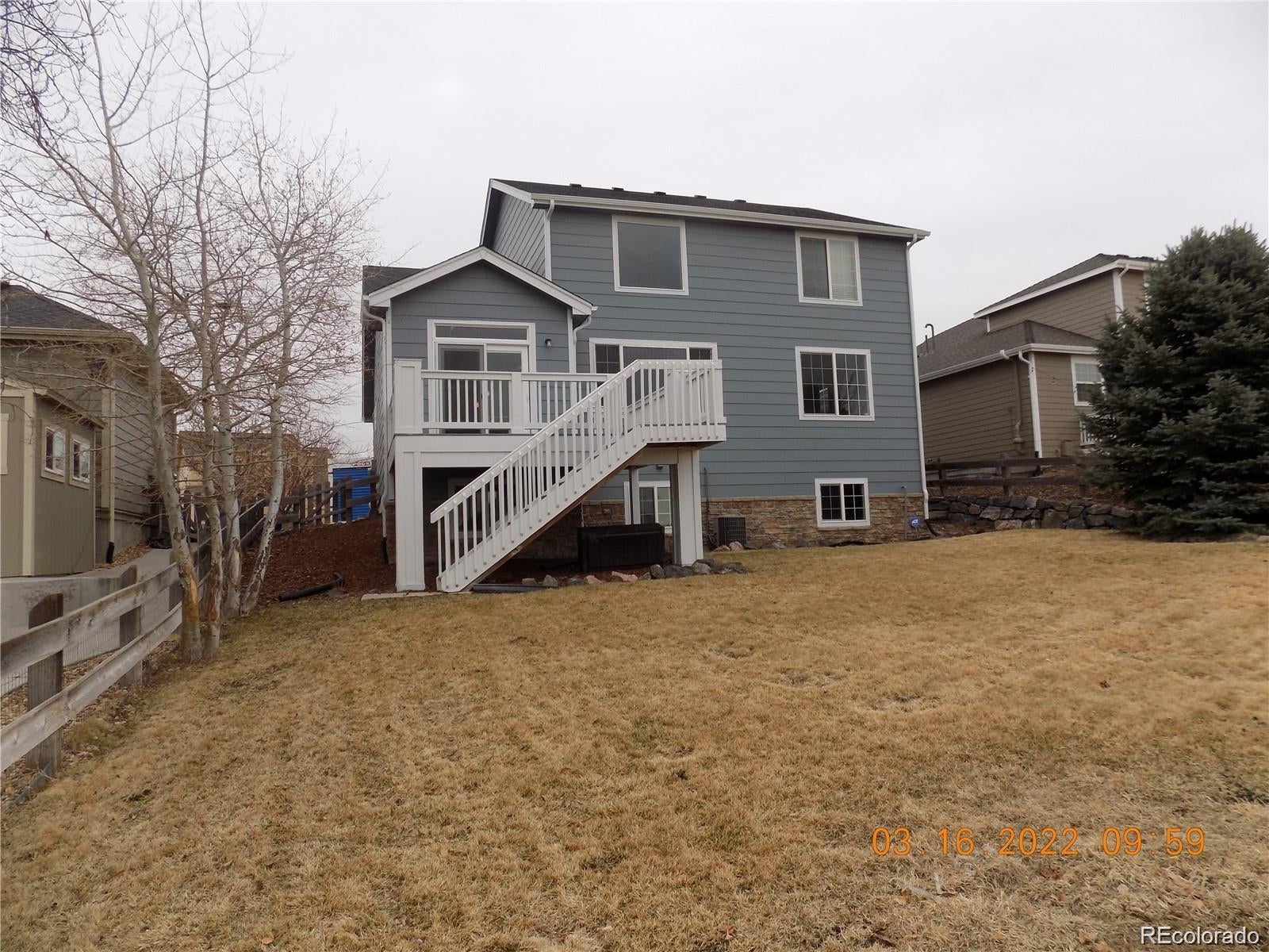 Villages of Parker Beauty. 2400 SF. Overlooking golf course with awesome mountain views from large deck or just watch some golf. Freshly painted throughout the home, brand new carpet, upgraded lighting. Main floor consist of vaulted great room with fireplace overlooking kitchen, granite counter tops and SS appliances. Hardwood floors on main level. Separate study with French doors. Main floor laundry room, half bath and Large master bedroom and bathroom with high ceilings. Great views from Master bedroom. Master bath 5 piece with large walk in closet. Upper level consist of large loft area, tech area, full bathroom with double sinks, and 3 more large bedrooms. Two car garage and large unfinished 1400 sf garden level basement. Elementary: Frontier Middle: Cimarron High: Legend (HB-25-1090) MONTHLY COST: Base rent $3600 Mandatory monthly fees if applicable: Rent if credit card used 2.95% fee; Returned ACH $30; UPFRONT FEES DUE AT APPLICATION: $55 PER person over 18 years of age; $500 earnest money to be applied to security deposit if accepted. Tenant pays electric, gas, cable/internet, renters insurance. Owner pays taxes, HOA, trash. LATE FEE: $50 after 7-day grace period. Lease break fee 75% rental rate, with 90-day notice, still responsible for property, per lease agreement. Move-in: Deposit $3600; prorated first month's rent if needed. No undisclosed fees. Portable Tenant Screening Reports (PTSR): 1) You have the right to provide Landlord with a PTSR that is not more than 30 days old, as defined in 38-12-902(2.5), Colorado Revised Statutes; and 2) if you provide Landlord with a PTSR, the Landlord is prohibited from: a) charging you a rental application fee; or b) charging you a fee for Landlord to access or use the PTSR.