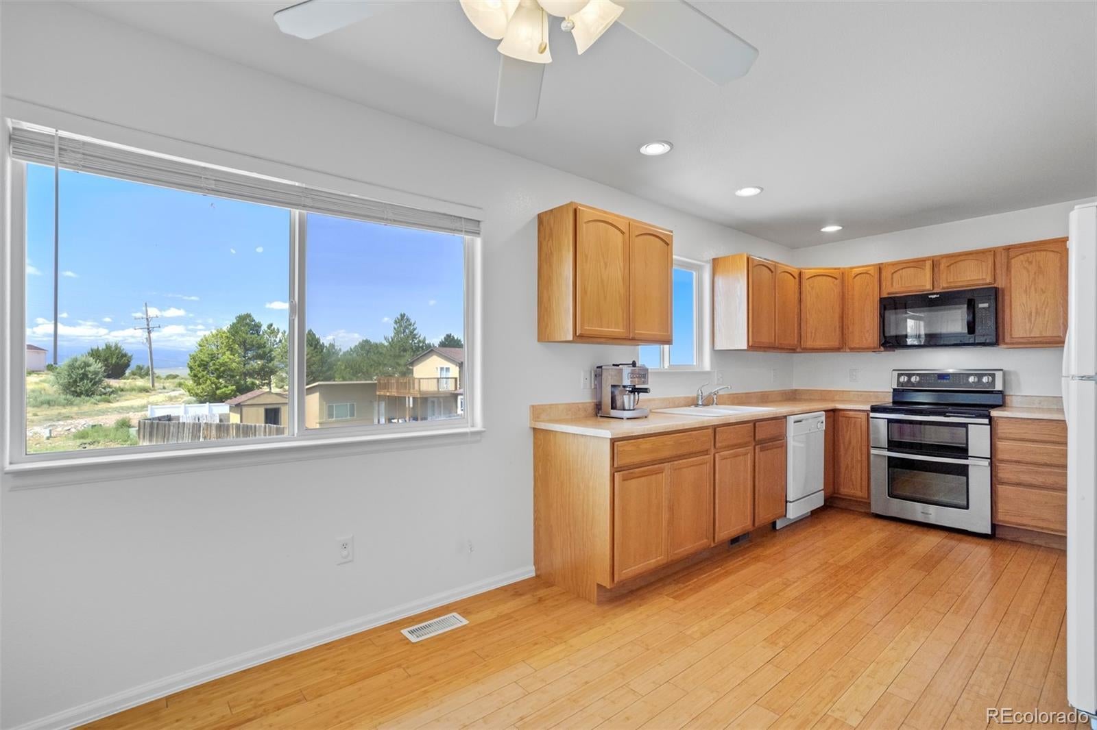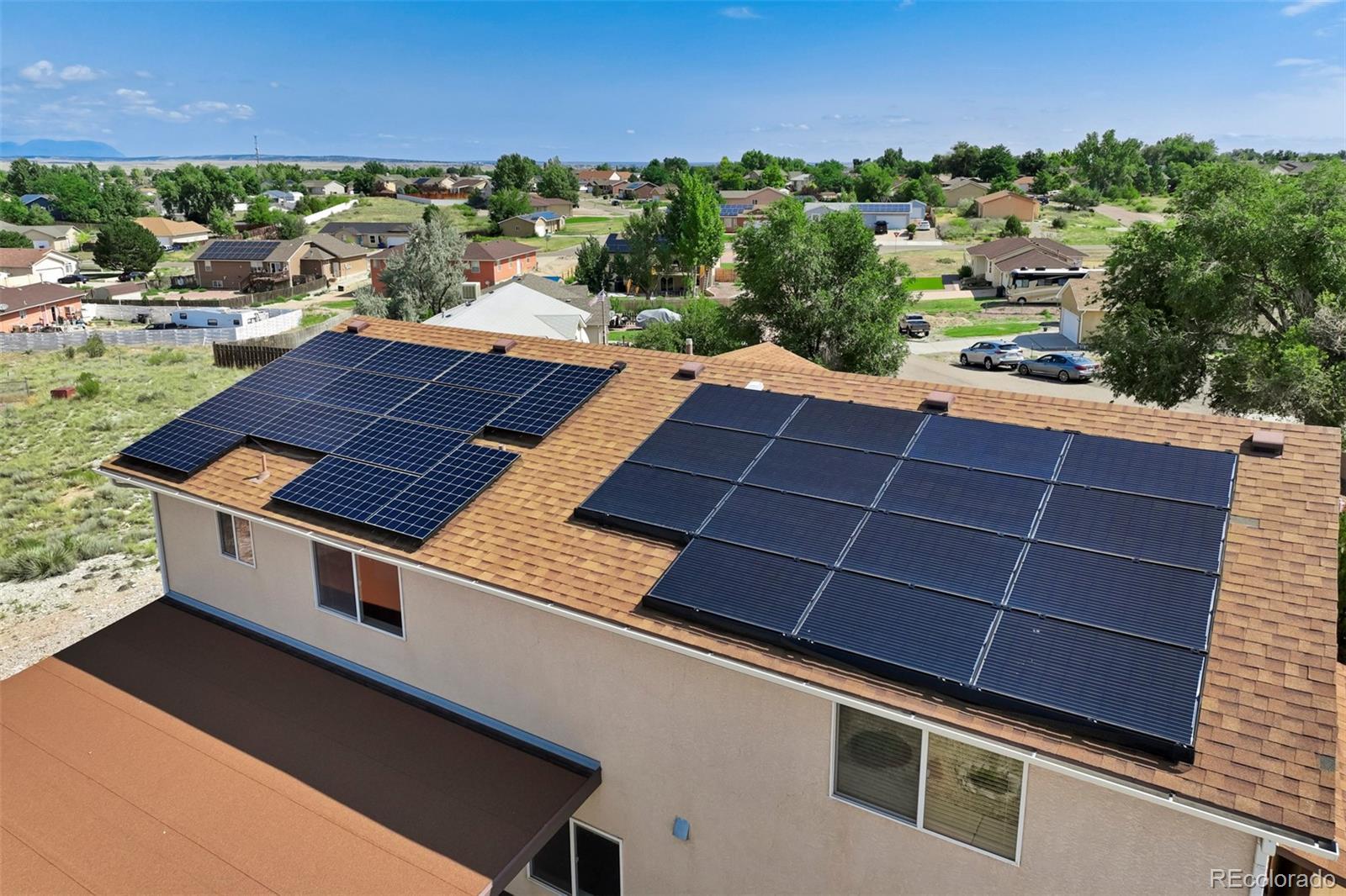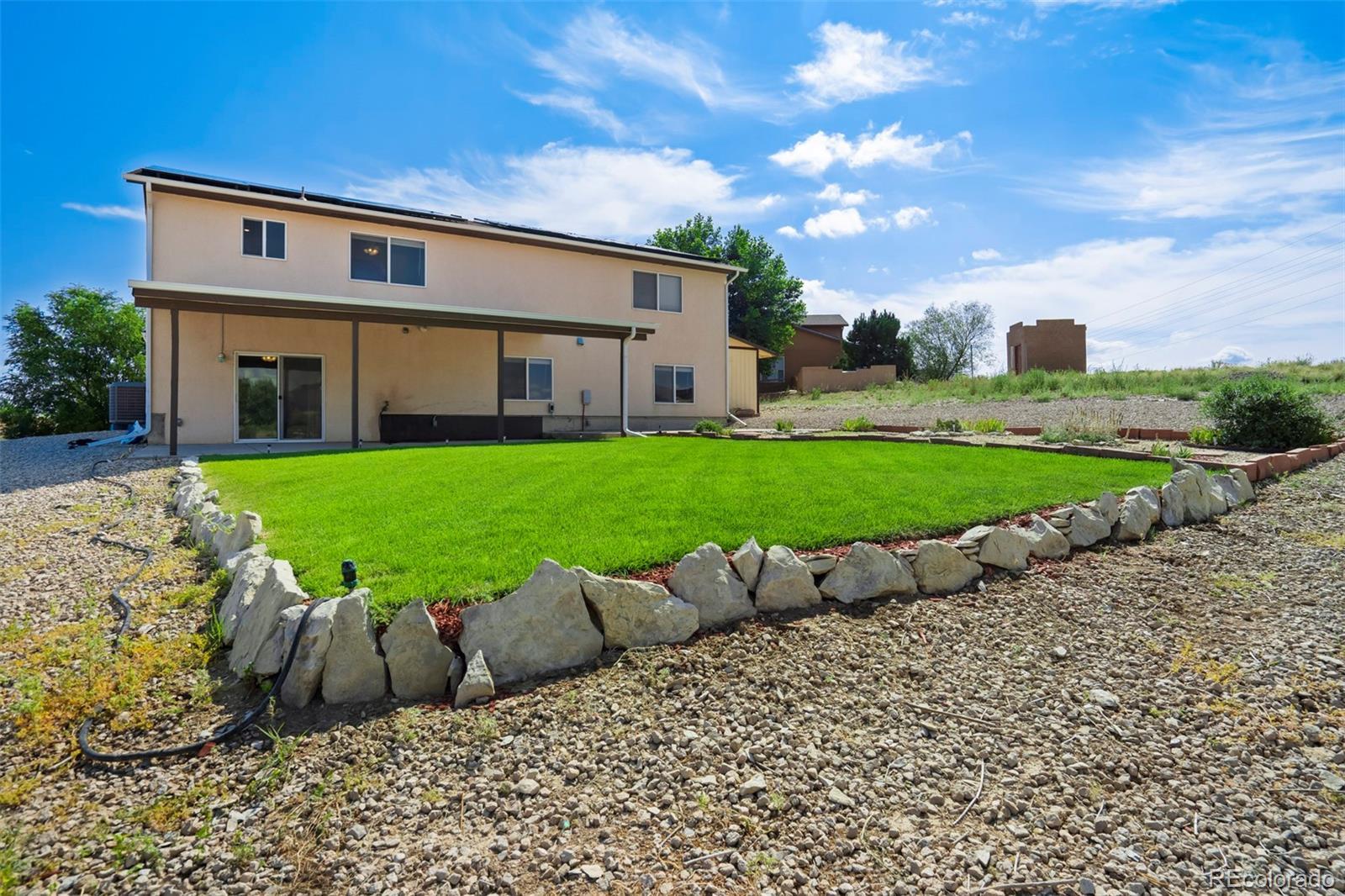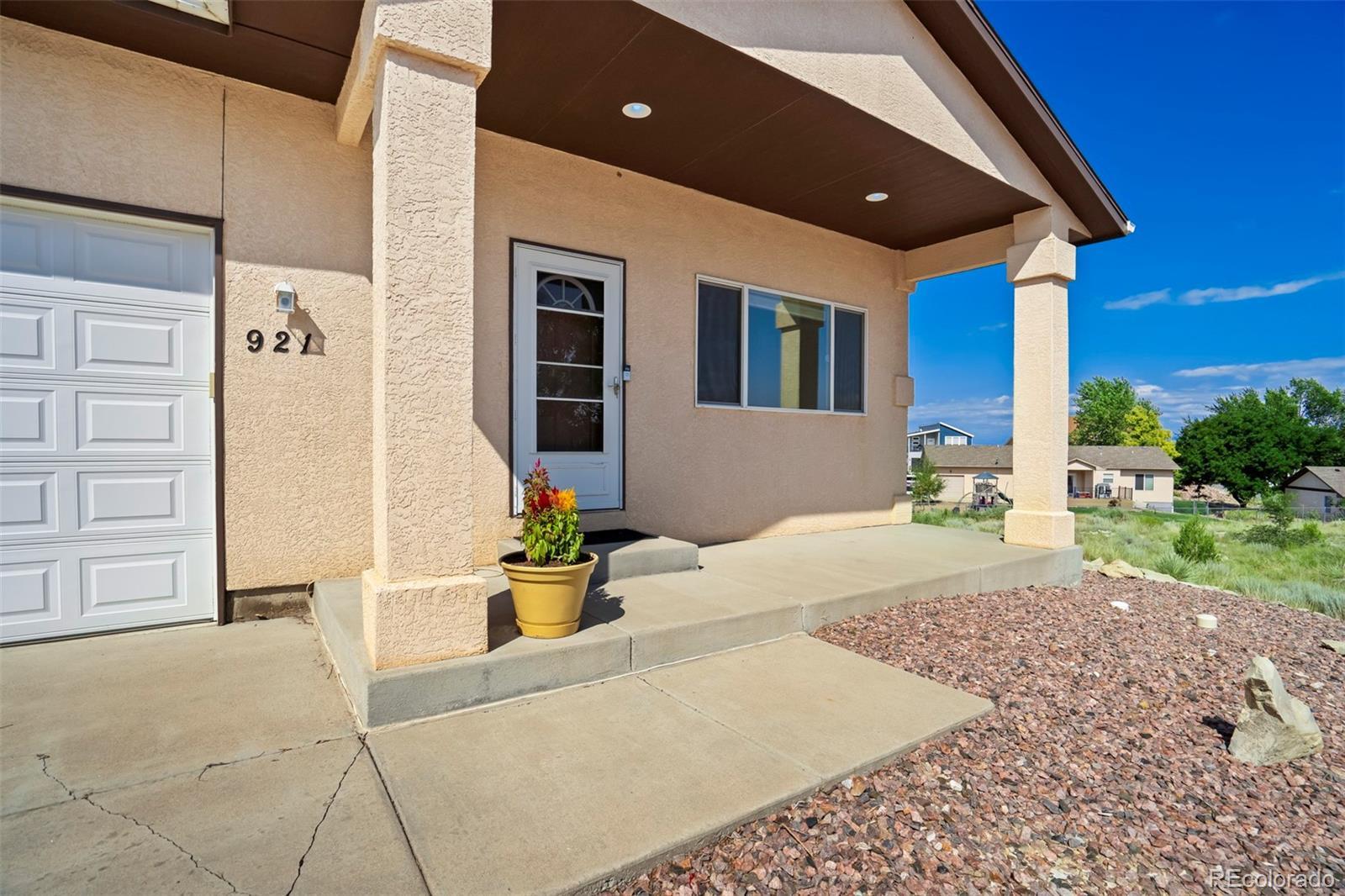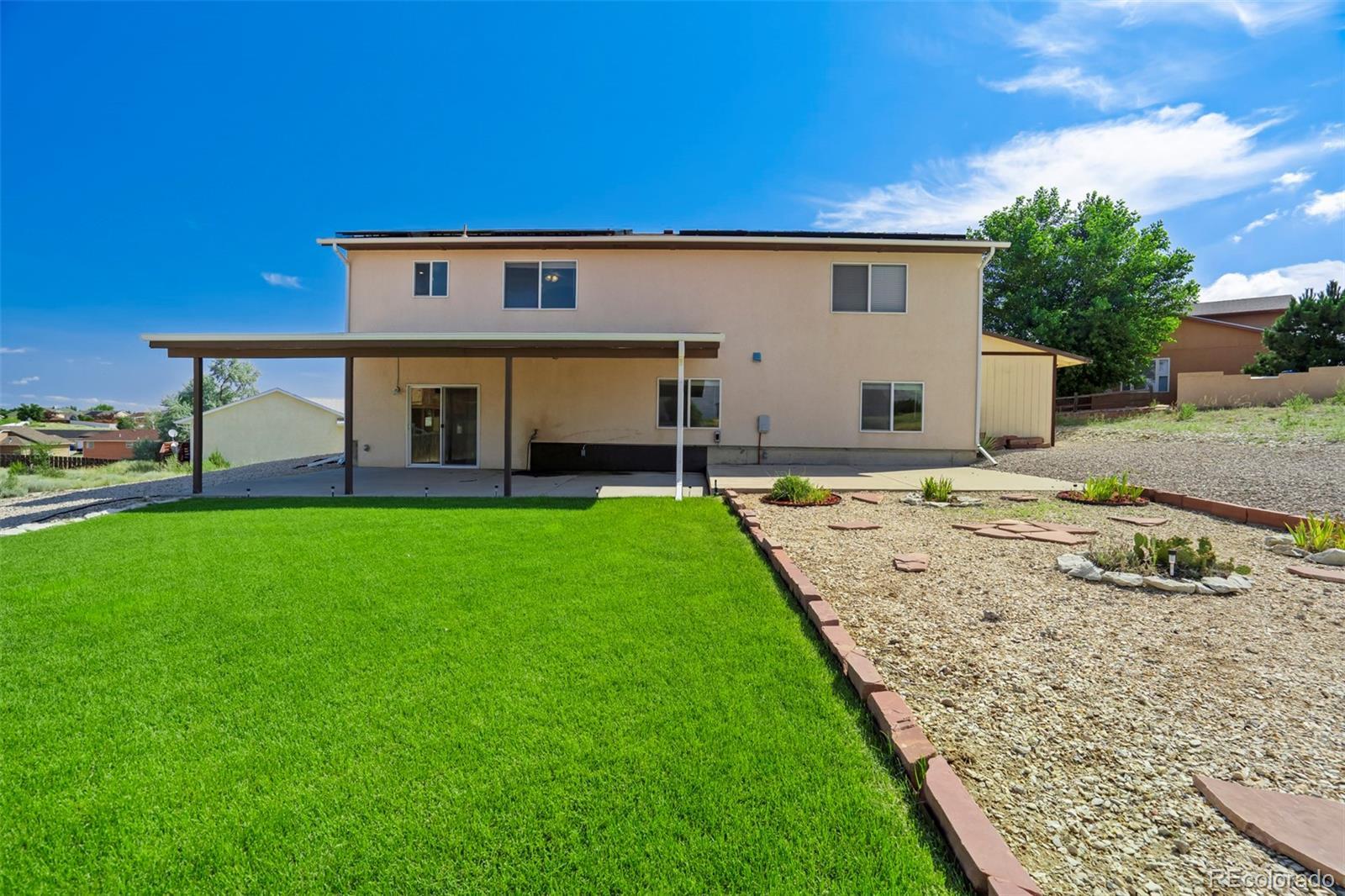 Well-appointed on a serene cul-de-sac in the desirable Acorn & Harmony neighborhood of Pueblo West, this incredible split-level home offers one of the most spacious & open designs you'll find! Vaulted ceilings & dramatic double arches framing the upper-level dining room, make a bold statement while creating a warm, welcoming atmosphere. An impressively scaled living room with soaring ceilings sets the tone, while the open layout flows seamlessly to the kitchen & dining areas above. The kitchen features beautiful bamboo flooring, a breakfast nook with mountain views, a double pantry, abundant cabinet & counter space, & a window above the kitchen sink perfectly positioned to take in the scenic backdrop. The expansive primary suite features a 5-piece bath & large walk-in closet & is tucked away for a private retreat! A half-bath adds guest convenience to this level. The lower-level family/rec room walks out to a covered patio, perfect for entertaining & is adjacent to a hot tub pad ready for relaxation under the stars! Two generously sized bedrooms, a full bathroom, & a dedicated laundry area (washer & dryer included!) complete the home. Situated on a 0.50-acre lot, this home also features a 3-car garage with a service door to the side yard, a storage shed, & an owned solar panel array for added efficiency. All major mechanical systems, including air conditioning, have been updated within the past five years. All this home needs is a new owner...and that should be YOU!