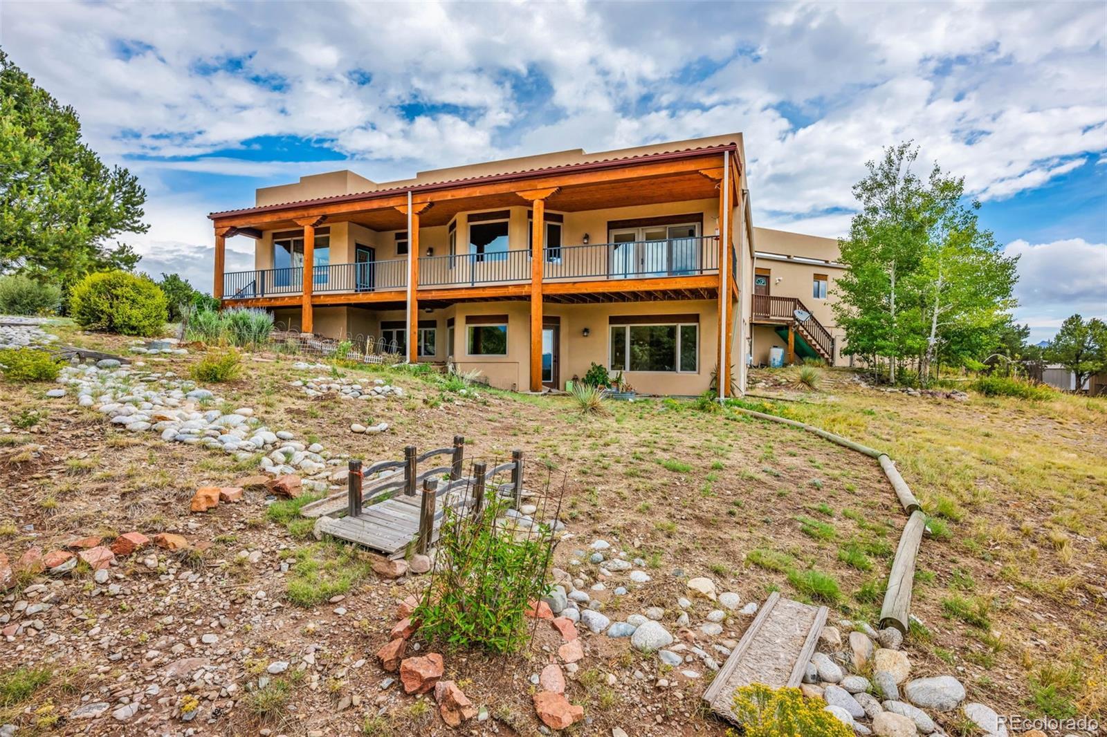 Escape to Eagle Peak Ranch in Cotopaxi, where this 4,000+ sq ft custom ranch home combines energy efficiency with sweeping mountain views on 35 private acres. Step inside the one-foot thick exterior walls to the heart of the home: a beautifully appointed kitchen with cork-tile flooring, expansive countertops, and knotty alder cabinetry framing the bay window views. A large island and walk-in pantry merge space and style. The main floor offers radiant in-floor heating and seamless flow from the mudroom entry off the 3-car garage to a versatile dining area that can double as an office. Centrally, the living room features a Santa Fe style kiva gas fireplace and plentiful picture windows, inviting the Sangre de Cristo Mountains & Collegiate Peaks inside. Open the sliding doors to an expansive deck with awe-inspiring vistas. The main bedroom is a retreat with a spa-like 5-piece marble-tiled bath, soaking tub, and roomy walk-in closet, with another bedroom and full bath nearby. Downstairs, the finished walkout basement provides a family room, additional bedrooms & bathrooms, an office with built-ins, and endless potential for a gym, art studio, or guest suite—with direct outdoor access. Outside, equestrian and homestead amenities abound: a 30x40 machine shop, hay barn, paddock with 2-stall loafing shed, and automatic waterer, plus a large chicken coop, multiple sheds, and garden spots. Ideal for those eager to swap the city hustle for nature's serenity, this property appeals to horse enthusiasts and outdoor lovers with proximity to thousands of BLM acres for camping, hiking and horseback adventures. The Arkansas River—just 15 minutes away—offers world-class fishing and rafting. Nestled in the quiet Eagle Peak Ranch subdivision, it is only 20 minutes from Westcliffe and 40 from Salida’s vibrant arts and culture. With skiing at Monarch Mountain & hot springs at Mt. Princeton close by, every season brings adventure and relaxation. *Photos with furniture are virtually staged.