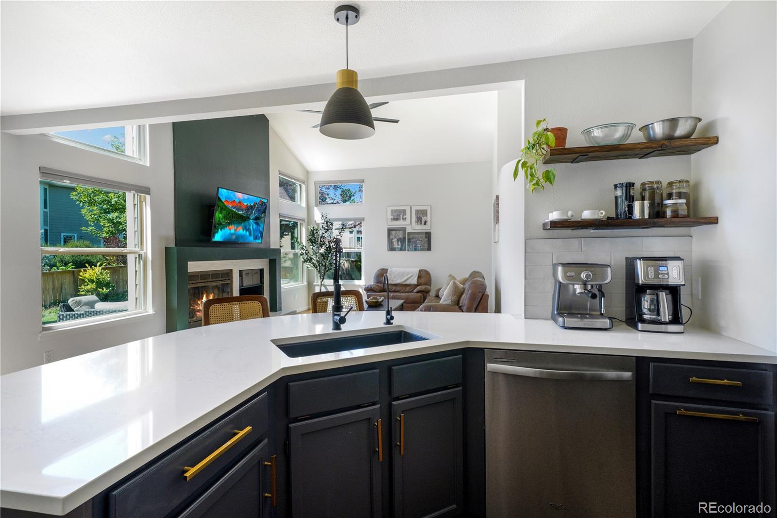 www.1651BeaconHill.com - Beautifully updated home nestled at the top of a cul-de-sac in the heart of Highlands Ranch. Perched on a large, elevated lot, this home offers privacy, charm, and stunning natural light throughout. Wood floors extend throughout the main level including the spacious dining room that overlooks a covered front patio—ideal for entertaining or enjoying time outside. The kitchen is a true standout, featuring new Quartz countertops, stainless steel appliances, a custom coffee bar, updated lighting, bar seating, and a bright breakfast nook. The adjoining living room boasts soaring vaulted ceilings, a cozy gas fireplace, and expansive views of the private backyard oasis. Upstairs, the primary suite is a serene retreat with Pergo flooring, a walk-in closet, and a beautifully renovated 5-piece bath. Two additional bedrooms—one with mountain views—and a full bath complete the second level. The finished lower level includes a large bonus room with a wet bar, a non-conforming bedroom and storage space. Additional updates include fresh exterior paint (2023), new basement ceiling and a new water heater. Residents enjoy access to Highlands Ranch’s top-tier amenities: four recreation centers, fitness facilities, pools, spas, playgrounds, and miles of trails.