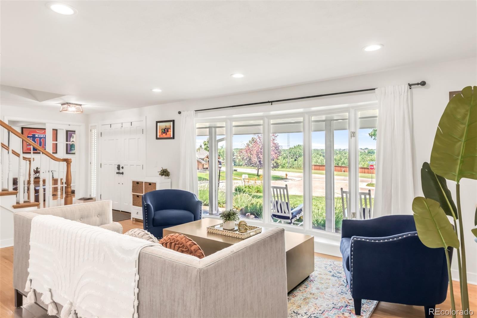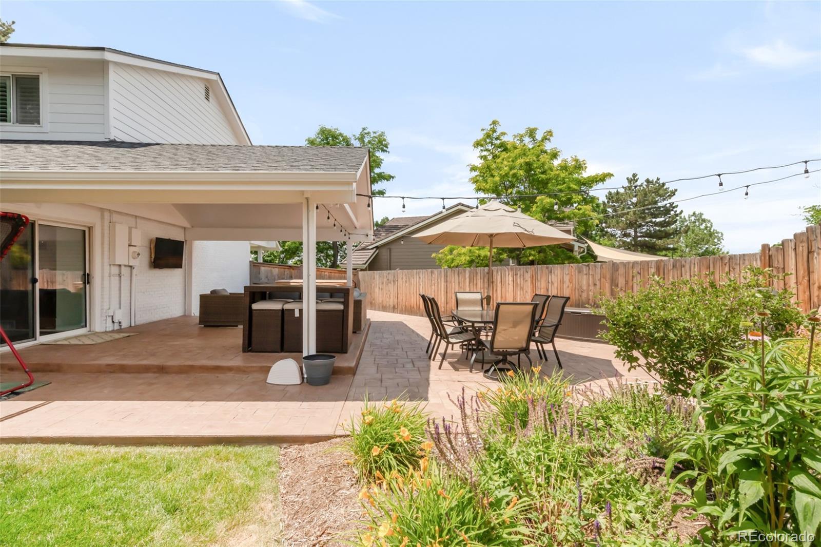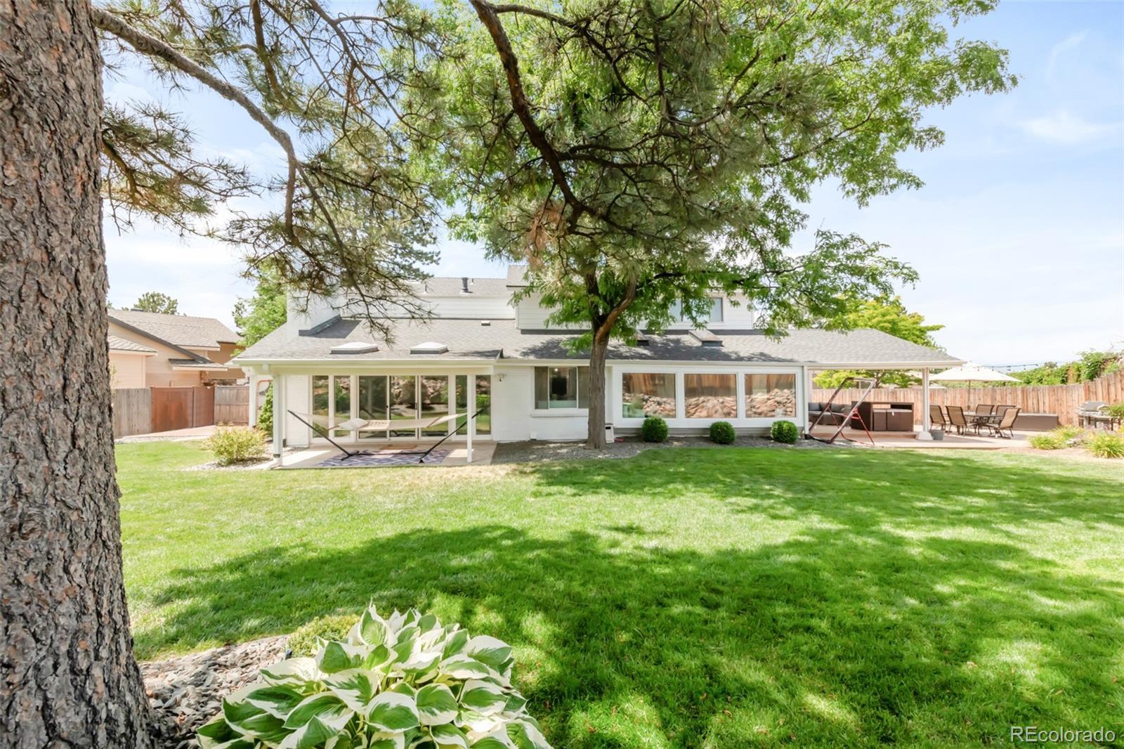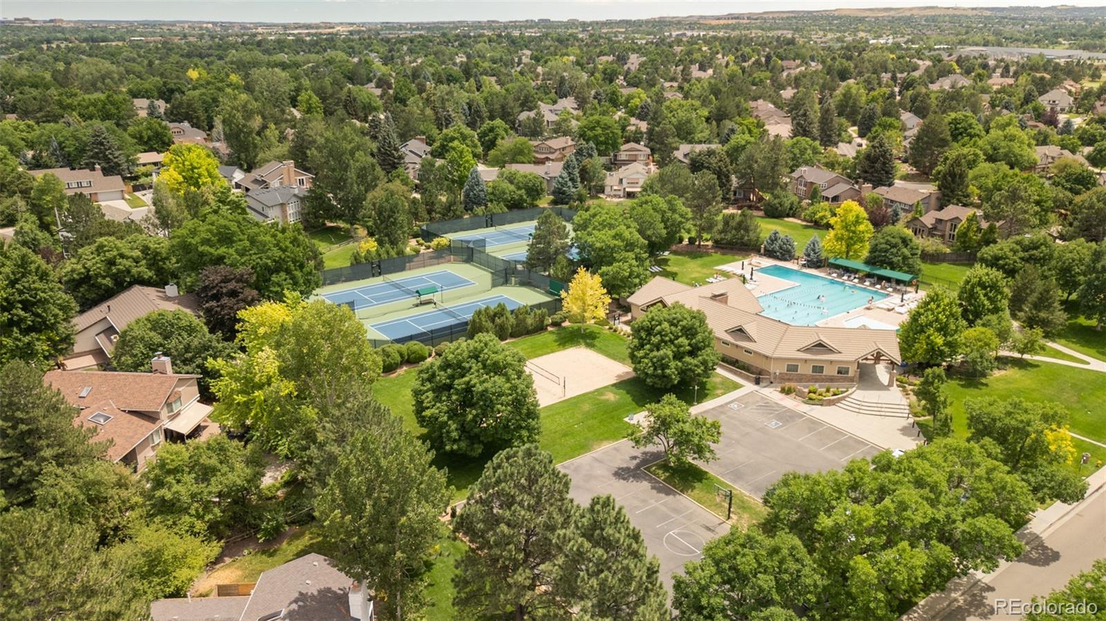 Perfectly poised across from the golf course in Heritage Greens, this exceptional home offers elegance, comfort and high-end amenities in a coveted Centennial community. Set on a private lot backing to serene open space, the newly finished patio and lush backyard provide a peaceful retreat with sweeping mountain views. A covered front porch perfect for watching our gorgeous Colorado sunsets welcomes residents into a bright and airy interior featuring a formal living room with dramatic floor-to-ceiling windows, a stylish dining room and a large kitchen with all-white cabinetry and a sunny breakfast nook. Beyond the breakfast nook is a light-filled flex space with endless possibilities, perfect for a quiet conversation space, additional dining space, creative art space, or game room. The vaulted great room impresses with a cozy fireplace, wet bar and seamless indoor-outdoor flow to the backyard. French doors open to a home office with built-ins, while the upper-level primary suite boasts vaulted ceilings and a spa-like bath with a soaking tub and a walk-in shower. With a finished basement rec room, freshly painted exterior and access to a community pool, tennis courts, sand volleyball court and parks, this home defines elevated living. Heritage Greens is known for its unparalleled amenities, activities and community events. The Gator swim team, the Gator triathlon and Gator Gallop 5k for your active families // Oktoberfest, Christmas with Santa and horse drawn sleigh rides, Easter egg hunts with the Easter bunny himself, tennis socials, cornhole tournaments, senior wine socials and countless other events are always on rotation in the neighborhood. It truly is one of a kind.