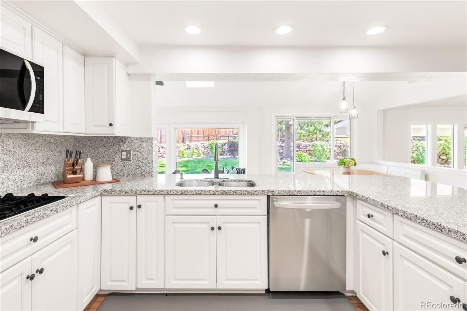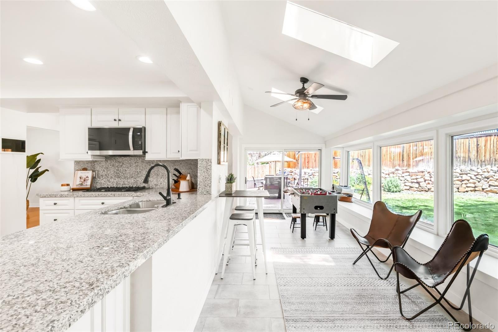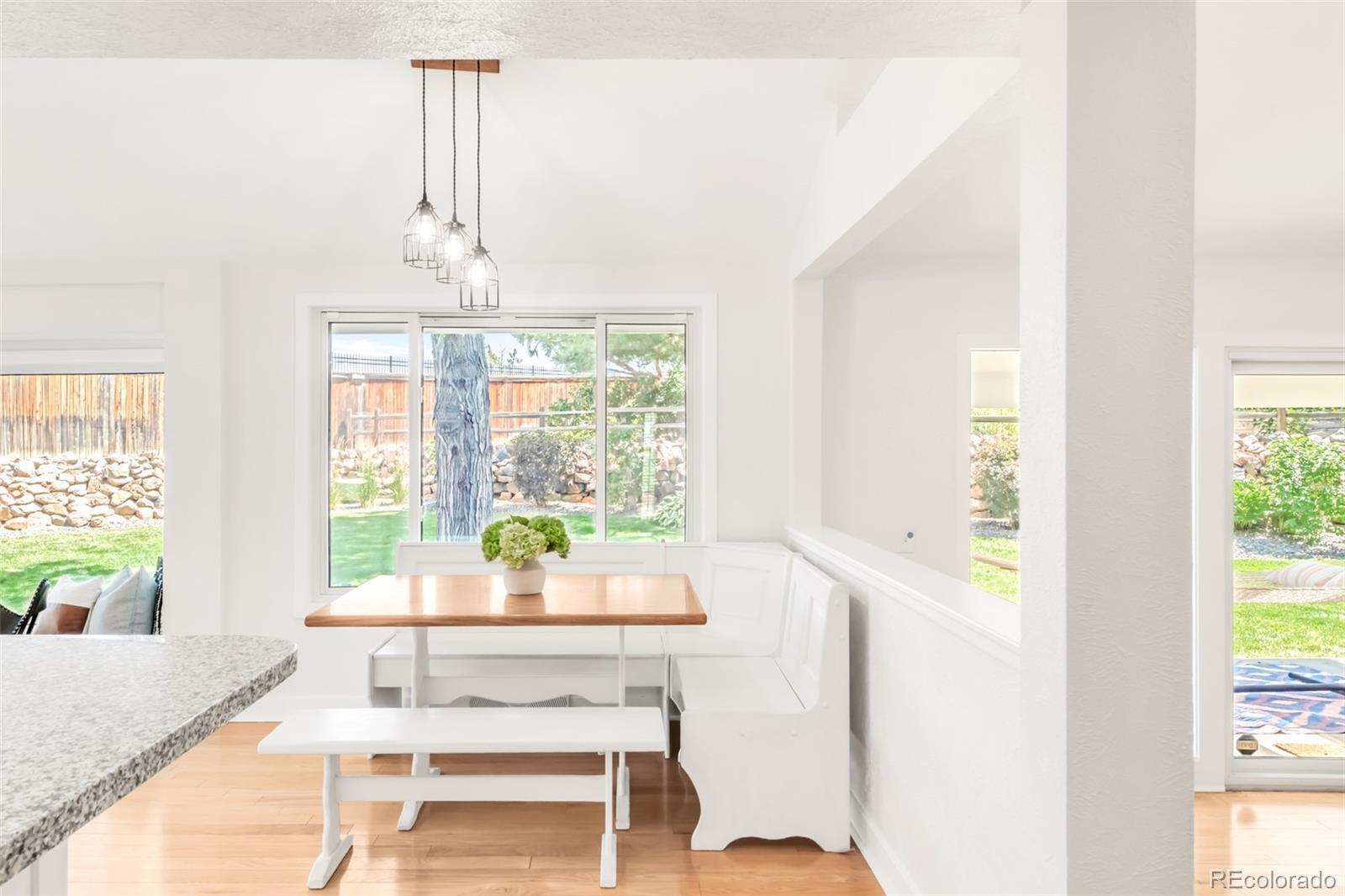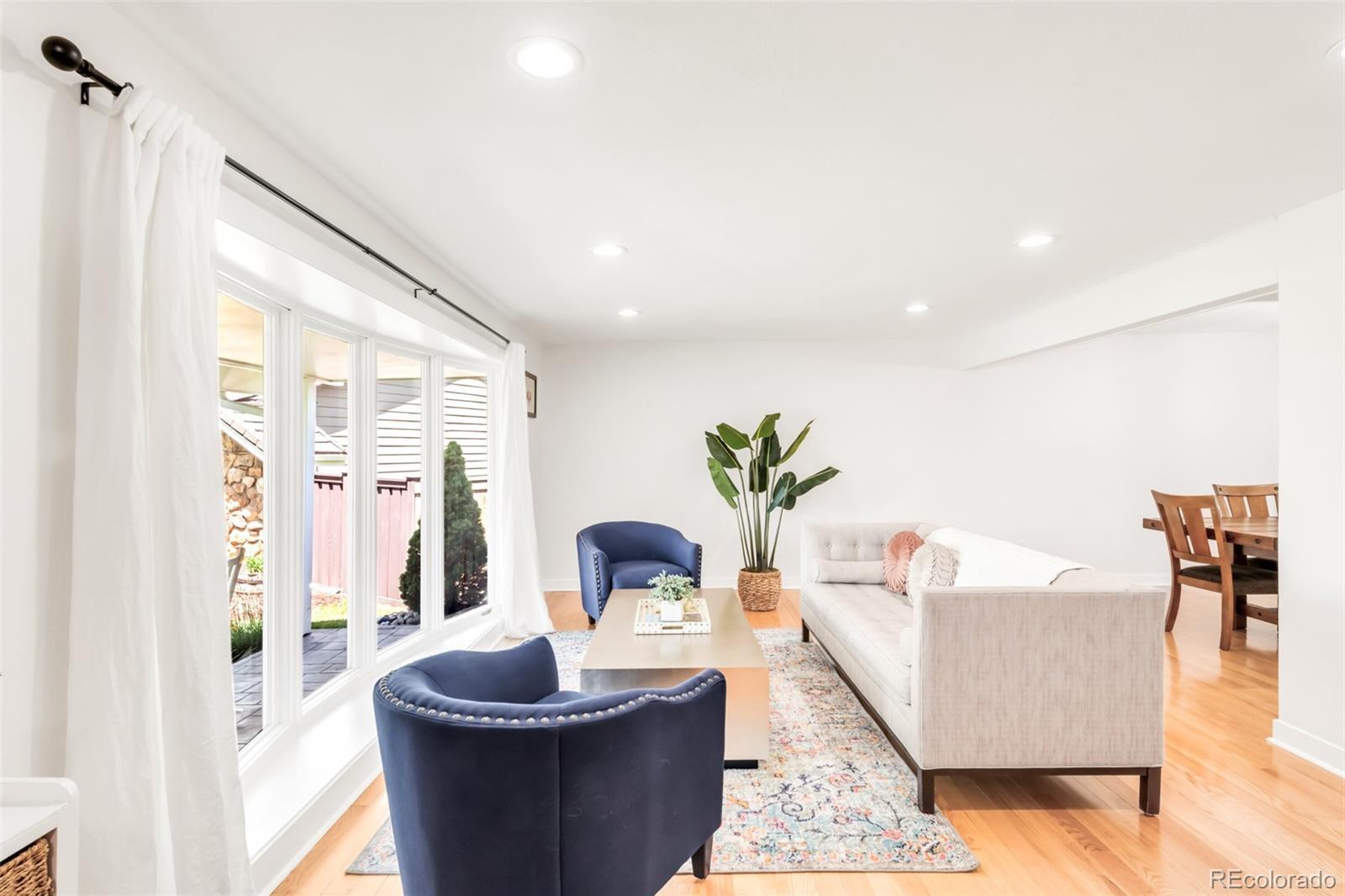 Perfectly poised across from the golf course in Heritage Greens, this exceptional home offers elegance, comfort and high-end amenities in a coveted Centennial community. Set on a private lot backing to serene open space, the newly finished patio and lush backyard provide a peaceful retreat with sweeping mountain views. A covered front porch perfect for watching our gorgeous Colorado sunsets welcomes residents into a bright and airy interior featuring a formal living room with dramatic floor-to-ceiling windows, a stylish dining room and a large kitchen with all-white cabinetry and a sunny breakfast nook. Beyond the breakfast nook is a light-filled flex space with endless possibilities, perfect for a quiet conversation space, additional dining space, creative art space, or game room. The vaulted great room impresses with a cozy fireplace, wet bar and seamless indoor-outdoor flow to the backyard. French doors open to a home office with built-ins, while the upper-level primary suite boasts vaulted ceilings and a spa-like bath with a soaking tub and a walk-in shower. With a finished basement rec room, freshly painted exterior and access to a community pool, tennis courts, sand volleyball court and parks, this home defines elevated living. Heritage Greens is known for its unparalleled amenities, activities and community events. The Gator swim team, the Gator triathlon and Gator Gallop 5k for your active families // Oktoberfest, Christmas with Santa and horse drawn sleigh rides, Easter egg hunts with the Easter bunny himself, tennis socials, cornhole tournaments, senior wine socials and countless other events are always on rotation in the neighborhood. It truly is one of a kind.