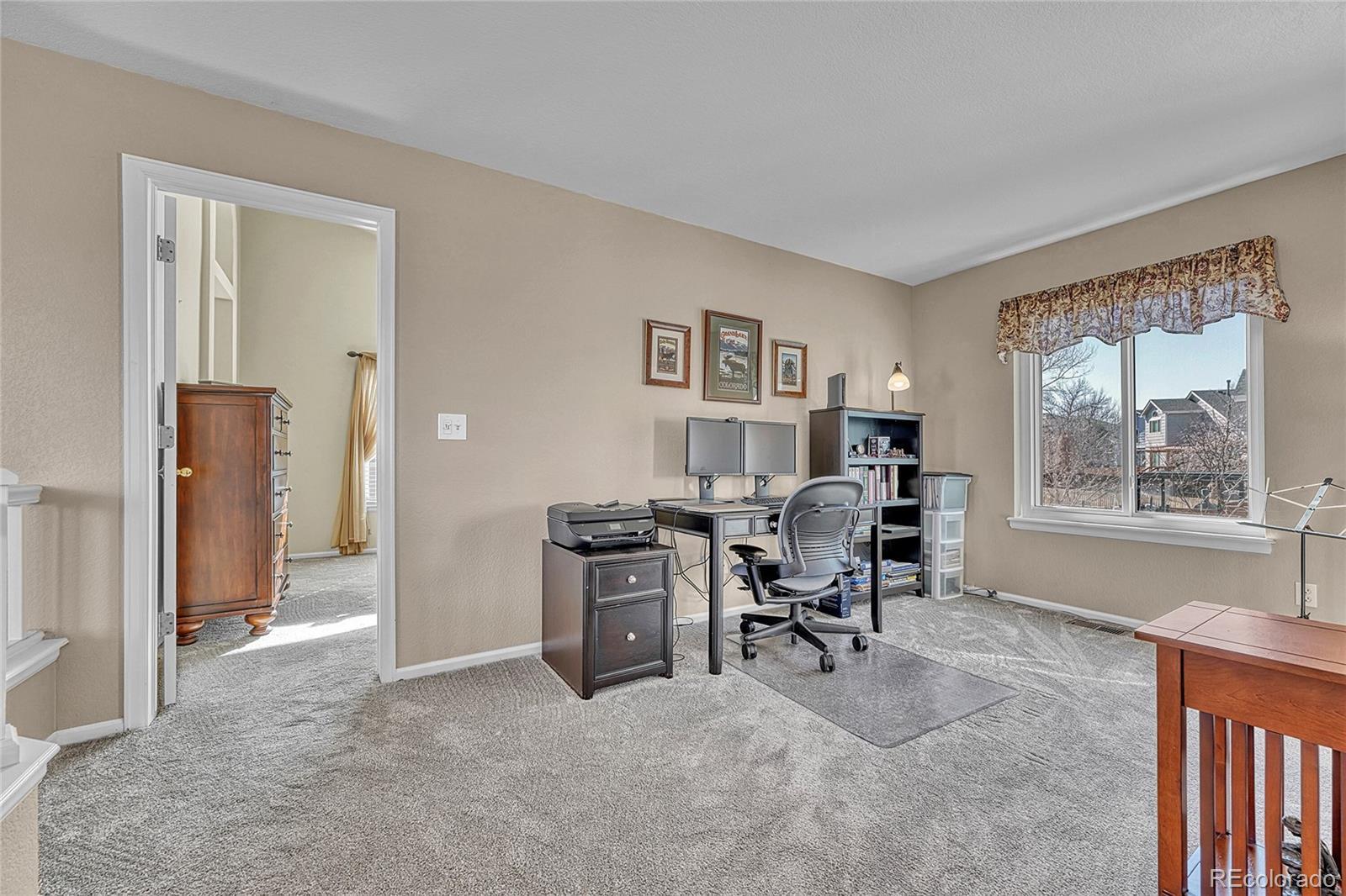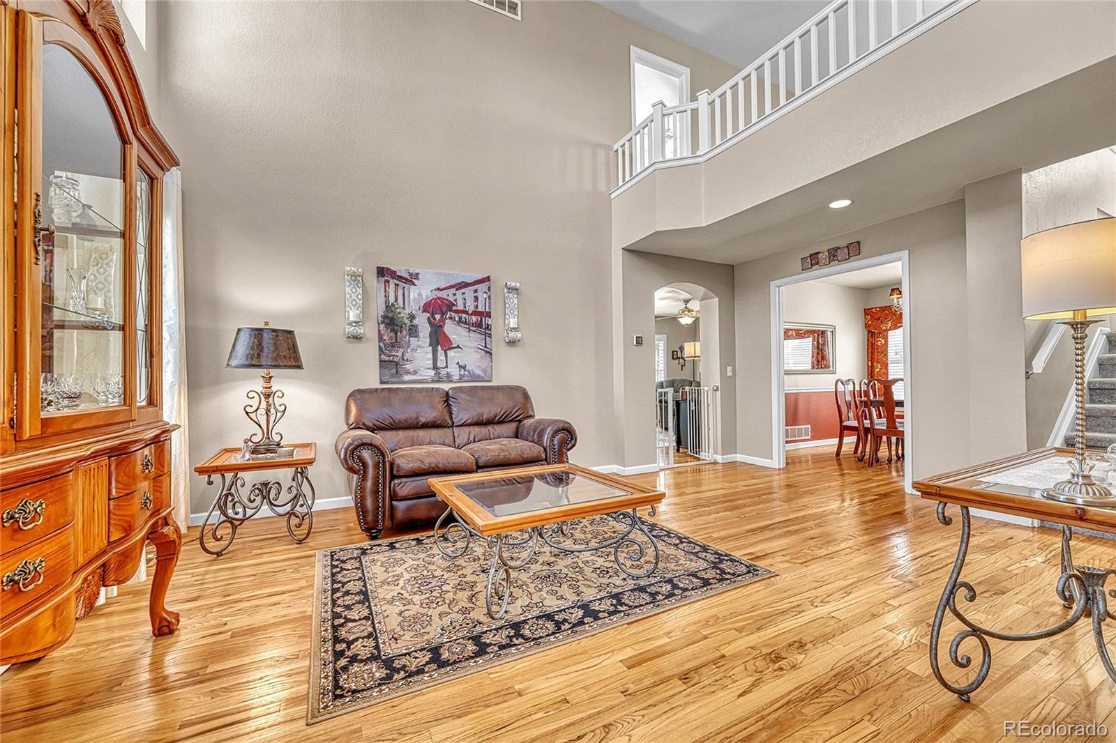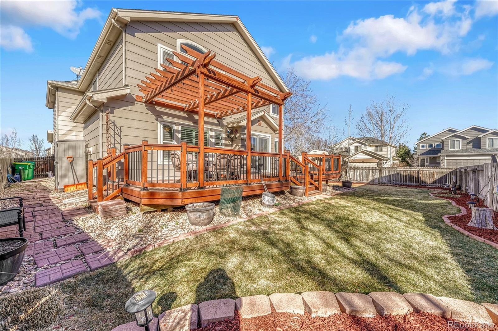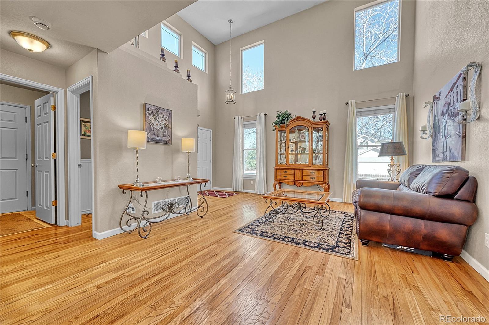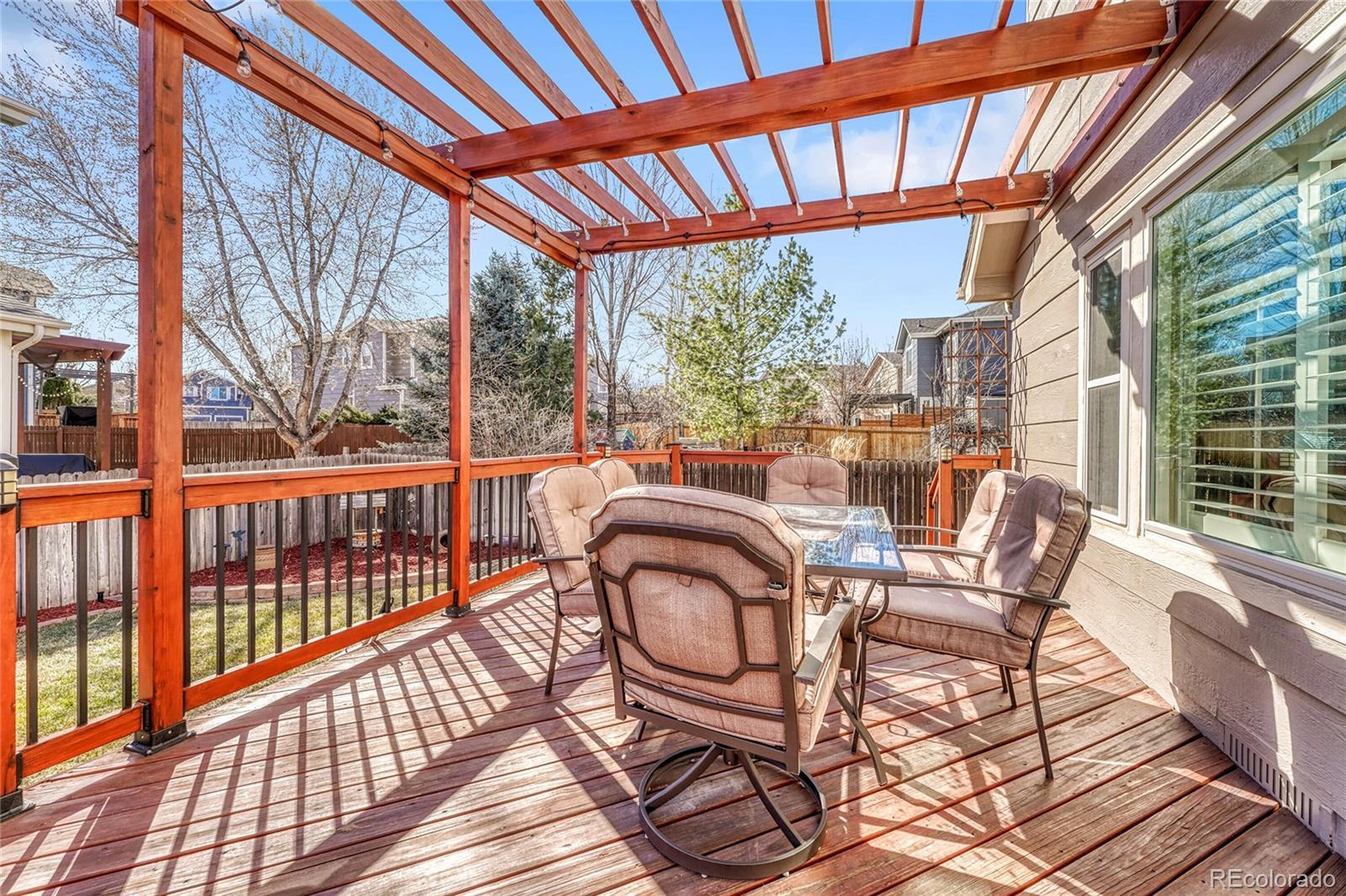 Perfectly positioned in the highly acclaimed Bradbury Ranch community, this exceptional residence offers the ideal blend of refined design, generous living spaces, and unmatched convenience, just moments from downtown Parker. From the moment you enter, a dramatic two-story living room with soaring ceilings and expansive windows creates a striking first impression, filling the home with natural light and an unmistakable sense of openness. Designed for both everyday comfort and effortless entertaining, the thoughtfully crafted floor plan features four bedrooms and four bathrooms, along with a spacious upper-level loft easily converted into a fifth bedroom, private office, or bonus retreat. At the heart of the home, the upgraded kitchen showcases stainless steel appliances, abundant cabinetry, and a custom eat-around island that naturally brings people together. The seamless connection between kitchen and living spaces creates an inviting atmosphere ideal for gatherings both large and small. The finished basement provides exceptional flexibility with a dedicated family room, private bedroom, and bathroom - perfect for guests, extended stays, or multigenerational living. Situated on an oversized corner lot, the meticulously landscaped backyard transforms outdoor living into an experience, featuring an expansive deck, pergola, and fire table designed for relaxing Colorado evenings and memorable entertaining. Residents of Bradbury Ranch enjoy outstanding amenities including a community pool, parks, trails, and highly regarded schools, all while being just two minutes from Parker’s charming Main Street, award-winning local dining, breweries, boutiques, and cultural events at the renowned Parker Arts, Culture & Events Center. This is more than a home—it’s a lifestyle opportunity in one of Parker’s most sought-after neighborhoods. Hurry! A home like this rarely becomes available and will not last!