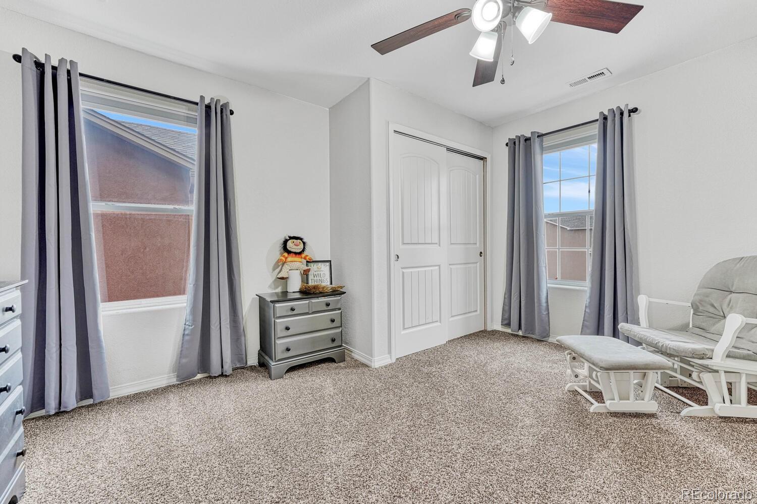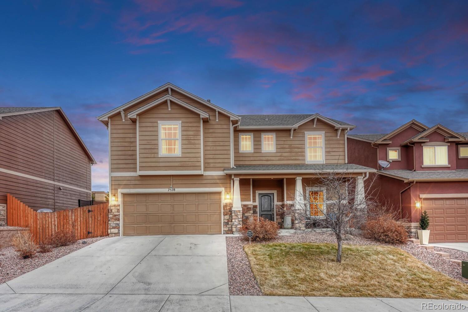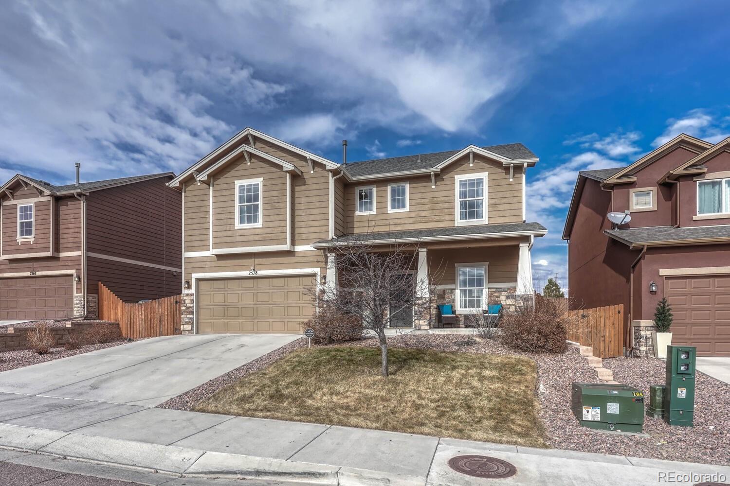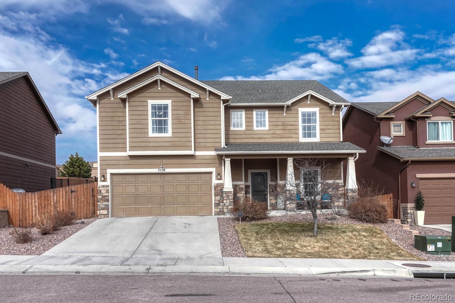 Welcome to your dream home in the heart of Colorado Springs! Nestled within one of the city's most sought-after east-side neighborhoods, this stunning 4-bedroom, 3-bathroom home offers the perfect blend of comfort, style, and functionality. Relax on the covered front porch as you sip your morning coffee, basking in the warmth of the south-facing driveway, ensuring ample sunlight throughout the day and adding warmth and vitality to the exterior of the home. Step inside, and you're immediately greeted by elegance and versatility. French doors lead you into a spacious room, perfect for crafting, working from home, or simply indulging in your favorite hobbies. You'll also find a powder room and not one but TWO closets catering to all of your main-level storage needs. The dynamic living room offers endless possibilities for furniture arrangement, making it a breeze to create your ideal space. Flow seamlessly into the kitchen boasting granite countertops, stainless steel appliances, and a walk-in pantry. Enjoy meals in the sunlit dining area bathed in natural light, and easily access your MASSIVE tandem garage or step out onto the covered patio, ideal for year-round barbecues and outdoor entertaining. Venture upstairs, where an expansive loft beckons, offering countless opportunities for relaxation or recreation. The spacious primary bedroom is a sanctuary of natural light, featuring three large windows, and then indulge in the ensuite 5-piece primary bathroom, boasting a dual vanity, soaking tub, standing shower, and generous walk-in closet for all your wardrobe essentials. Convenience abounds with an upstairs laundry room, complete with extra space for hanging clothes or storage. While upstairs, be sure to take a peek at the 3 additional spacious bedrooms, 2 with walk-in closets. Conveniently located with easy access to Marksheffel and Powers Blvd, Peterson AFB, parks, shopping, and more, this home offers the quintessential Colorado lifestyle you've been searching for!