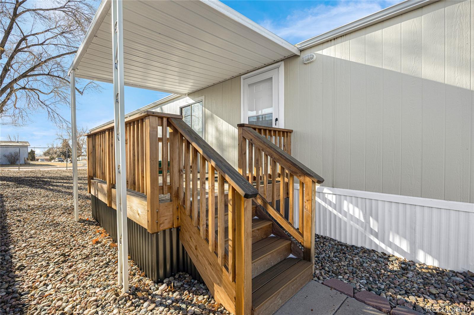 Welcome to this well kept manufactured home conveniently located in the La Cresta Mobile Home Park . Single level living, offering a primary bedroom with an en suite bath, plus 2 additional bedrooms that share a full bath between them. The bright kitchen features, stainless steel appliances, including a gas stove. The furnace was recently cleaned and serviced, for your convenience the two portable AC units are winterized and ready for use when the warmer weather returns. Enjoy entertaining on an 8’ x 10’ covered front porch with composite decking and Redwood railings. Additionally there is easy access from the covered carport to the back porch that is also finished in composite decking. Other highlights include a new water heater, upgraded steel doors on the front and the back of the home. The roof was double sealed last year. There is a brand new 8‘ x 12‘ storage shed. This home is move-in ready and easy to love.