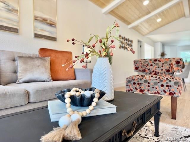 This 1953 mid-century modern inspired home boasts exactly what you are looking for, vaulted tongue and grove ceilings, wide plank hardwood floors, large picture glass windows or doors open to outside, functional floor plan combined with a great room concept that is light, bright, and lofty. Clean aesthetics flow throughout the entire house. Kitchen is spacious with plenty of cabinet and countertop, slab quartz, large peninsula for eat in options. Off the kitchen sits the airy bonus sunroom with massive skylights and multiple options. Could be used as a sitting room, a formal dining room area, a study/office or even a workout space. However you decide, you will absolutely love how the sunroom connects to the backyard patio with a large sliding glass door that allows indoor/outdoor living. The primary is nice sized with ensuite bathroom with large walk-in shower. Outside you’ll enjoy the xeriscape front yard and landscaping lights and you’ll love the backyard with trees and shade and privacy plus fantastic no maintenance green turf with zero additional watering costs or wastes. Space for a garden too. One of the nicest blocks in sought after Virginia Village and adjacent to the iconic Krisana neighborhood. In total, 3 beds / 2 bath with more square feet to offer than the traditional mid-mod in this area. All finishes are top notch and tastefully designed. Newer roof and A/C. Central Denver location with easy access to Downtown, Cherry Creek, I-25 and I-70 if you want to escape to the mountains. Numerous parks, trails in the community and all the shopping and dining options you could ever want. This home bursts with charm, you are going to love it!