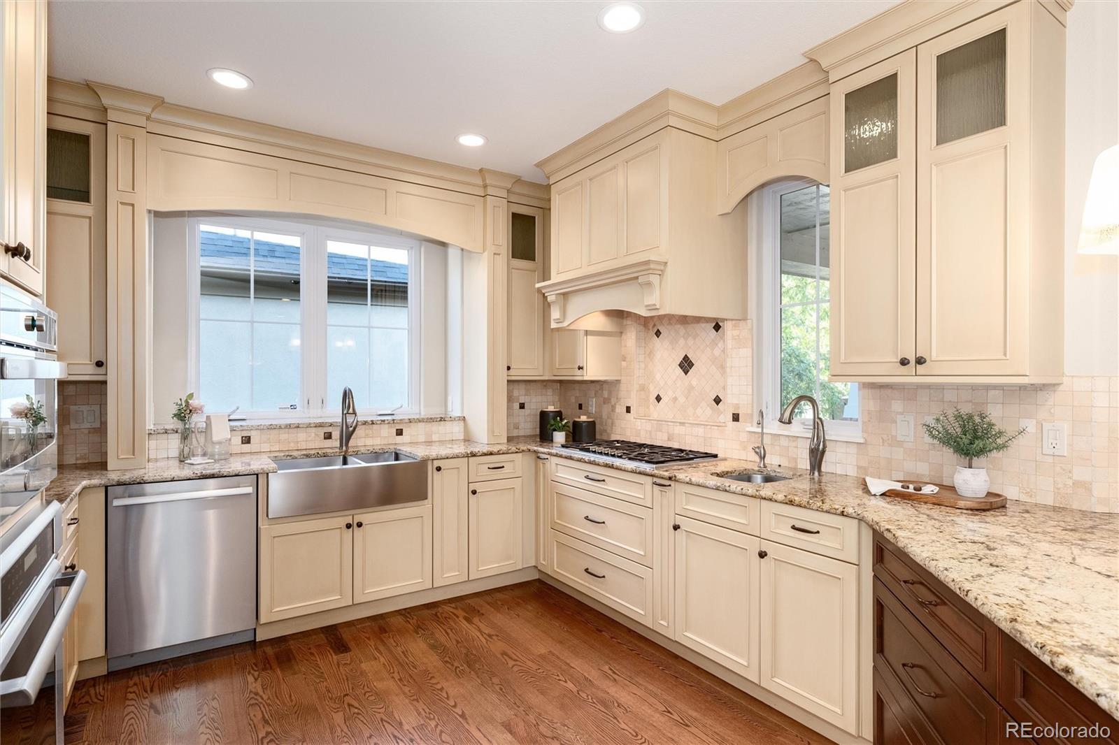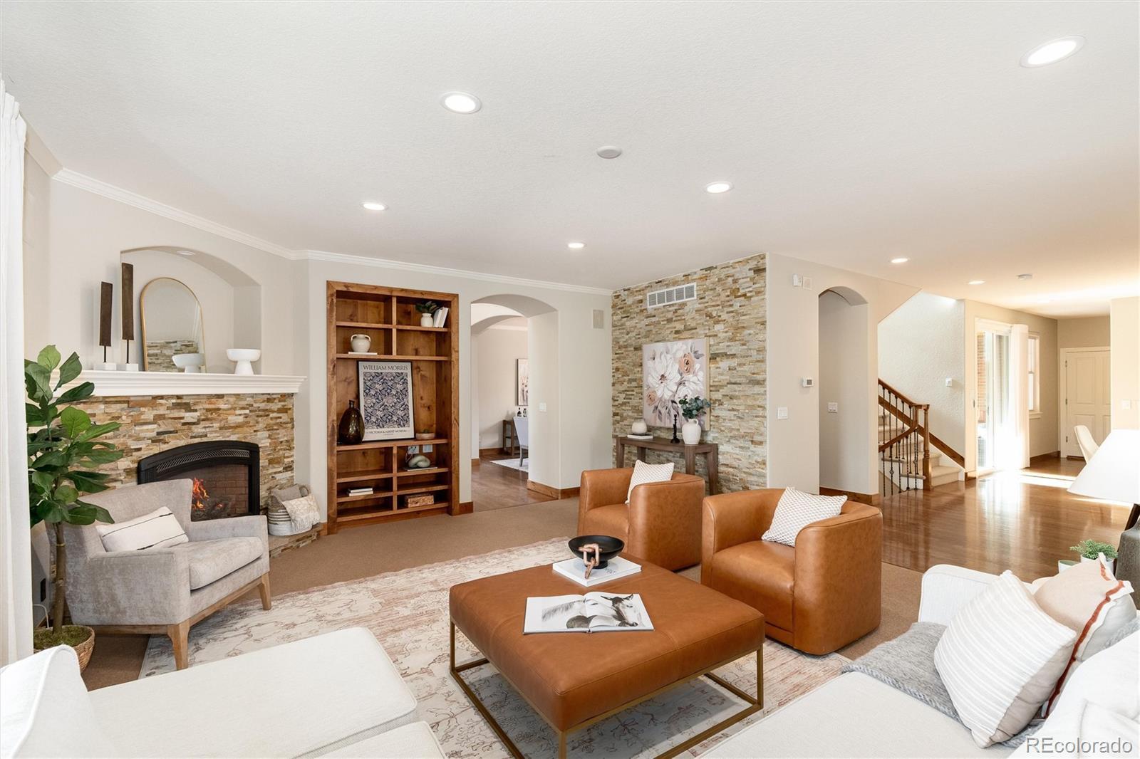 Welcome to this stunning 5-bedroom, 5-bath Craftsman-inspired home in the heart of Lowry, ideally positioned on an expansive 8,988 sq ft lot directly across from Crescent Park! With 5,485 sq ft of luxurious living space & a highly functional floor plan, this beautifully maintained residence is designed for both comfortable everyday living & effortless entertaining. A large wraparound front porch sets the tone for the timeless charm & modern comforts you’ll find inside. Step through the gracious foyer w/ soaring two-story ceilings into the inviting living room, where oversized glass doors open to the porch & a stone-surround fireplace adds warmth & character. The living room flows seamlessly into the gourmet kitchen, appointed w/ Thermador stainless appliances, a Liebherr refrigerator, Euro-style cabinetry, granite counters, prep sink w/ reverse osmosis faucet, & a large walk-in pantry. A cheerful breakfast nook opens to the backyard patio, while the butler’s pantry w/ wet bar & wine cooler connects to the elegant formal dining room—perfect for hosting gatherings large or small. Additional main level highlights include a spacious study, mudroom w/ custom built-ins, a laundry room, and convenient access to the oversized 3-car garage. Upstairs, the serene primary suite overlooks Crescent Park and offers a sitting area with fireplace, spa-like bath, and a generous walk-in closet. A sun-filled loft and two spacious bedrooms—each with its own ensuite bath—complete the upper level. The finished basement impresses with tall ceilings, a large family room, two additional bedrooms, a full bath, and a versatile bonus room. Step outside to your private backyard oasis, featuring mature perennial gardens, fruit trees, & a generous patio for year-round enjoyment. Perfectly located near Lowry Town Center, Boulevard One, top-rated public and private schools, Cherry Creek, Rose Hospital, and Anschutz Medical Campus—this home offers the best of central Denver living. WELCOME HOME!