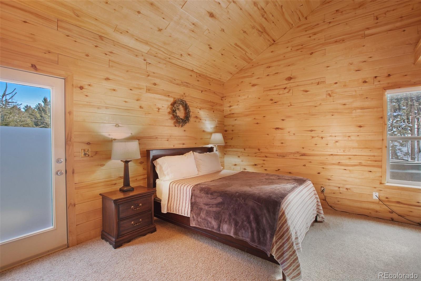 A gem in the woods, located on 2 lots, affording for a future garage to be built! Quaint cedar sided ranch style home, currently used as a short term rental. Fantastic covered front porch with a stone patio, fire-pit and barbecue area! Rustic designed cabin with vaulted knotty pine tongue and groove ceilings and walls, with a cozy freestanding gas stove nestled in the corner! Great room is situated with a dining area, and kitchen w/ counter-bar, overlooking the living space. A comfortable bedroom is attached, again with vaulted ceilings adorned with knotty pine, while a full bathroom and laundry area are adjacent. A storage shed is located just behind the house. This is a true getaway honeymoon suite! Private setting nestled in the trees, and ready for your move-in! Come take a peek!