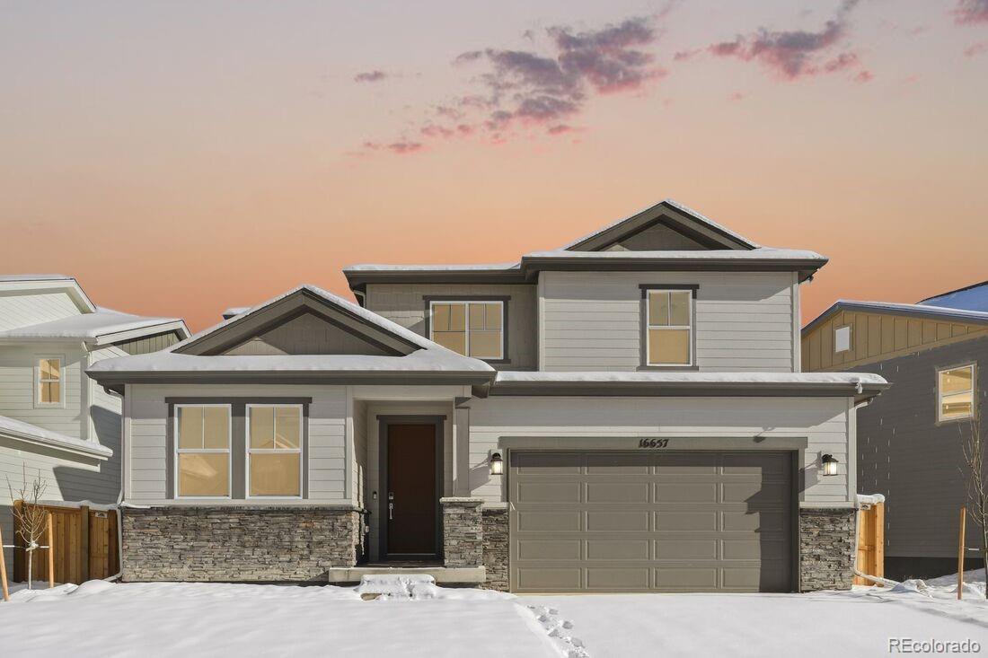 What's Special: Walkout Basement | Backs to Park | Fireplace. New Construction - Ready Now! Built by America's Most Trusted Homebuilder. Welcome to the Sedalia at 16657 W 92nd Place in Trailstone. This inviting two-story home offers a private flex room for work or play and an expansive great room with a cozy fireplace that fills the space with natural light. The flow continues into the dining room and kitchen, complete with an eat-in island, and opens to a covered deck perfect for enjoying Colorado’s sunshine. Upstairs, you’ll find two comfortable bedrooms and a full bath, a spacious loft, and a serene primary suite with a four-piece bath and large walk-in closet. The laundry room is conveniently located on this level, and the unfinished basement provides extra storage or room for a home gym. Trailstone is a vibrant community on the edge of the Rocky Mountains with incredible views of Downtown Denver, Standley Lake, and planned amenities like an outdoor pool and pickleball courts, just 15 miles from Boulder and steps from scenic trails. Additional highlights include: covered deck, unfinished walkout basement with rough-in plumbing for future use, fireplace at great room, quartz countertops, open railing at stairs.