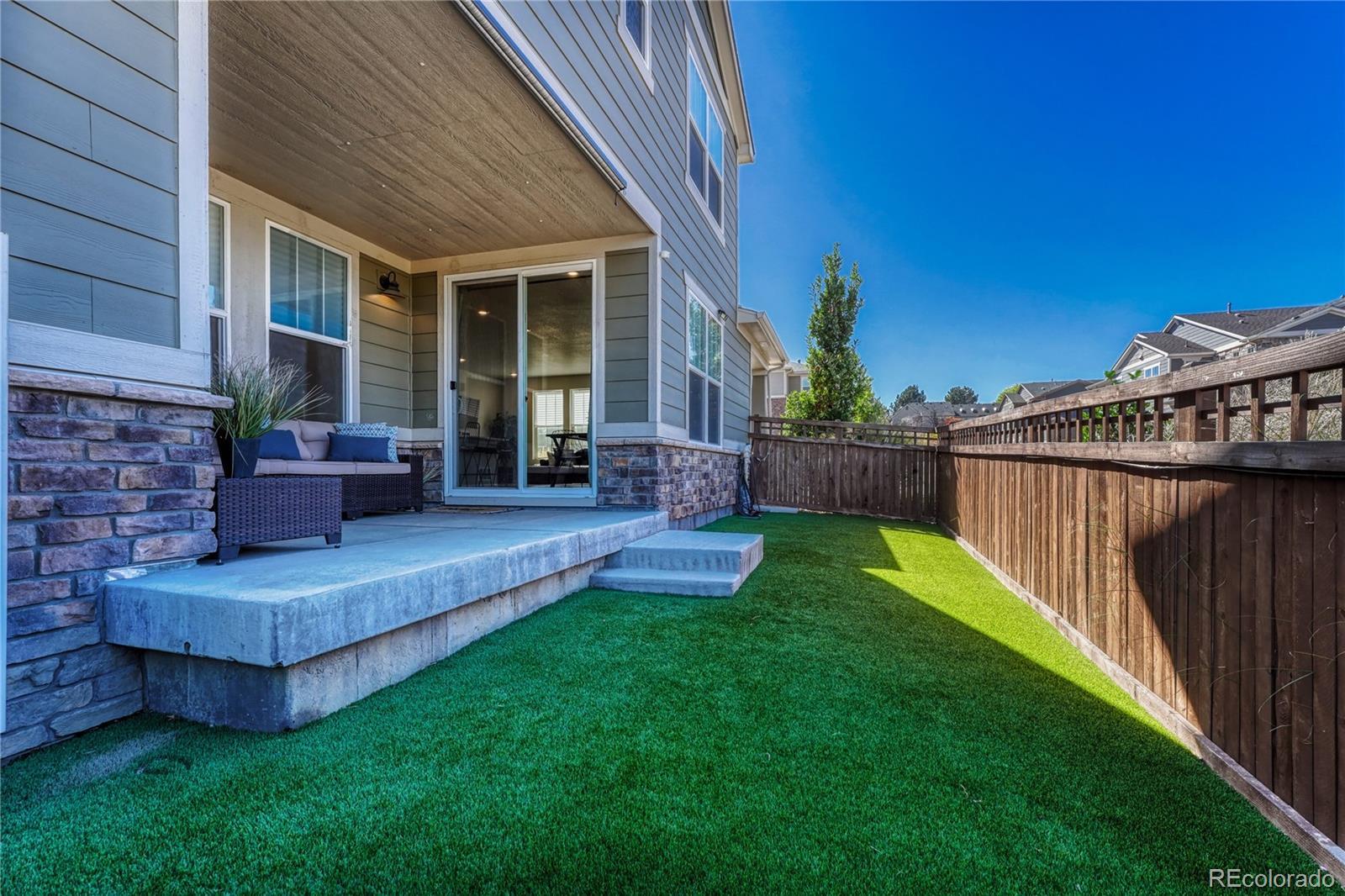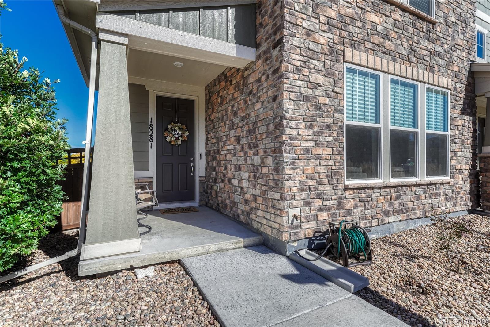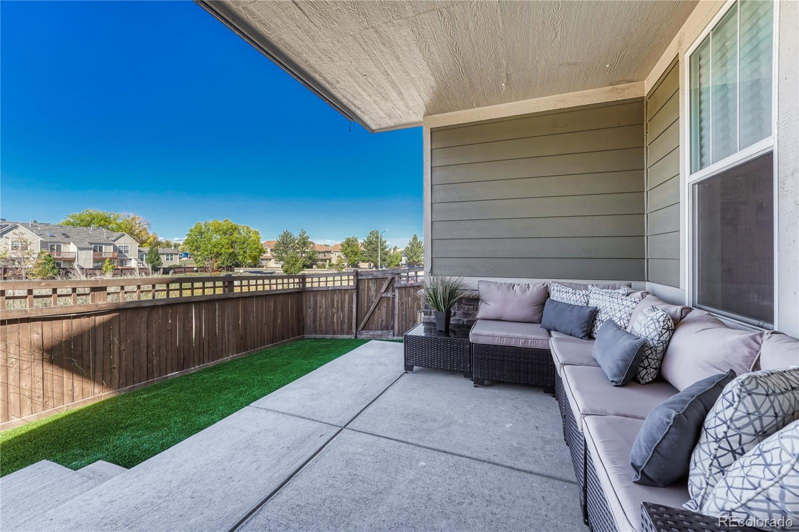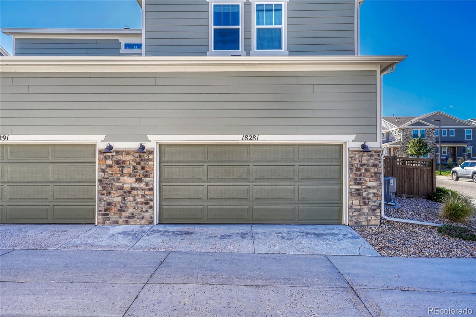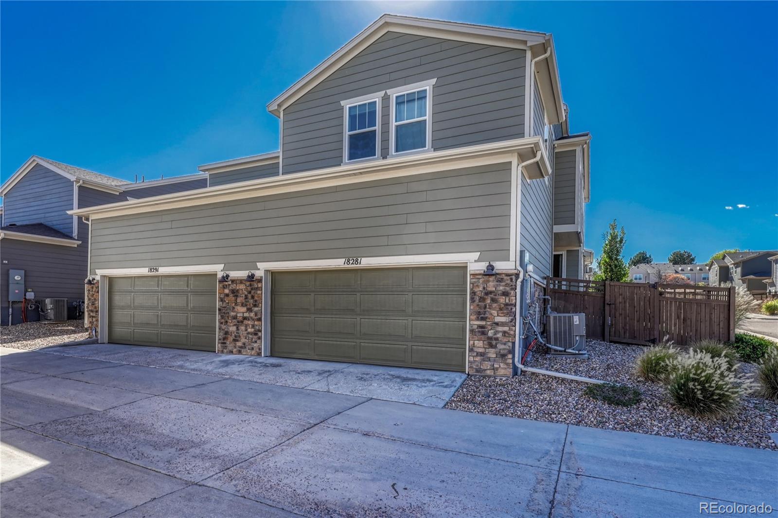 Nestled on a premium end-unit corner lot, this nearly new 2021 energy efficient paired home offers an ideal location, abundant natural light, and low-maintenance living. Tall ceilings, big windows, and an open-concept main level create a bright and welcoming atmosphere from the moment you step inside. Enjoy the benefits of the energy efficient building components and the cost saving feature of seller owned solar panels. WOW! A huge saving going forward! The spacious living room flows to a dedicated dining area and a beautifully upgraded kitchen featuring stainless steel appliances including a gas range, plus a large center island with bar seating for casual meals and gathering. Luxury vinyl plank flooring runs throughout the main level for a modern, cohesive look. Step outside from the dining room to enjoy a covered side patio and an easy-care turf yard, providing the perfect spot to relax or entertain without the upkeep. A convenient half bath, mud room off the garage, and an attached oversized garage add everyday functionality. Upstairs you’ll find a generous primary suite with a large walk-in closet and an adjoining bath offering plenty of space to get ready in comfort. A versatile loft provides room for an office, play area, or home fitness. Two additional bedrooms, full bathroom plus the upstairs laundry complete the upper level. With its corner placement for privacy, abundant sunlight, thoughtful layout, energy efficiency and move-in-ready finishes, this home delivers the perfect blend of style, convenience, and location. Right next to Buckley Space Force Base. Steps away from dining. Easy and convenient access to DIA. Explore more through the virtual tour: https://18281ekansasplace.com/.