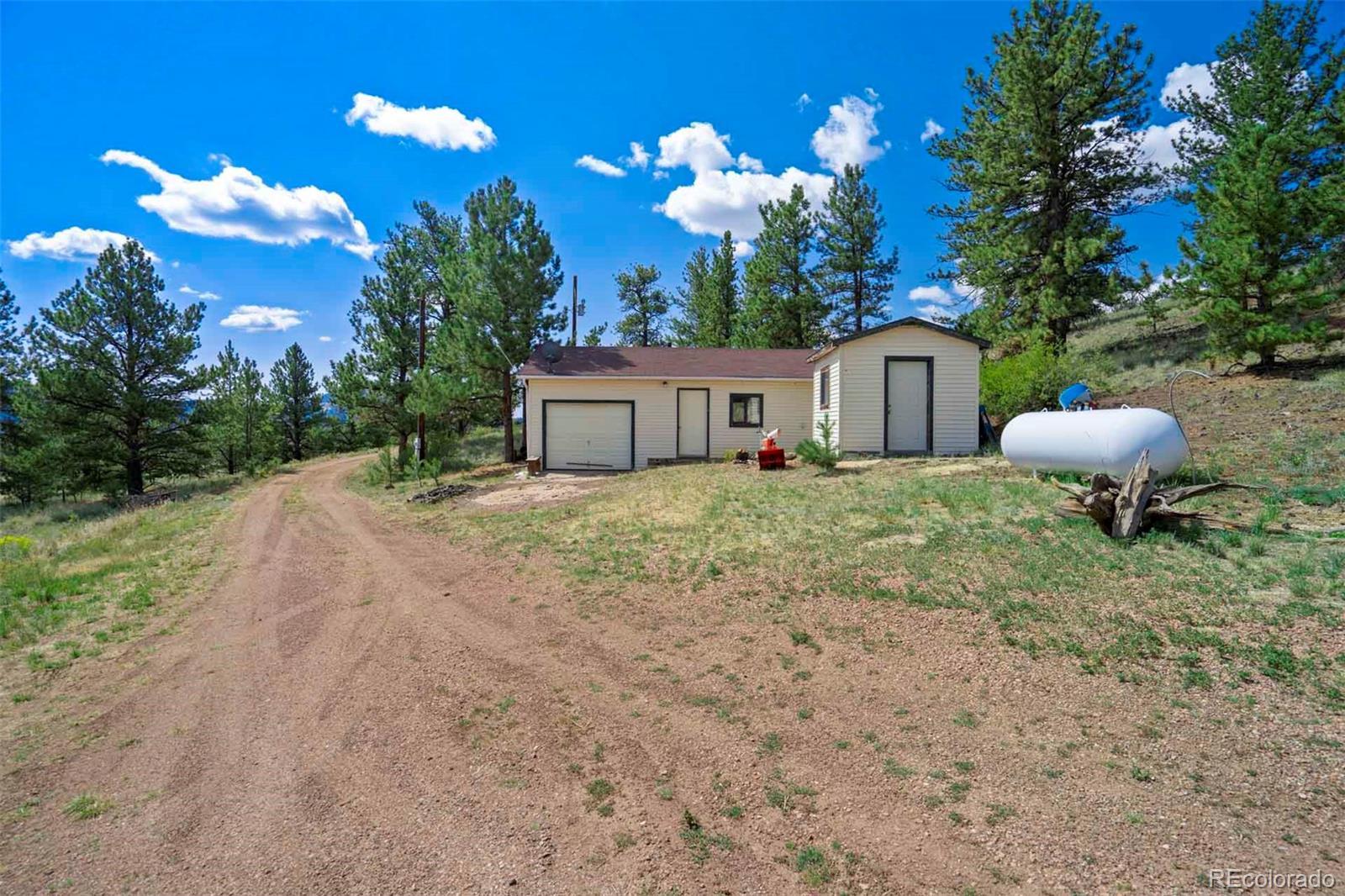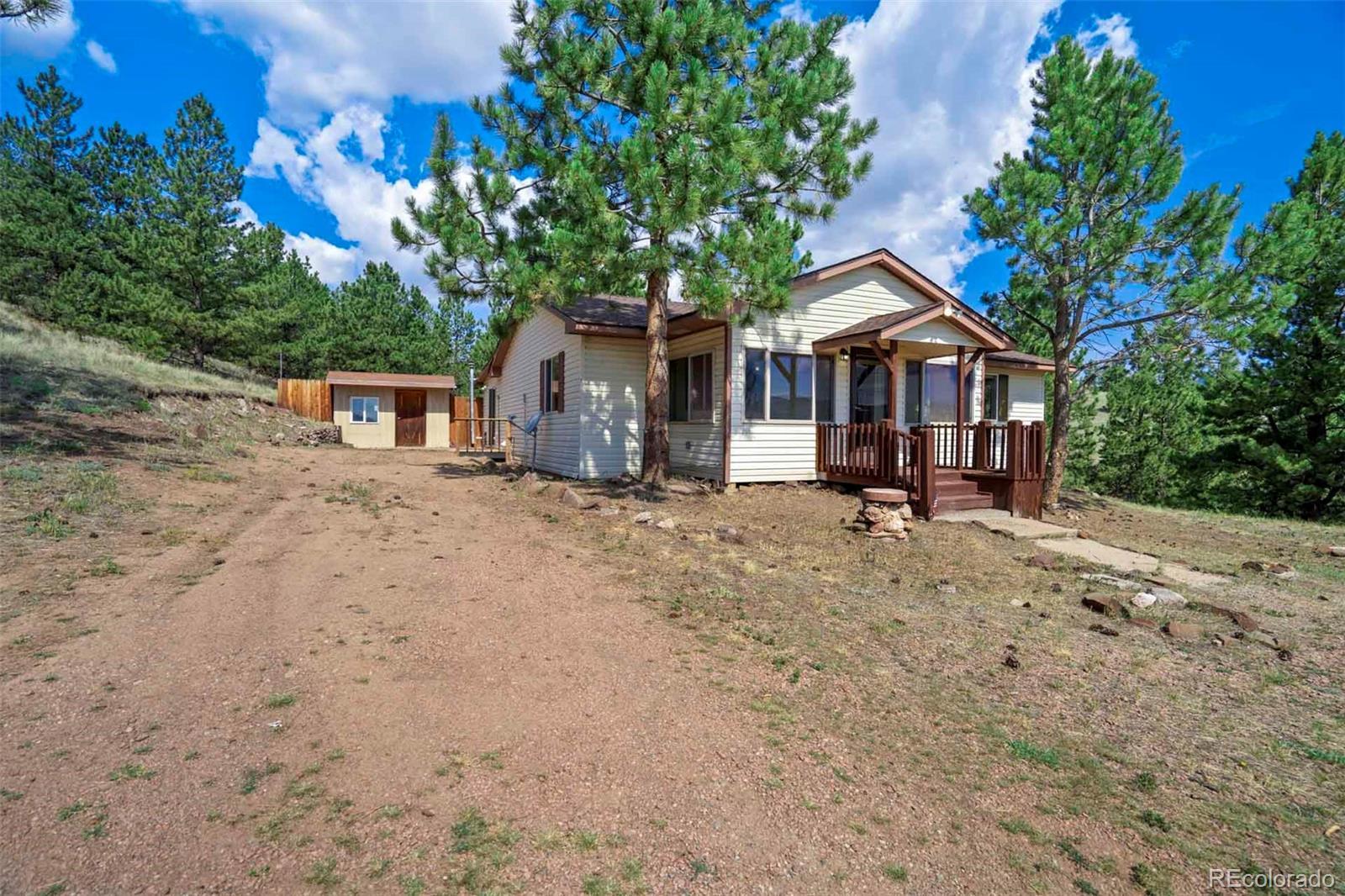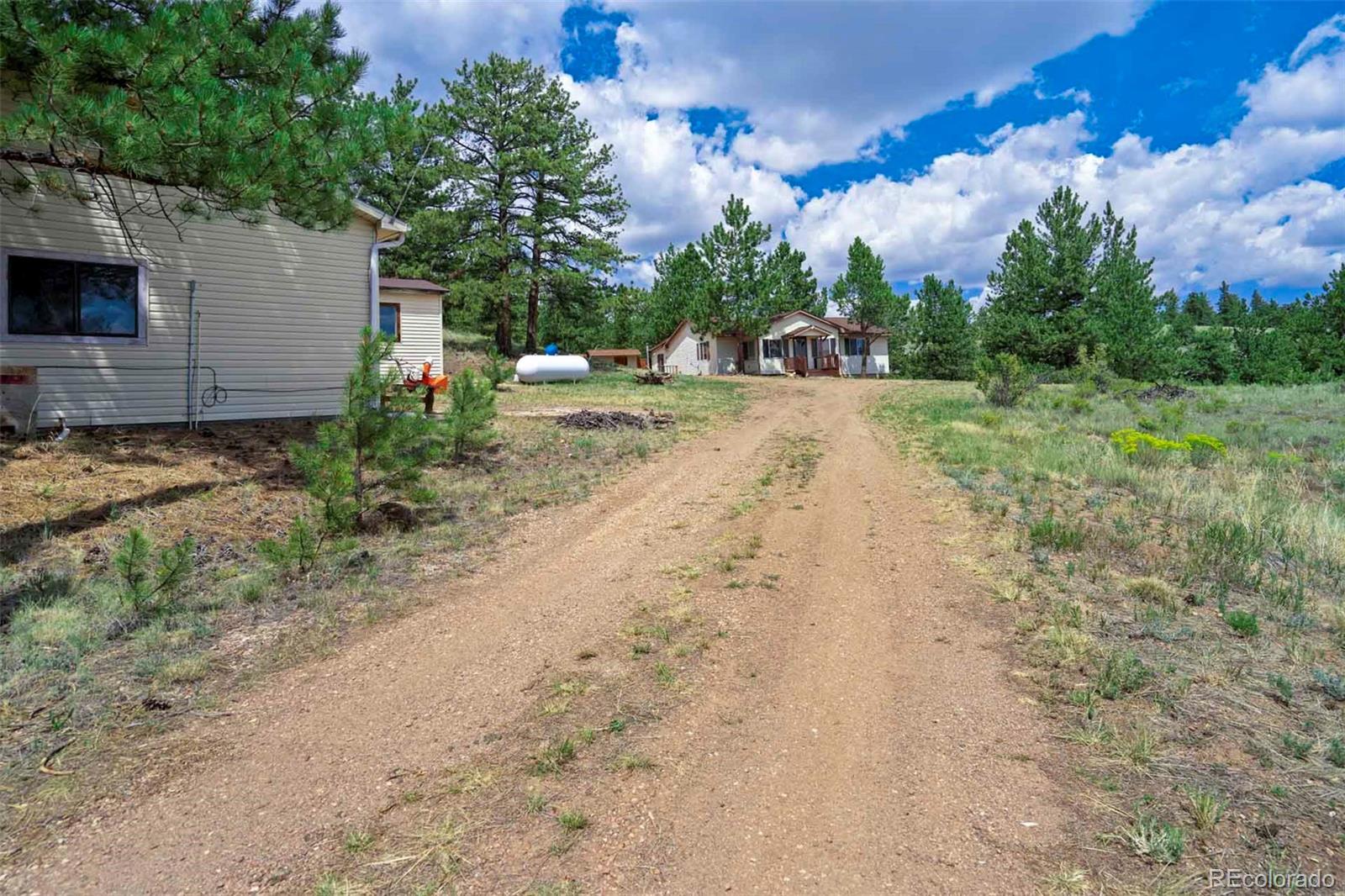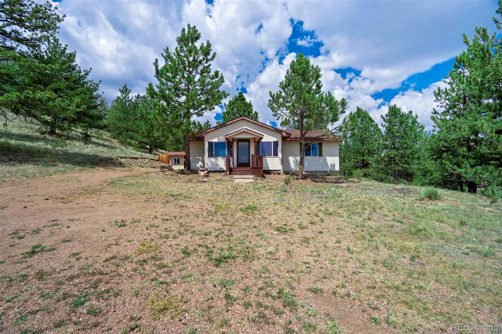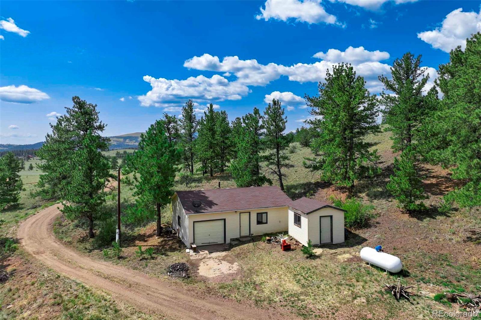 Set on 20 desirable acres in the Pike Trails community near Guffey, this updated 2 bedroom, 1 bath, single story home delivers the land, setting, and convenience buyers want. Built in 2001 with 1,176 sq ft, it now features a brand new roof, fresh interior and exterior paint, new blinds, and updated fixtures, so you can settle in and start enjoying the property from day one. The acreage is the star, combining open meadows and stands of pine with long views, privacy, and sunshine. Gentle terrain makes the land easy to use, with room for horses, gardens, and future ideas, plus ample space to stage trailers, equipment, and toys. Watch wildlife move through the grass, listen to the wind in the trees, and soak up big night skies that remind you why people choose this lifestyle. A 480 square foot detached workshop, a detached one car garage, and two small storage sheds support projects and storage without crowding your living space. From this quiet basecamp, year round fun is close at hand. Explore miles of trails and hunt in nearby Pike National Forest, fish or boat at Eleven Mile Reservoir, hike and watch wildlife at Mueller State Park, ride scenic byways, and when winter calls, head for a day of skiing in Breckenridge. For everyday needs, the friendly town of Guffey provides small town essentials, while Canon City and Woodland Park offer dining, services, and shopping. Here, the home is comfortable and practical, yet the land is what elevates the experience, offering freedom, fresh air, and the kind of elbow room that is hard to find. Whether you envision a peaceful retreat, a base for adventure, or a place to build equity over time, this property is a rare chance to own usable, beautiful acres in a sought after Colorado location. South facing exposure brings warmth, and the mix of pasture and timber gives you sites for a barn, greenhouse or outdoor living. From spring wildflowers to glowing fall grasses and peaceful winter mornings, every season brings its own beauty!