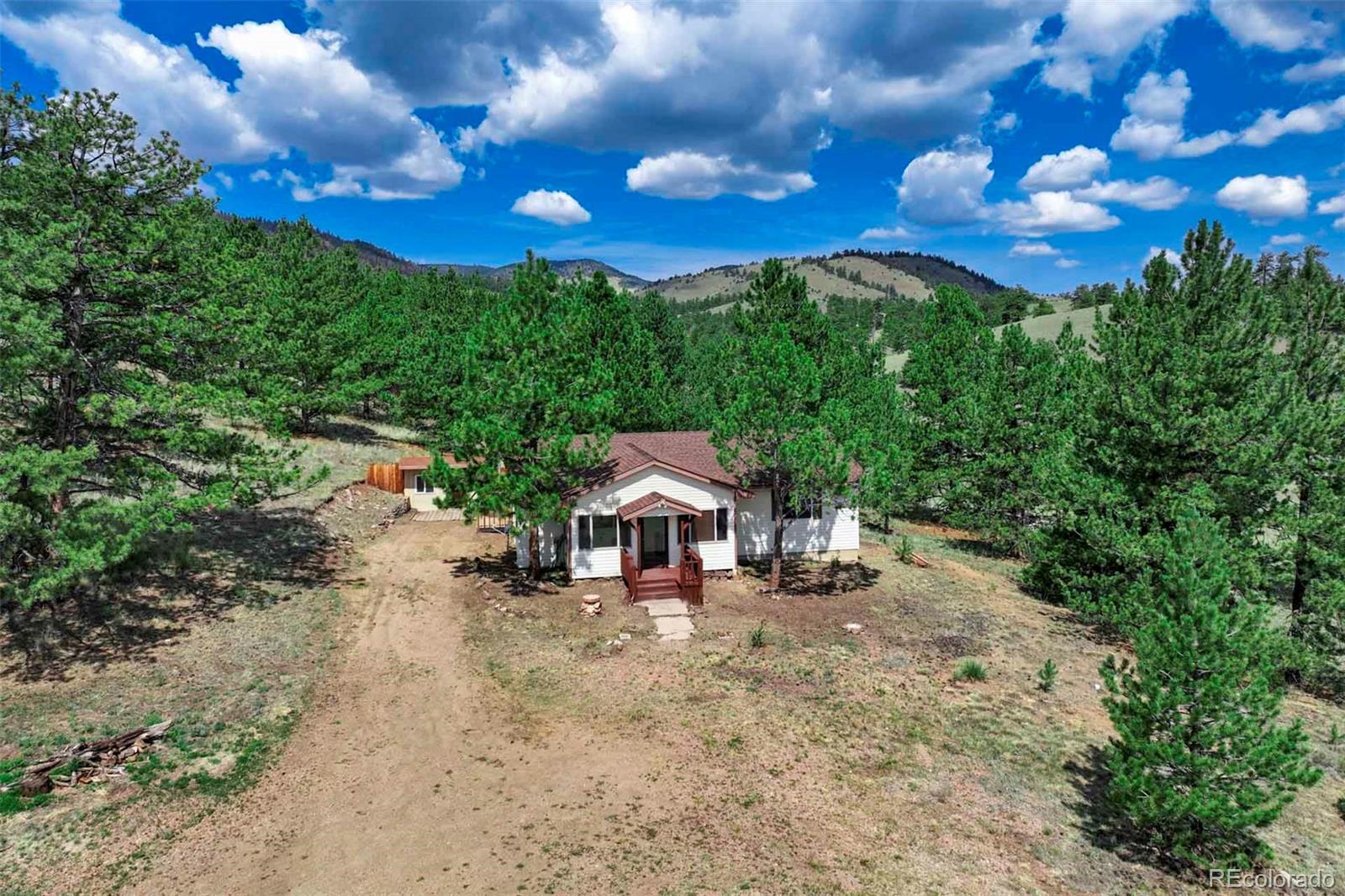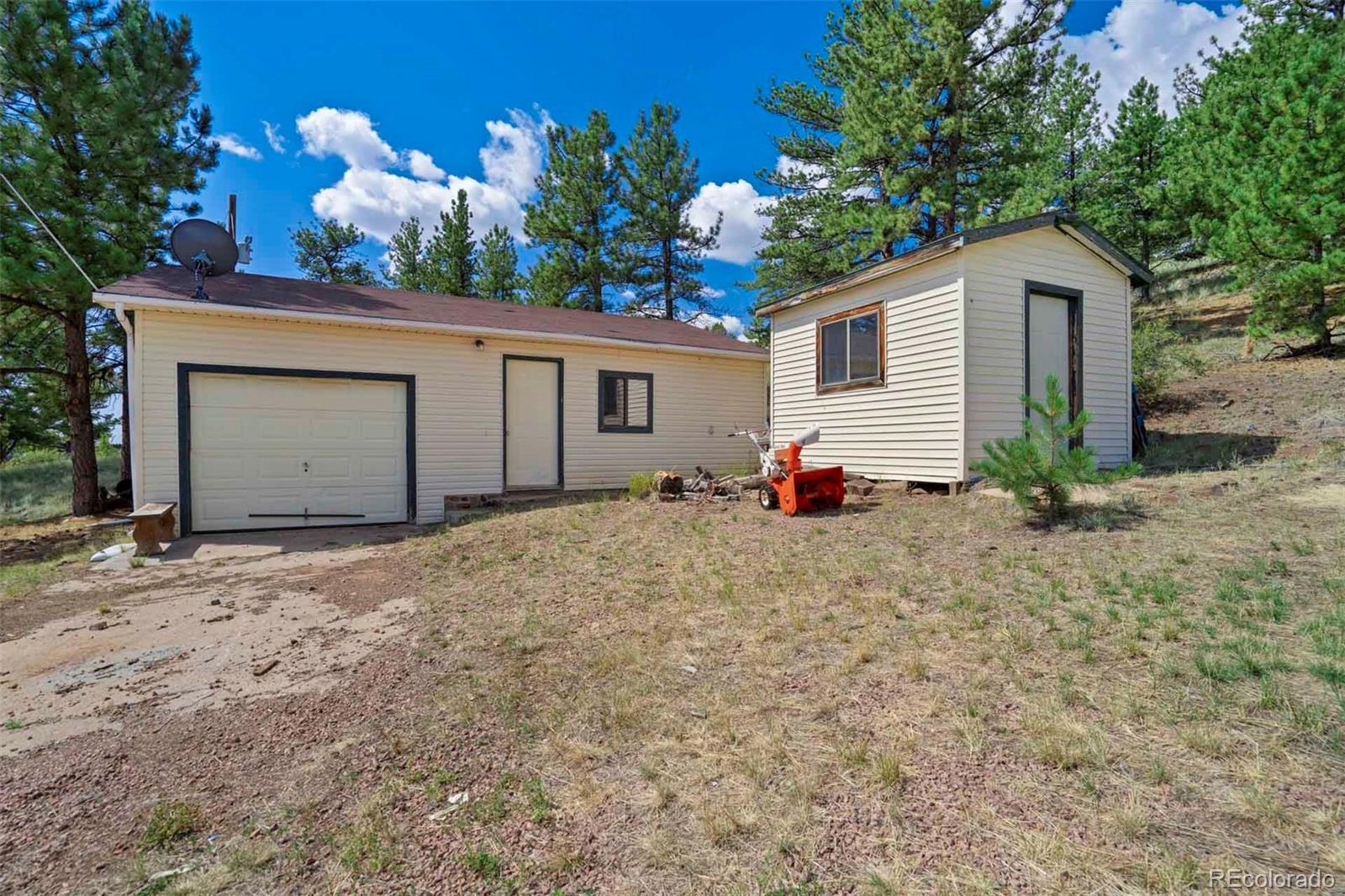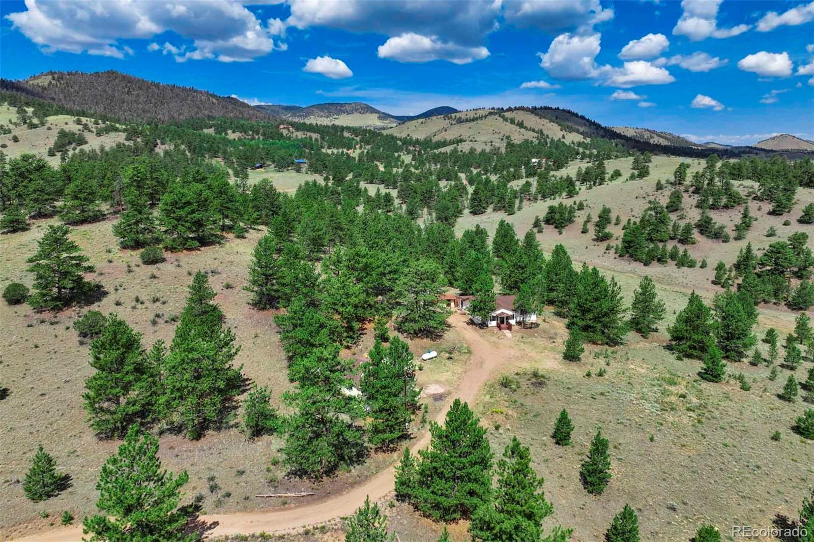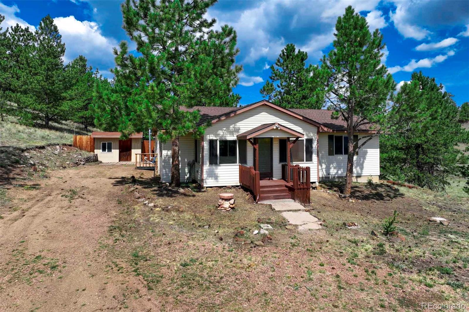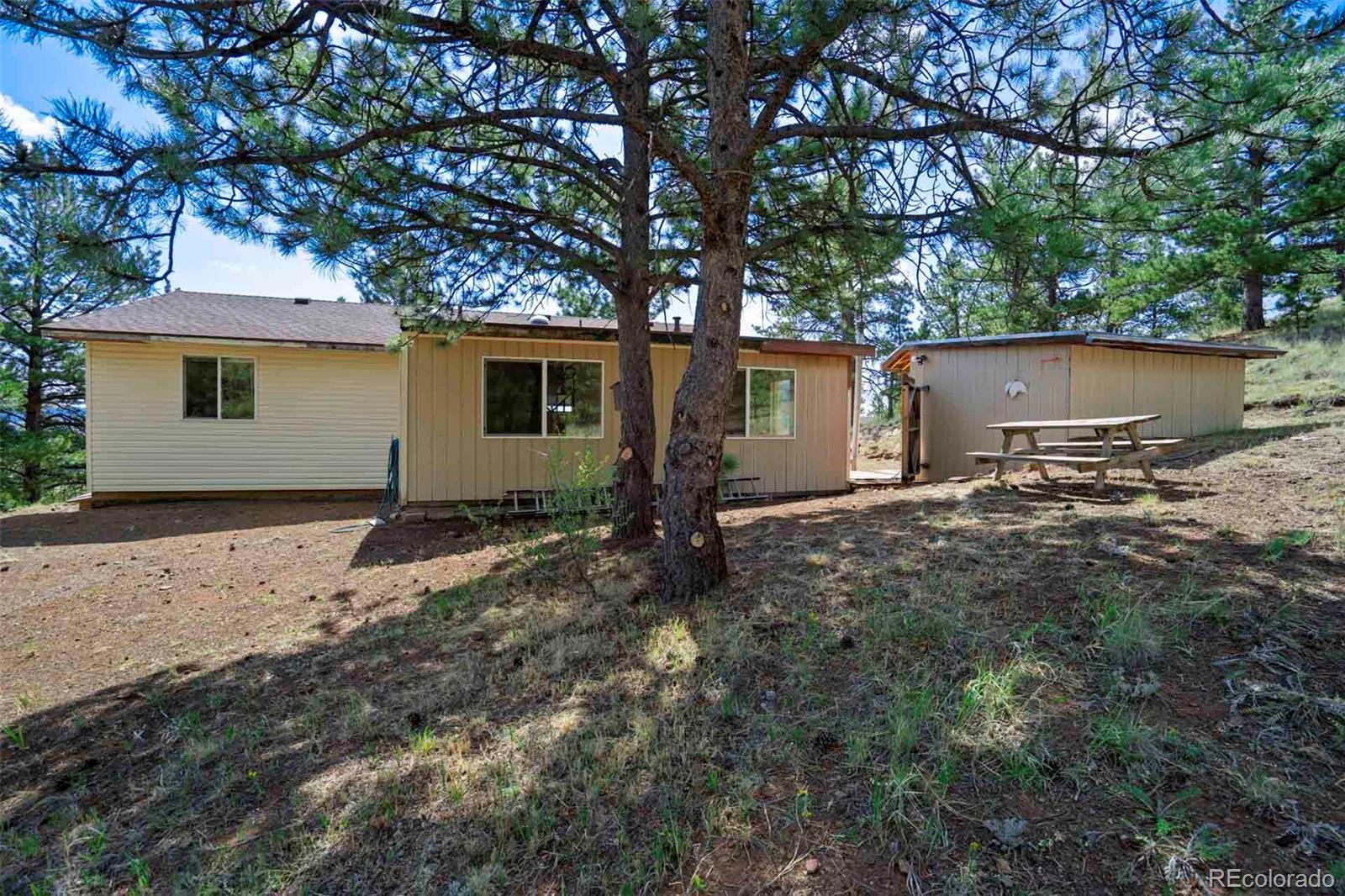 Set on 20 desirable acres in the Pike Trails community near Guffey, this updated 2 bedroom, 1 bath, single story home delivers the land, setting, and convenience buyers want. Built in 2001 with 1,176 sq ft, it now features a brand new roof, fresh interior and exterior paint, new blinds, and updated fixtures, so you can settle in and start enjoying the property from day one. The acreage is the star, combining open meadows and stands of pine with long views, privacy, and sunshine. Gentle terrain makes the land easy to use, with room for horses, gardens, and future ideas, plus ample space to stage trailers, equipment, and toys. Watch wildlife move through the grass, listen to the wind in the trees, and soak up big night skies that remind you why people choose this lifestyle. A 480 square foot detached workshop, a detached one car garage, and two small storage sheds support projects and storage without crowding your living space. From this quiet basecamp, year round fun is close at hand. Explore miles of trails and hunt in nearby Pike National Forest, fish or boat at Eleven Mile Reservoir, hike and watch wildlife at Mueller State Park, ride scenic byways, and when winter calls, head for a day of skiing in Breckenridge. For everyday needs, the friendly town of Guffey provides small town essentials, while Canon City and Woodland Park offer dining, services, and shopping. Here, the home is comfortable and practical, yet the land is what elevates the experience, offering freedom, fresh air, and the kind of elbow room that is hard to find. Whether you envision a peaceful retreat, a base for adventure, or a place to build equity over time, this property is a rare chance to own usable, beautiful acres in a sought after Colorado location. South facing exposure brings warmth, and the mix of pasture and timber gives you sites for a barn, greenhouse or outdoor living. From spring wildflowers to glowing fall grasses and peaceful winter mornings, every season brings its own beauty!