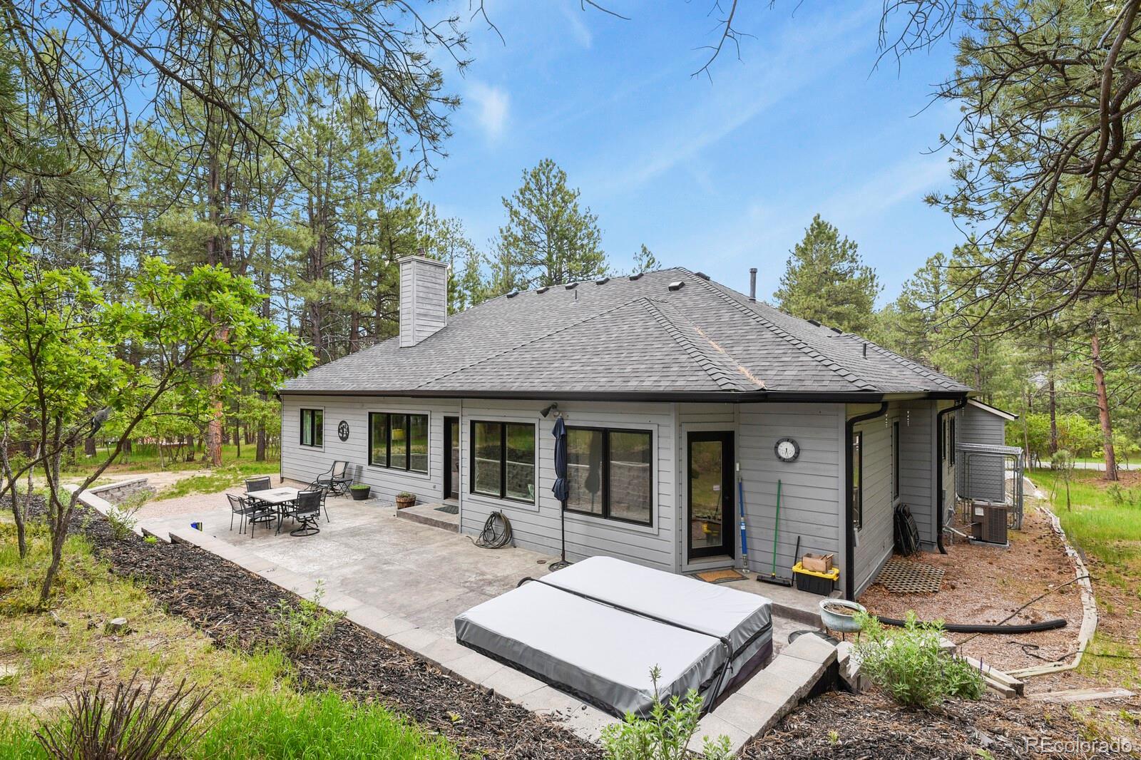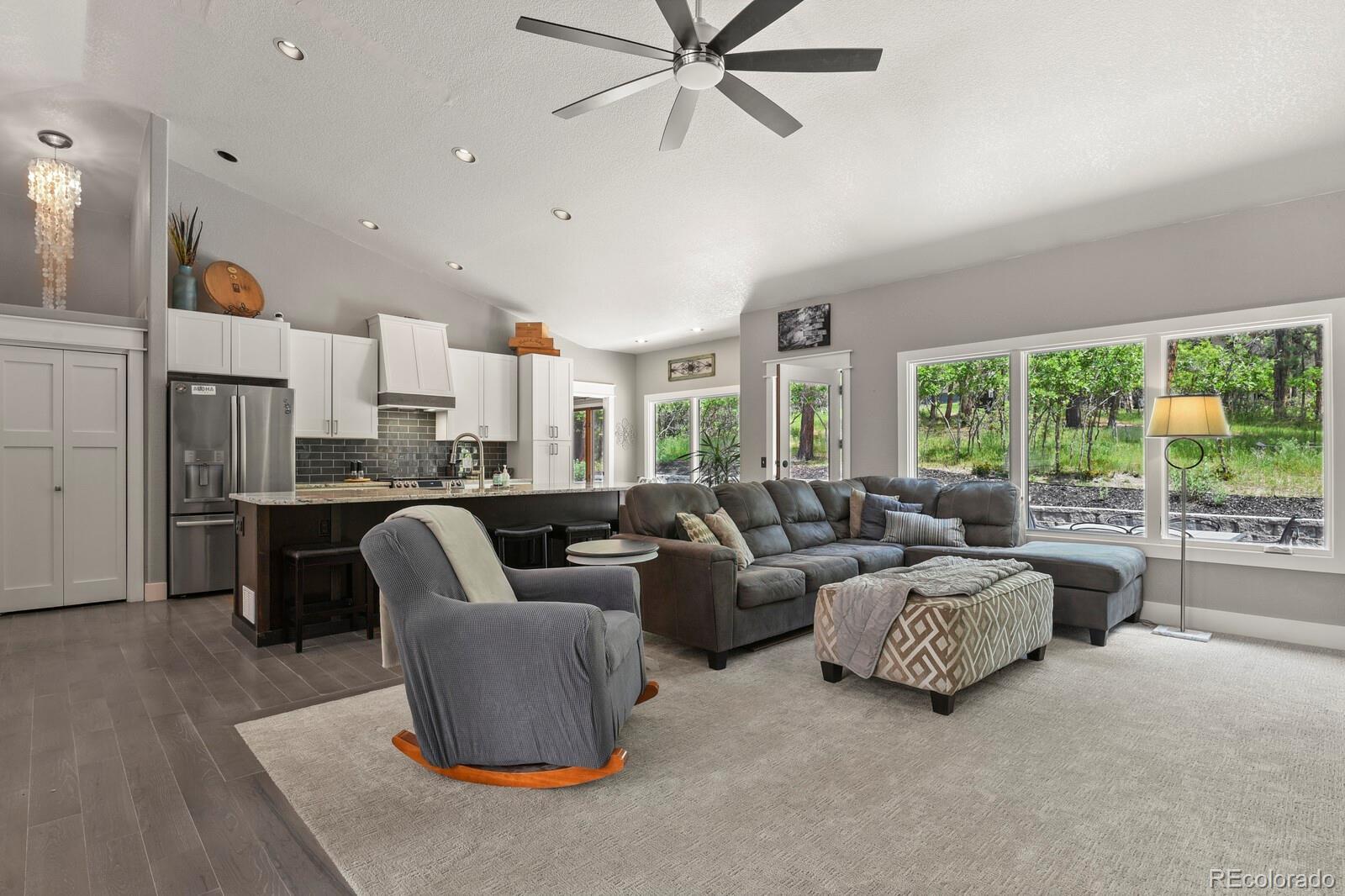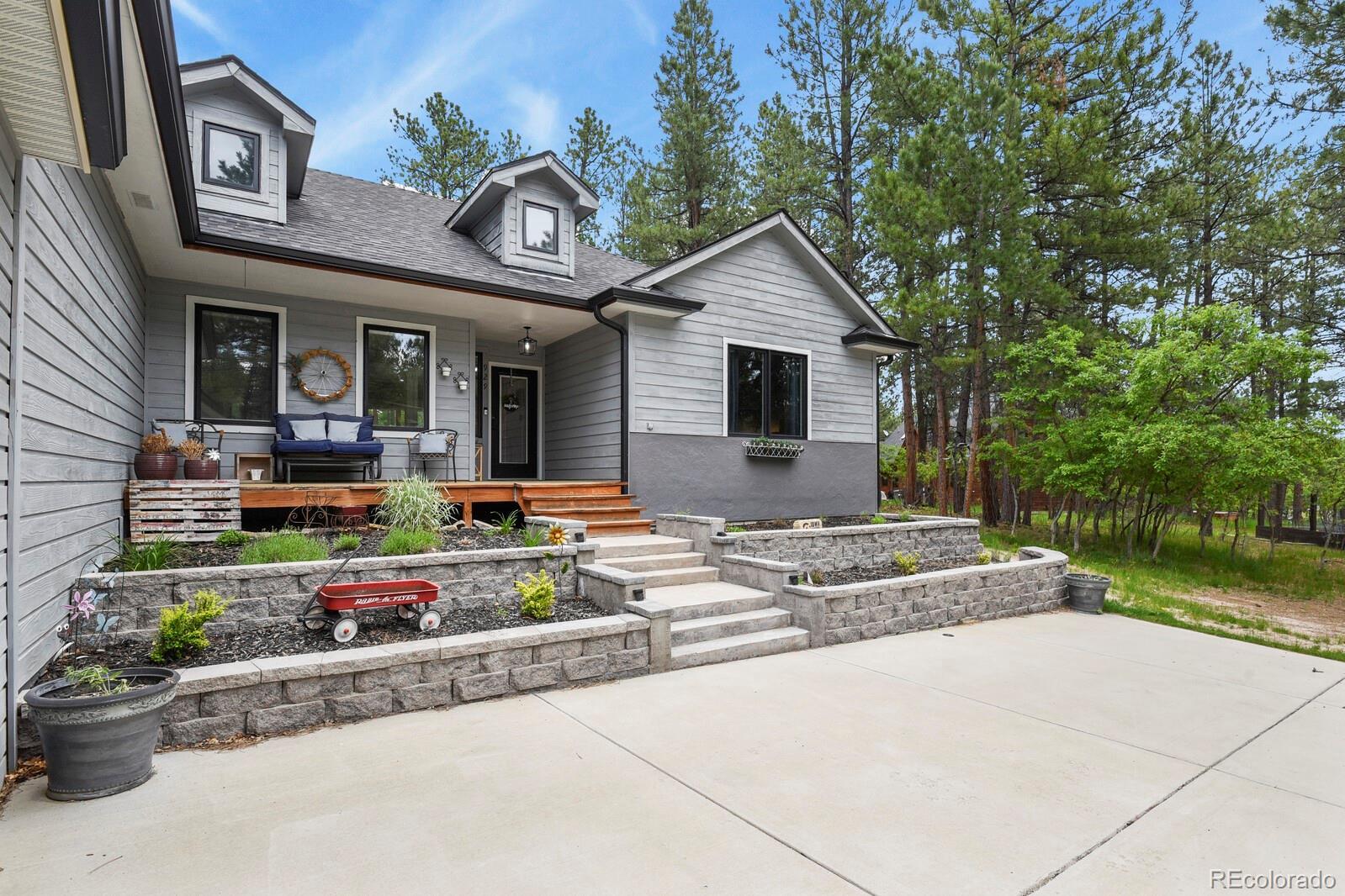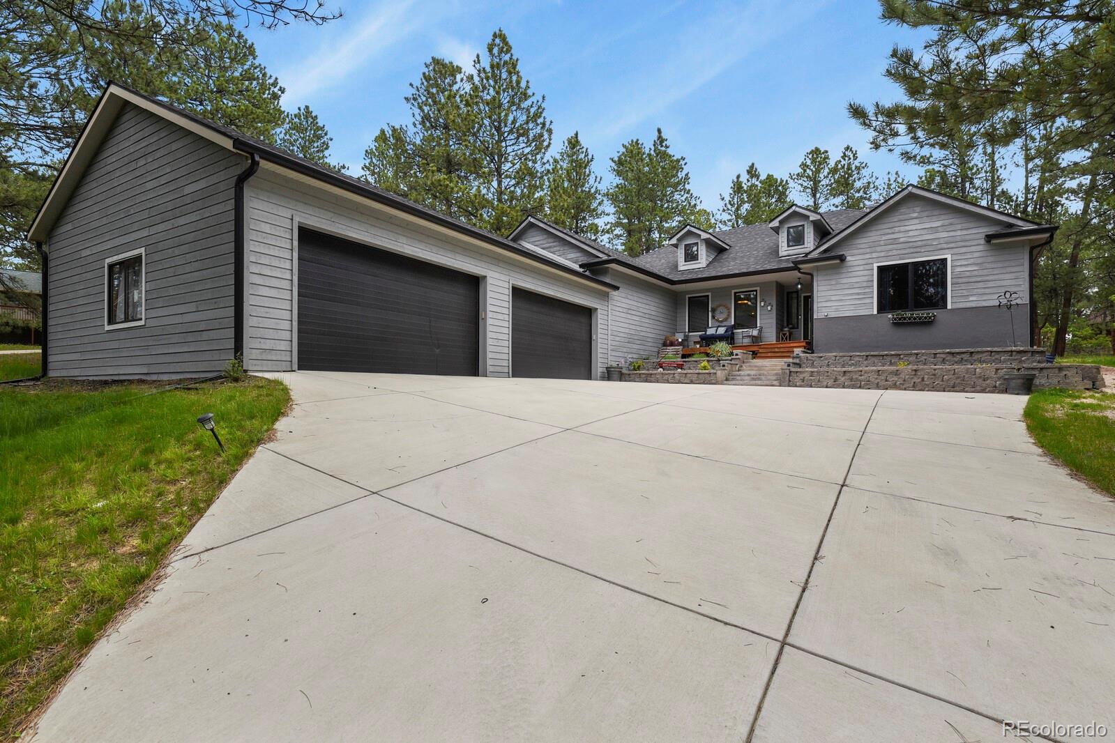 RANCH STYLE HOME! Easy main level living with room enough for all the toys! Beautifully updated ranch with attached 1500+ sq ft garage/workshop! This home has been beautifully updated inside and out. Recent updates include the addition of the extended garage, added RV parking, fresh paint inside and out, new roof, ALL new kitchen, appliances, remodeled primary suite with custom closet including laundry, new oversized shower, updated secondary bath, new patio and hot tub. Sellers also added an additional lovely finished bedroom in the basement with oversized closet. Newer back patio with a newer hot tub to enjoy beautiful evenings and soak your cares away. Too much to list! Perfect floor plan with primary on one side and secondary rooms on the other. Light, bright, and airy with beautiful windows overlooking the surrounding woods. Kitchen boasts a massive custom island with ample seating, gas oven/range, and thoughtful touches like the adorable custom coffee bar. This home is perfect for Larkspur wildlife watching or hosting guests! All the major updating and projects have already been completed for you. Make this truly AMAZING home yours today!