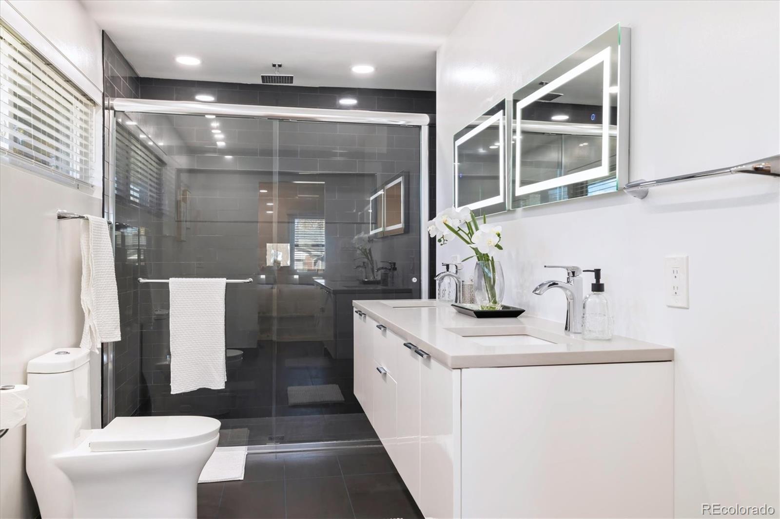 Welcome to this spacious (3,466 SQ FT!), remodeled storybook ranch in the sought-after Holly Hills neighborhood, where timeless design meets central Denver convenience. Set within the prestigious Cherry Creek 5 School District, this classic brick ranch blends contemporary updates with enduring charm in a quiet, established community with no HOA fees. // Recent upgrades include newer double-pane windows, roof, plumbing, electrical, concrete, landscaping, and paint, offering modern efficiency and peace of mind. The open floor plan flows effortlessly with water-resistant laminate plank flooring throughout. The inviting kitchen features stainless steel appliances, quartz countertops, and ample modern cabinetry, while the dining area highlights a contemporary chandelier framed by the home’s original bay window, merging vintage character with modern style. Two generous living spaces offer flexibility for entertaining, a home office, or an optional third bedroom. A functional main floor laundry, mudroom, and powder bath enhance everyday convenience. The primary suite feels like a private retreat with a sliding barn door leading to a beautifully updated en-suite bath featuring a walk-in shower, quartz floating double vanity, and a walk-in closet with built-ins. The second bedroom also includes an en-suite bath with a walk-in shower, perfect for guests or family. // A full unfinished basement provides endless possibilities for future customization. Outside, the expansive backyard invites relaxation and gatherings with a newly poured concrete patio and an updated sprinkler system in both front and back yards for easy maintenance. // Located near local favorites such as Esther’s, James Bible Park, and the High Line Canal Trail, with quick access to Downtown Denver, Cherry Creek North, and the Denver Tech Center, this home offers an effortless blend of comfort, convenience, and community. Schedule your showing today and make this storybook ranch your next chapter!