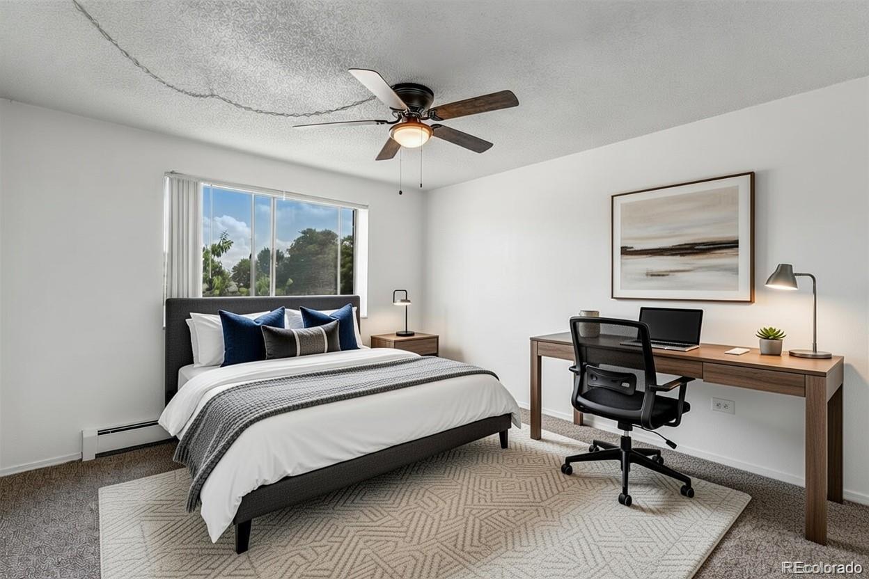 Condo Under $250,000 in Denver! Well-maintained two-bedroom, two-bath condo in a highly convenient location less than 10 minutes to downtown Denver and adjacent to Rocky Mountain Lake Park. This home offers a spacious floor plan with an oversized covered balcony, ideal for outdoor living. The primary bedroom includes a full ensuite bath, while both bedrooms are generously sized. Recent updates include new carpet, refreshed flooring in one bedroom, and updated vanities in both bathrooms. The kitchen features a tiled eat-in area, newer stove and dishwasher, and all appliances included. Ceiling fans in the bedrooms, kitchen, and living room provide added comfort. One reserved parking space is included. HOA dues cover water, heat, and building amenities; buyer pays only electric separately. Laundry facilities are available on every other floor. Excellent proximity to Regis University, the Highlands, and downtown Denver, with convenient access to I-70 and public transit.