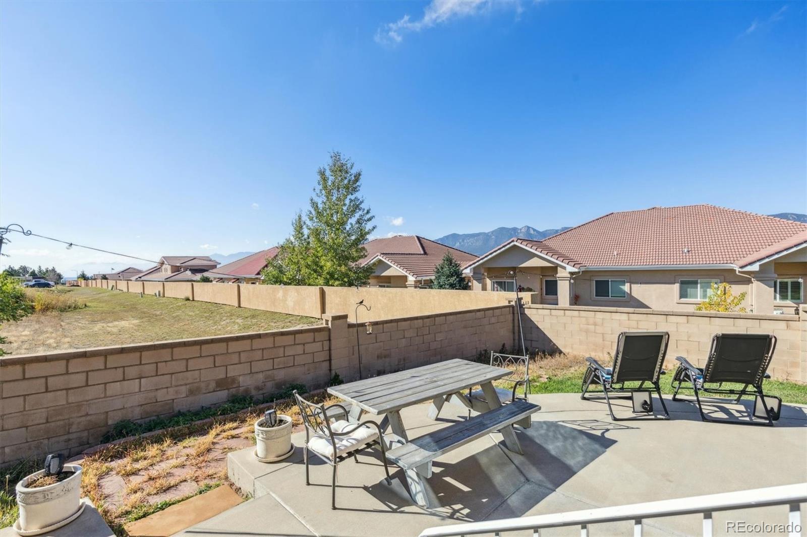 Awesome 4 bed, 3 bath ranch home with mountain views, in the south Gleneagle location! Large kitchen with granite counter tops, hardwood flooring, breakfast area, bay window, pantry, and newer black stainless appliances. Retreat to the Large master suite with private bathroom with lots of cabinets & walk in closet. Convenient main level laundry. Sun room or Study with patio door access to the oversized patio to enjoy the mountain views and those fine Colorado days and nights. There is also a gas hook up for the BBQ. The Basement is finished for additional living area with a huge family room with pellet stove insert, 2 additional bedrooms with a full bath and also has a huge storage area as well. New Vinyl plank flooring, Central air conditioning, humidifier, vaulted ceilings along with a finished, insulated & heated garage. Very low maintenance exterior! Stucco, tile roof and the HOA takes care of the yard and shovels the driveway! Minutes from I-25, the Air Force Academy, shopping, dining, and outdoor recreation. Don’t miss this opportunity to own this all main level living home, in one of the area’s most sought-after neighborhoods!