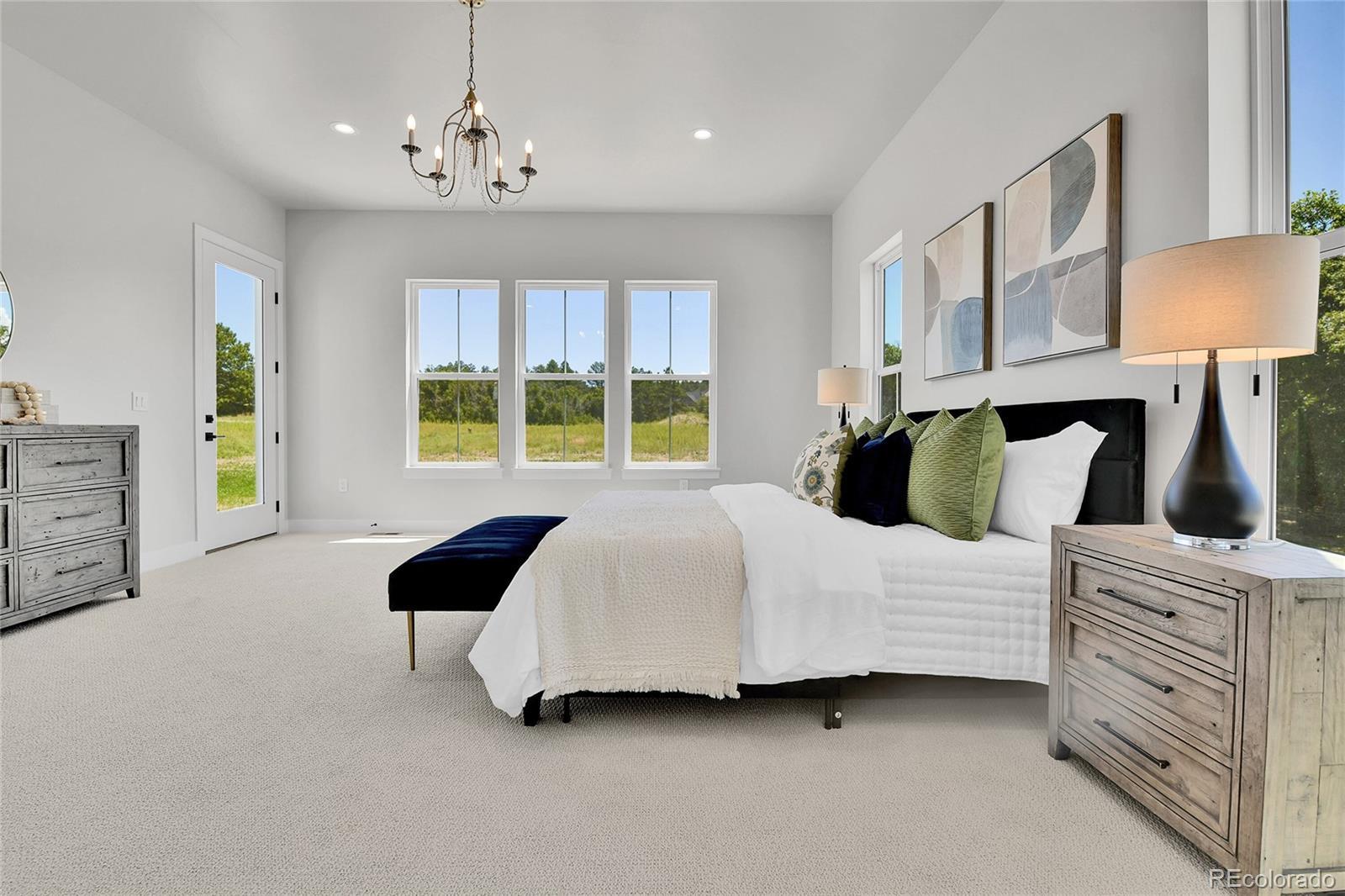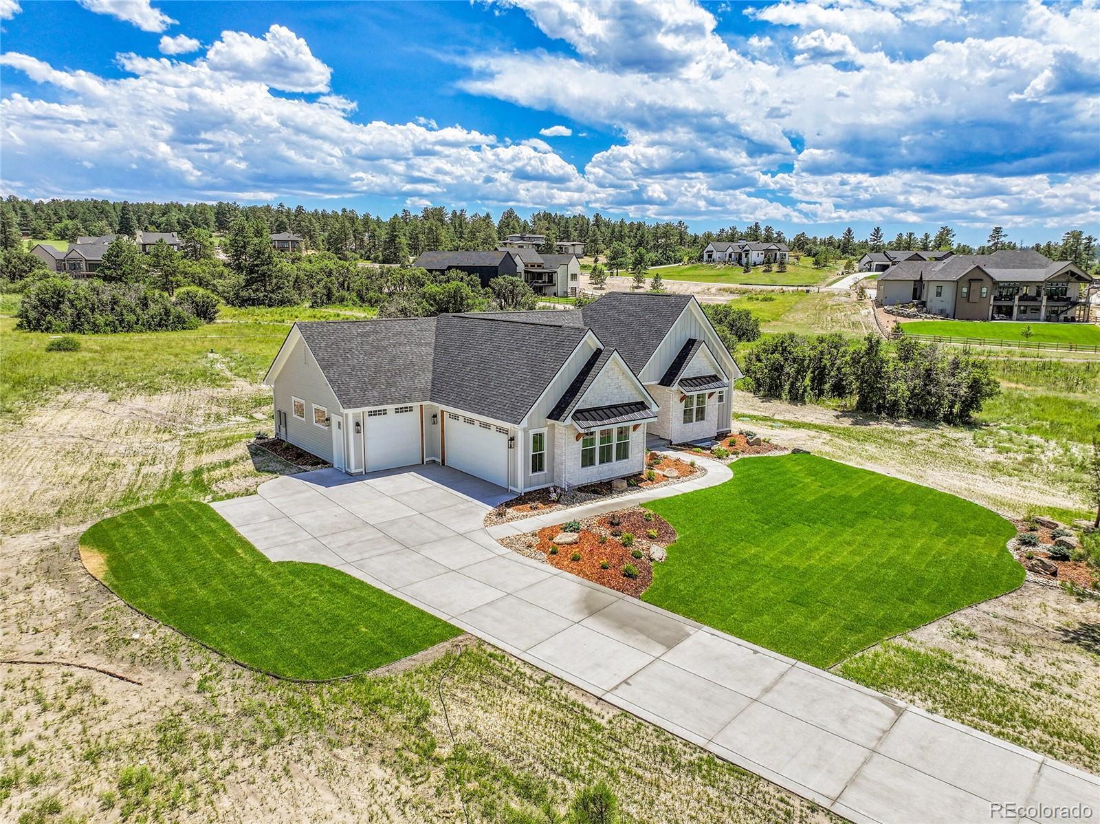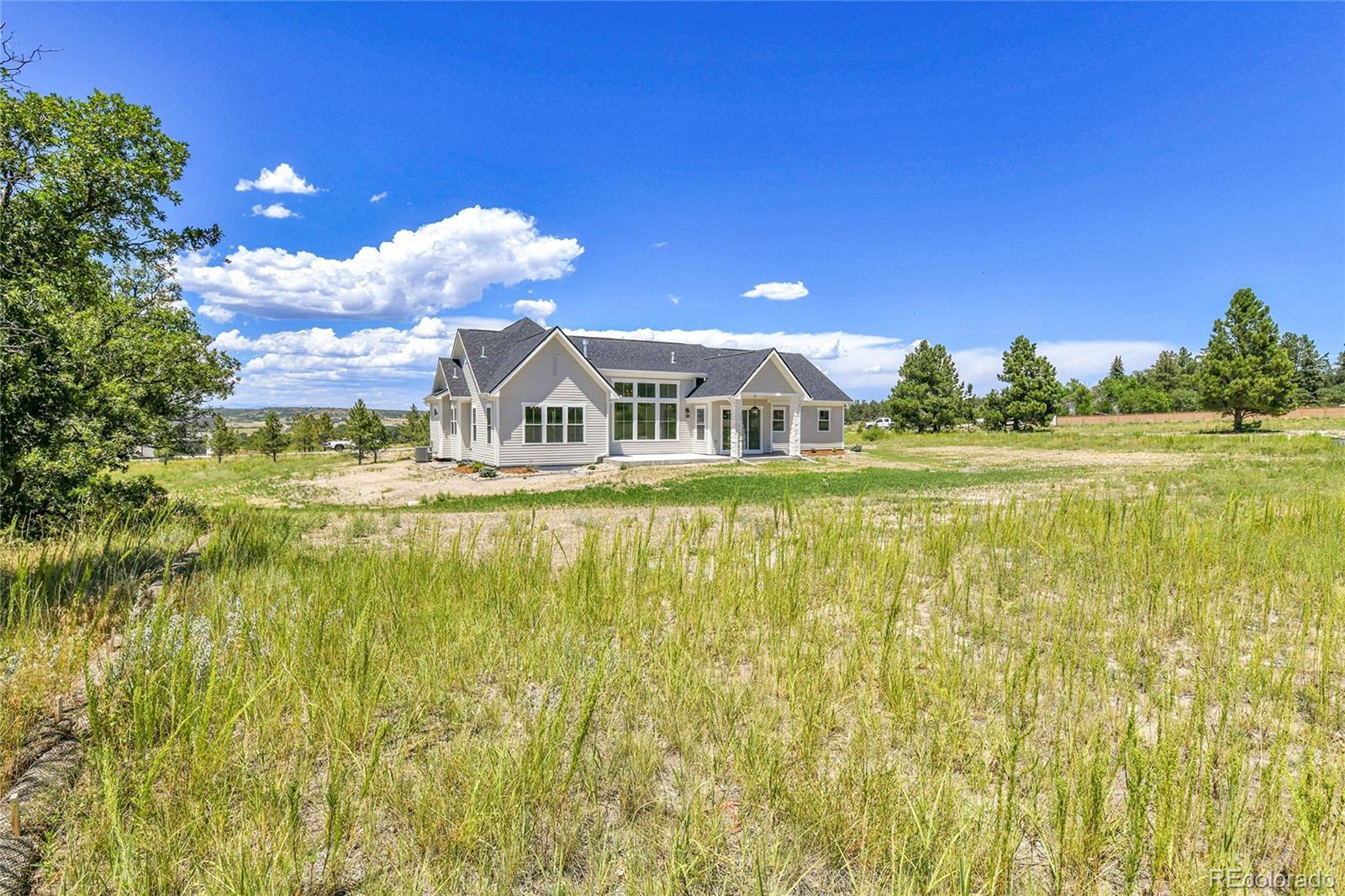 NEW CONSTRUCTION, GATED COMMUNITY, NO METRO DISTRICT, 2 ACRE HOME SITE BACKING TO OPEN SPACE. Discover elegant living in this exquisite custom home nestled within the prestigious Arrowpoint Estates, a gated community in the charming rural town of Franktown. Community Features: - Gated community with NO metro district - Low HOA dues - Home boasts a private well and includes deeded water rights in five aquifers Home Highlights: - Impeccably designed custom home with superior quality finishes - Hand trowel texture, solid core (8') doors, and designer elements throughout - Main level primary suite featuring a spacious walk-in closet with washer/dryer hookups, and luxurious 5-piece bath - Second main level ensuite with full bath for family or guests - Dedicated office space with incredible views - Gourmet kitchen equipped with Thermador appliances, dual islands, a back kitchen, and separate walk-in pantry - Stunning stacked two-tone cabinetry and quartz countertops - Expansive open lower level with 10' ceilings, wet bar, and laundry room - Three additional bedrooms in the lower level, each with walk-in closets - Two full baths in lower level - Large laundry room with utility sink in lower level - Oversized three-car garage to accommodate all your vehicles and toys - Beautifully landscaped two-acre home site, backing to serene open space This residence is perfect for those seeking a luxurious lifestyle in a peaceful setting. Don't miss out on the opportunity to make this stunning home yours! The listing agent for this property is also the seller, while the co-listing agent has a familial connection to the builder. All information provided is deemed reliable but is not guaranteed and should be independently verified. Buyer to verify all information including, but not limited to, square footage, lot size, zoning, and allowable uses. Listing subject to errors, omissions, price changes, prior sale, or withdrawal without notice.
