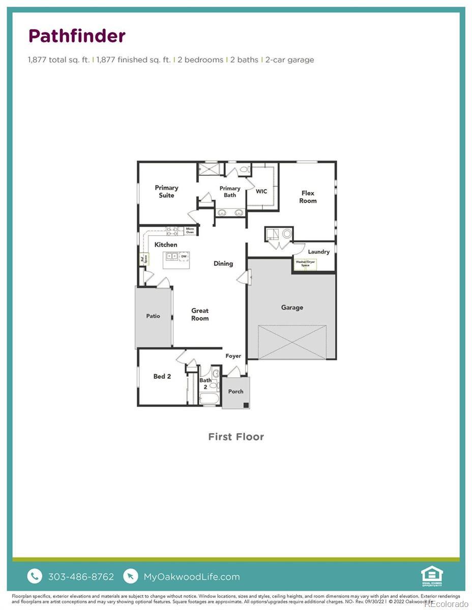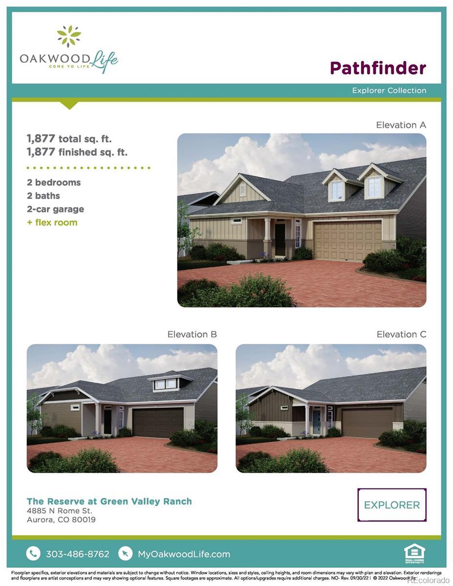 Ready to build, this one-of-a-kind Ranch floorplan has the main level living you had in mind! This Pathfinder floorplan comes standard with 2 bedrooms, 2 bathrooms, 2 car garage, popular flex space, and 1877 finished square feet. That's not all, included within this home you will find 9' main floor ceilings, granite in the kitchen, and much more! Call our Inside Sales Team to schedule an appointment and learn more about the available options to meet your needs. *THIS IS A MODEL REPRESENTATION OF WHAT CAN BE BUILT*