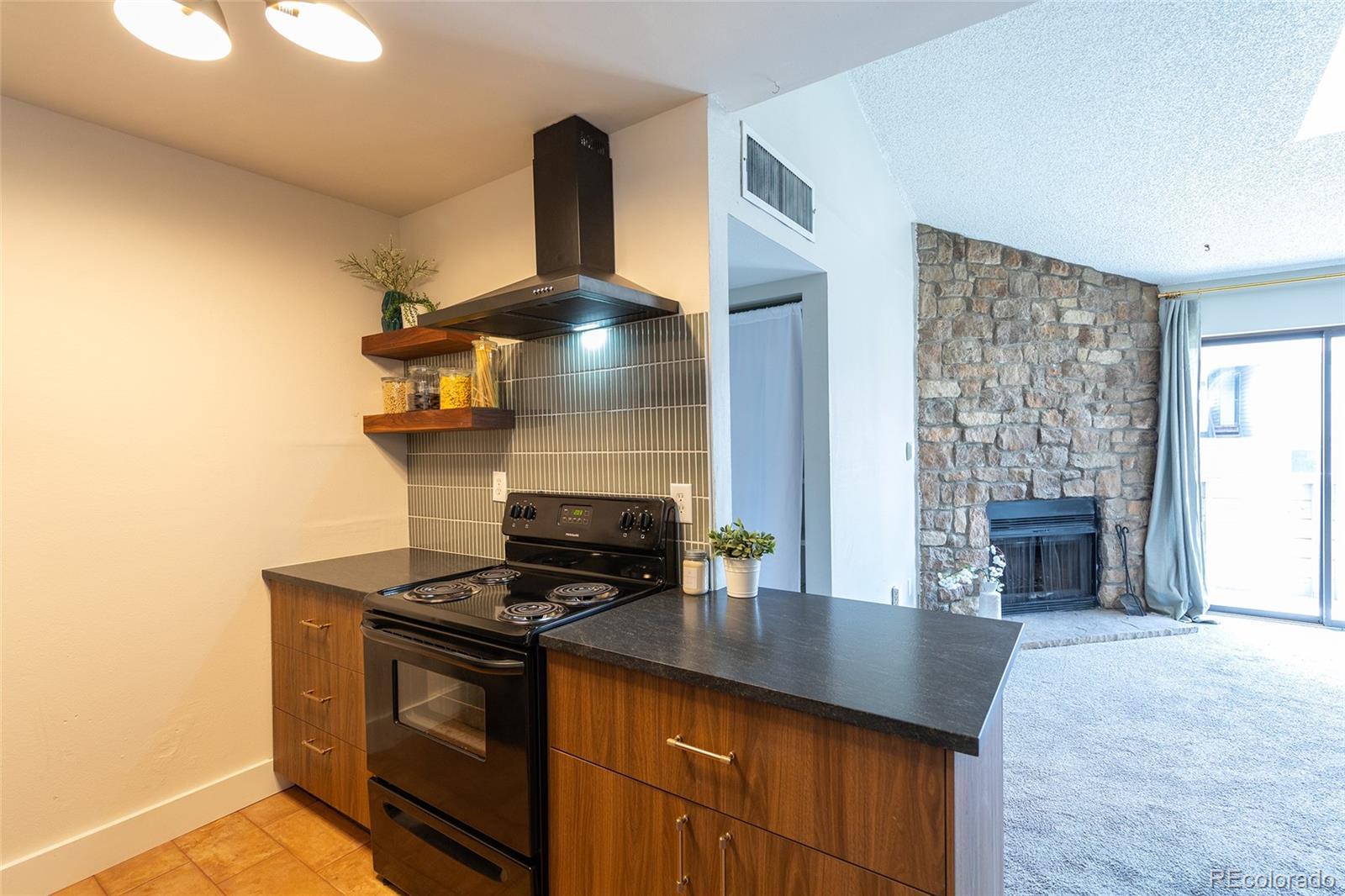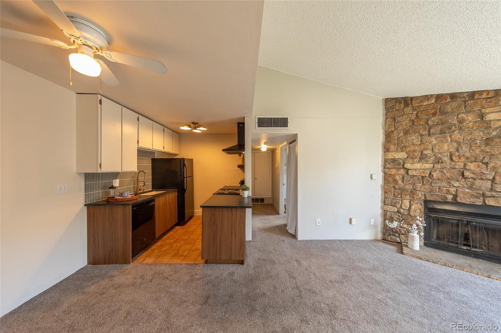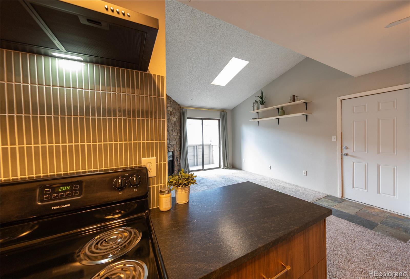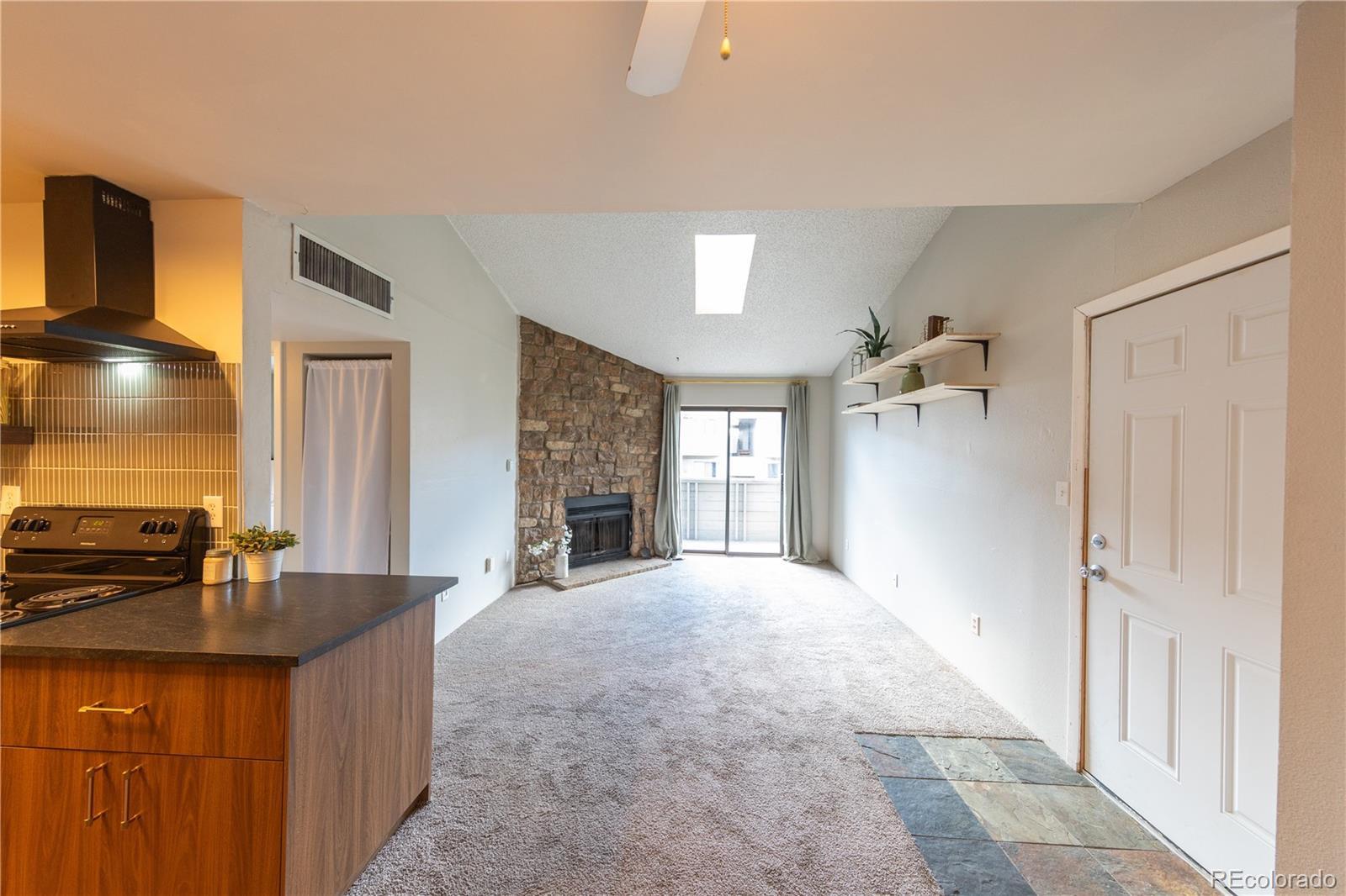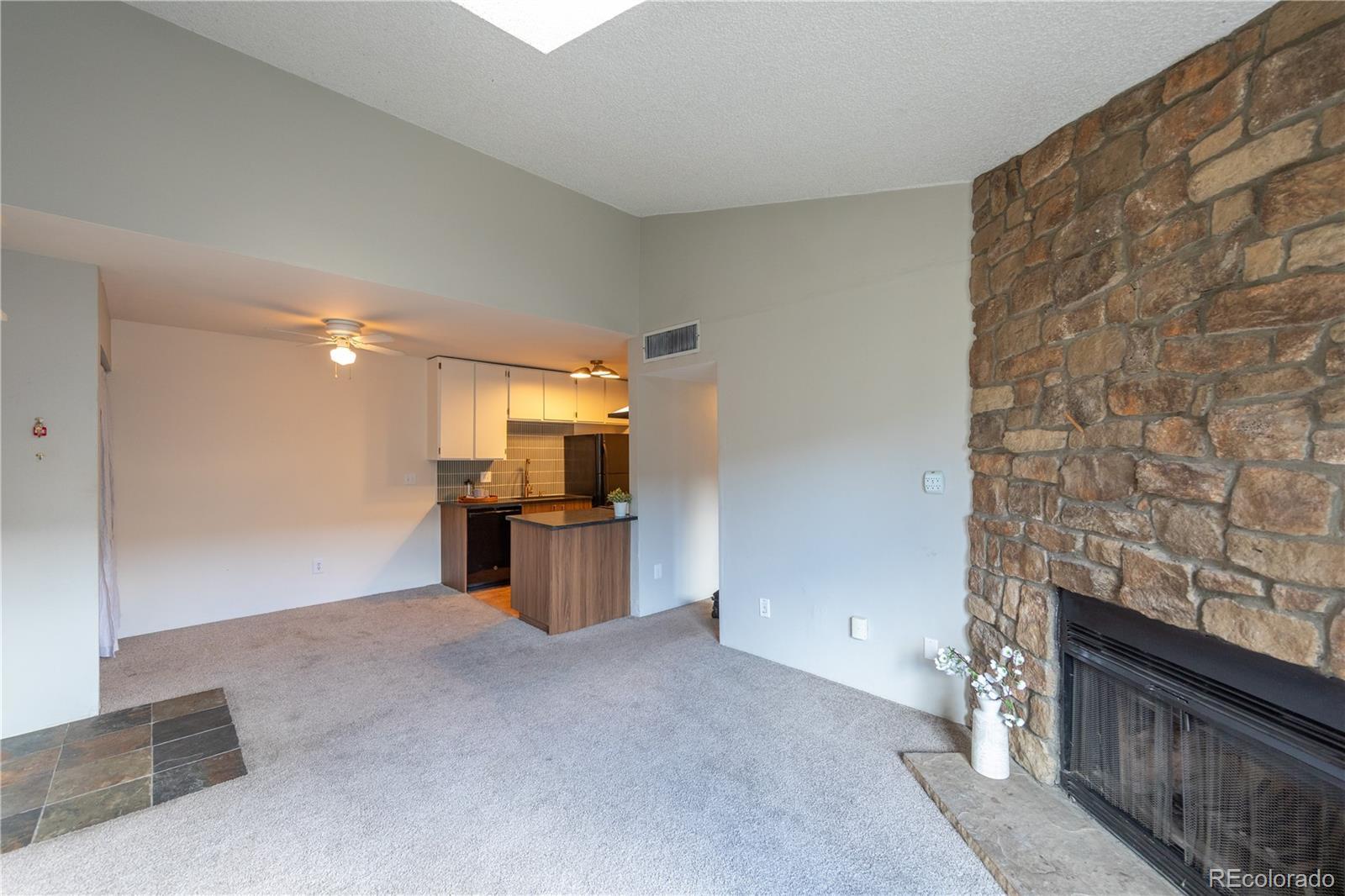 MOTIVATED SELLER! Preferred lender offering buy down concession. Great opportunity to own a well-kept 1-bdrm, 1-bath top floor condo with beautiful, newly remodeled kitchen wtih granite countertops! Vaulted living room ceiling with wood-burning fireplace. New water heater 2024, new furnace & AC 2022. In-unit washer & dryer. West facing balcony overlooks beautiful pool area. Storage close off balcony. Steps from RTD bus stop. Nearby shopping including River Pointe Center. Easy access to Hwy 285.