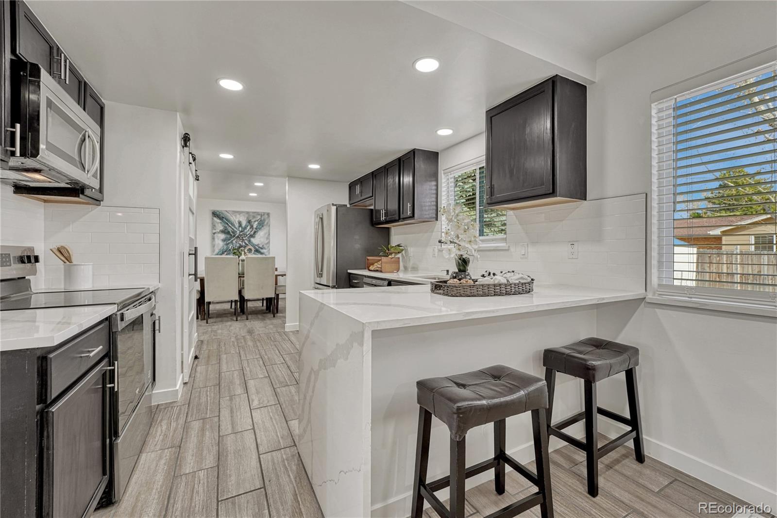 Welcome home to this exceptional fully remodeled residence where modern design meets effortless functionality. Reimagined from top to bottom (including a brand new roof), this 5-bedroom, 3.5-bath home delivers the space, style, and upgrades today’s buyers crave. The heart of the home is a show-stopping chef’s kitchen, featuring a dramatic waterfall quartz countertop, sleek cabinetry, and a full suite of stainless steel appliances—perfect for entertaining or everyday living. Open, light-filled living spaces flow seamlessly, creating a warm yet sophisticated atmosphere throughout, sit back and enjoy the fireplace during our chilly Winters and enjoy the cool down of Colorado nights with full house attic fan and air conditioning. With five generously sized bedrooms, including a luxurious primary suite, and beautifully updated bathrooms with high-end finishes, there’s room for everyone to live, work, and relax in comfort. Every detail has been thoughtfully curated—from modern fixtures to quality craftsmanship—so you can move right in and start enjoying Colorado living from day one. This is more than a remodel—it’s a complete transformation.