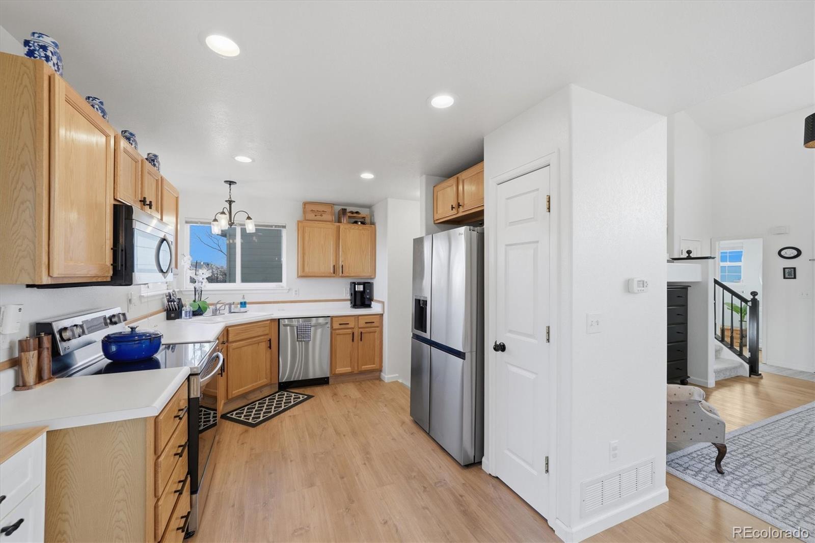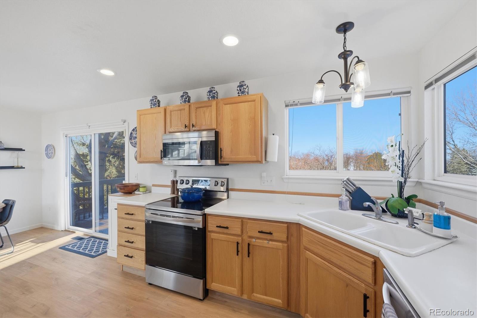 Welcome to this wonderful Highlands ranch home, perfectly positioned to capture breathtaking mountain and city views. From the moment you step inside, you’ll appreciate the inviting, clean, and crisp feel enhanced by brand-new modern LVT flooring throughout the main level, fresh interior paint, and new carpet. The thoughtfully designed floor plan offers two bedrooms plus a loft that can easily be converted into a third bedroom—already complete with a closet, as this was an original builder option. The primary suite is a true retreat, featuring a charming barn door and peaceful views to wake up to each morning. The kitchen is both stylish and functional with newer stainless steel appliances, while updated light fixtures throughout the home add a contemporary touch. Major updates include a new hot water heater and fresh exterior paint, providing peace of mind and curb appeal. Downstairs, the garden-level basement offers three large windows that flood the space with natural light and an open layout ready for you to customize—perfect for a future rec room, guest suite, or home office. Step outside to enjoy the expansive deck overlooking incredible views and a large, flat, beautifully landscaped yard. The home feels private and serene—ideal for relaxing, entertaining, or simply taking in Colorado’s stunning scenery. This home blends comfort, flexibility, and views in a fantastic setting next to and walkable to all Town Center has to offer—an opportunity not to be missed. Fence is being redone today 1.21.26 and tomorrow 1.22.26, please excuse the mess. https://www.youtube.com/embed/pBlyIaSAJ2E