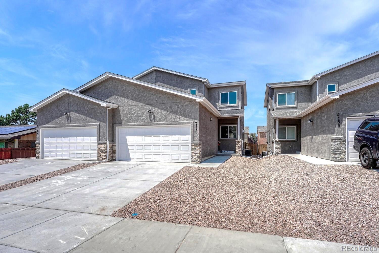 Excellent opportunity to invest in popular location with lots of rental demand. Each unit has 4 bedrooms, 4 bathrooms, and a 2 car garage. Open, spacious layouts! Modern open concept kitchen, living, dining space. Private fenced back yards with auto sprinklers and xeriscaped front yards. Primary bedrooms have full attached bathrooms with double vanities. Low maintenance stucco two-story duplex with 2,594 sqft total per unit. Kitchen features granite counters, island, pantry, and shaker style cabinets with extended height 42 inch upper cabinetry. Living room offers gas fireplace with tile surround and generous can light placement. Dining space walks out to the back yard with privacy fence. Luxury vinyl tile flooring in entry, kitchen, dining, living room, bathrooms, and laundry. Full finished basement has a bedroom, full bathroom, and a rec room pre-plumbed for a wet bar. A/C is included. Convenient to Academy, Powers, Austin Bluffs, and UCCS. Private cul-de-sac, quiet location.