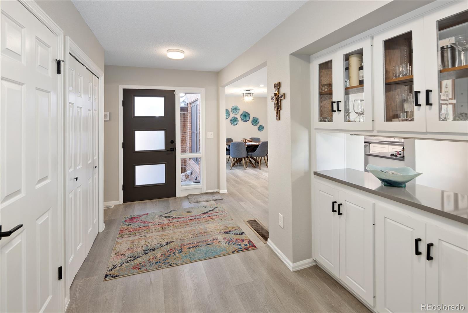 Gorgeous remodel in the desirable Pinehurst Village. This home has been completely remodeled with new flooring, new kitchen, new bathrooms and paint throughout. Thoughtfully remodeled, this turnkey Pinehurst Village residence blends contemporary style with a serene, private setting. Wonderful floor plan with plenty of space for entertaining. Basement bedroom could be a great workout room or additional office space. The main floor is designed for easy living and entertaining, featuring an open-concept layout with a sunlit living room, dining area, additional sitting space, and a beautifully updated kitchen with new cabinetry, countertops, and stainless steel appliances. The home has all new windows and a brand new french drain system was installed. A secluded patio offers effortless indoor–outdoor living with direct fairway views. Both the living room and primary bedroom enjoy unobstructed golf course vistas and abundant south-facing natural light! The upper level hosts a spacious primary suite with a spa-inspired, renovated bathroom and ample closet space, along with two additional bedrooms or flexible office options and a full bath. The finished basement provides a generous bonus living area, an updated bathroom, a laundry room, and plenty of storage. Ideally located just minutes from Pinehurst Country Club, Bow Mar, Colorado Academy, parks, trails, and shopping, this move-in-ready home offers modern convenience within one of southwest Denver’s most charming low-maintenance communities. This unit is maintenance free and backs to the golf course with a private back patio for enjoying those summer evenings.