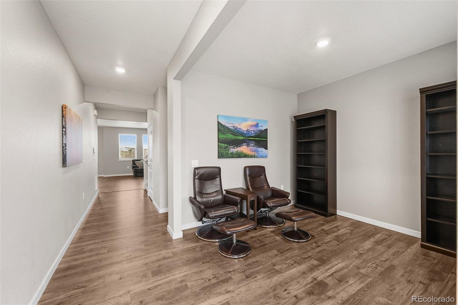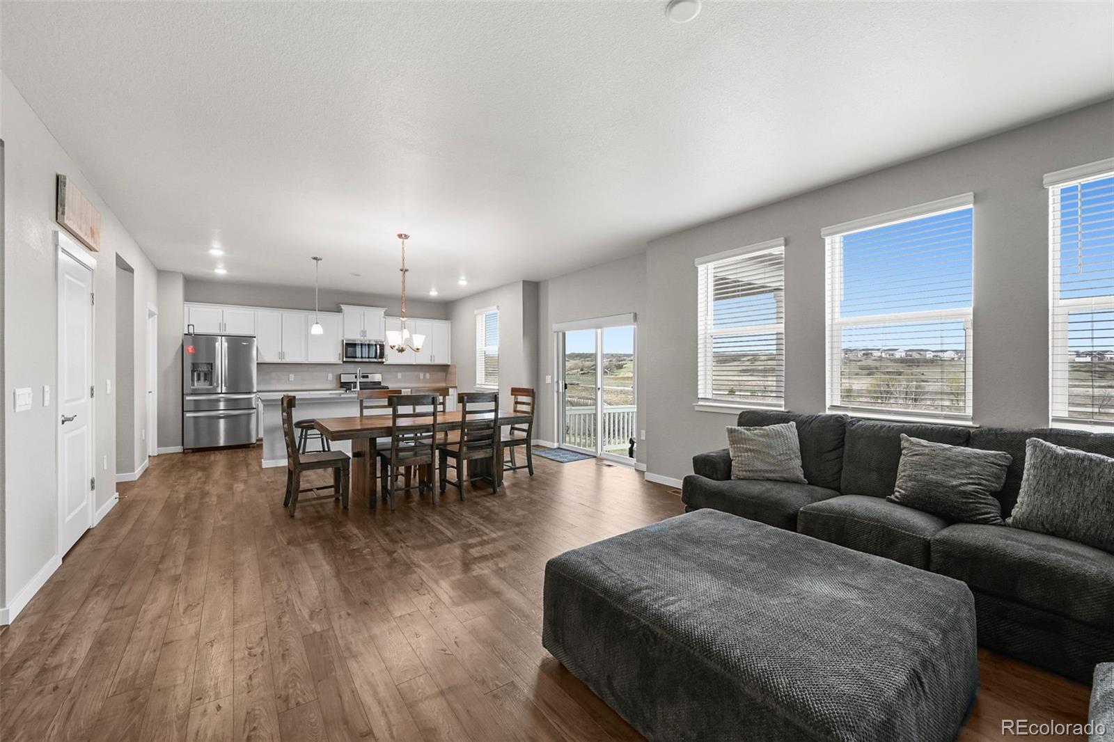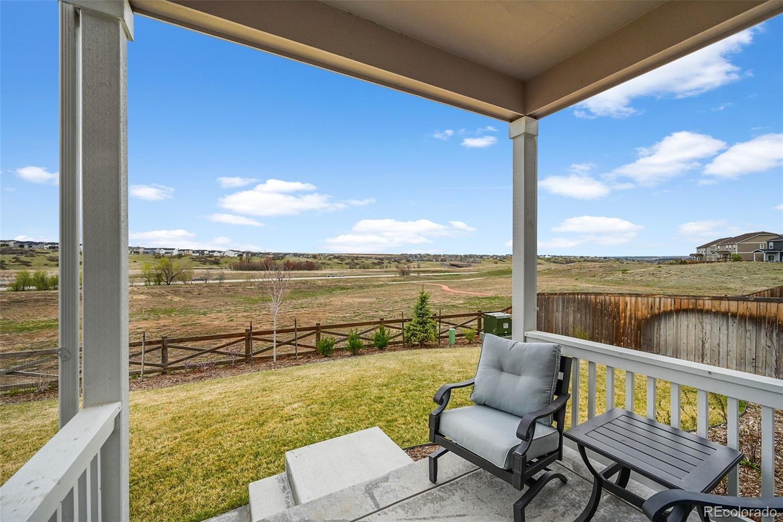Better than new—enjoy the benefits of new construction without the wait! This turnkey 2022 Bridgestone model backs to open space with mountain views in Trails at Crowfoot. Featuring 4 bedrooms, 3 baths, a main-floor study, upstairs loft, and a 3-car garage, the spacious open layout is ideal for both everyday living and entertaining. The upgraded kitchen offers white shaker cabinetry, quartz countertops, tile backsplash, stainless appliances with a gas range, and a large island. Wide-plank laminate flooring spans most of the main level, and all bathrooms include quartz counters with upgraded tile flooring. The full unfinished basement is wired and ready for your future finish—perfect for a home theater, gym, or gaming setup. Smart Home upgrades include a video doorbell, smart thermostat, tankless water heater, and more. Step outside to a fully landscaped backyard with covered patio—plus the seller has recently installed permanent outdoor holiday lighting for effortless year-round ambiance and celebrations. Enjoy community amenities including a pool, playground, and 17-acre park. Minutes to trails, parks, the PACE Center, shopping and dining, with easy access to I-25, C-470, and RTD light rail. Priced to sell—this home checks every box! Information provided herein is from sources deemed reliable but not guaranteed; Buyer to verify.