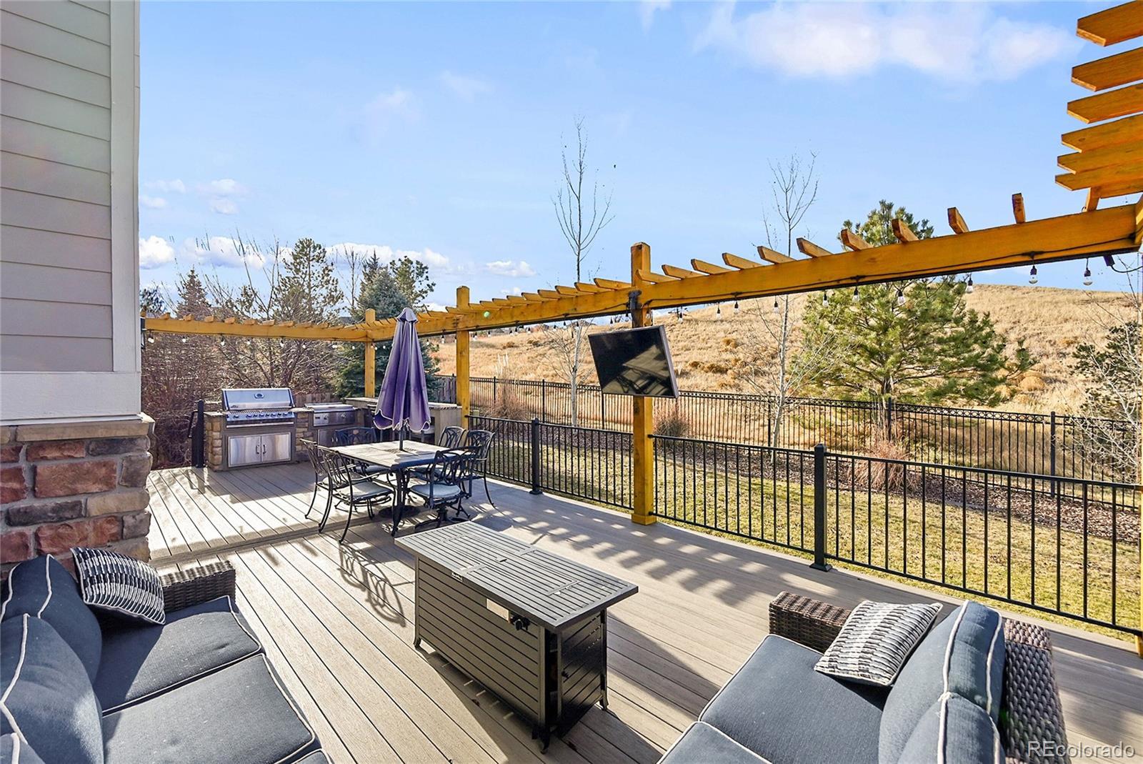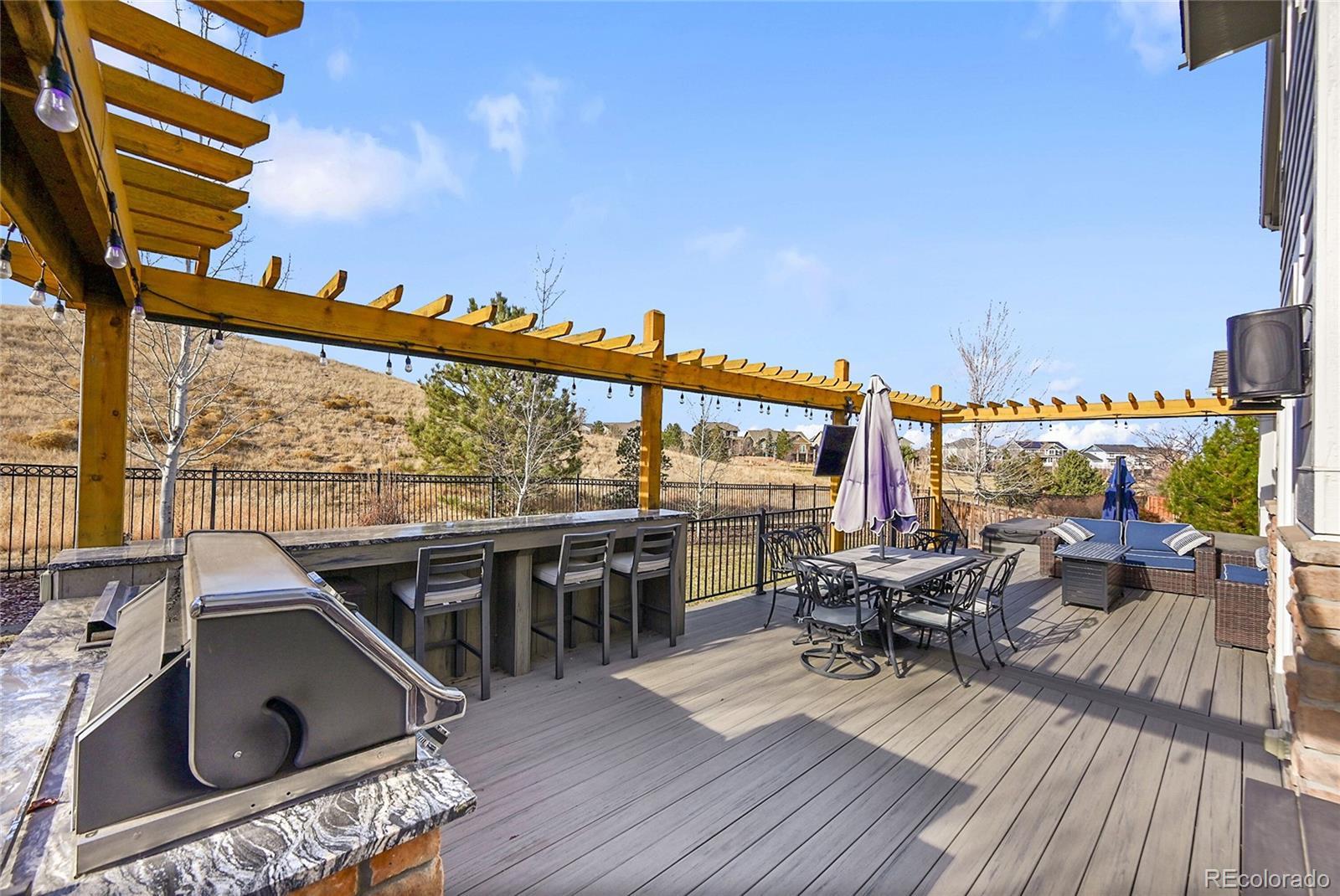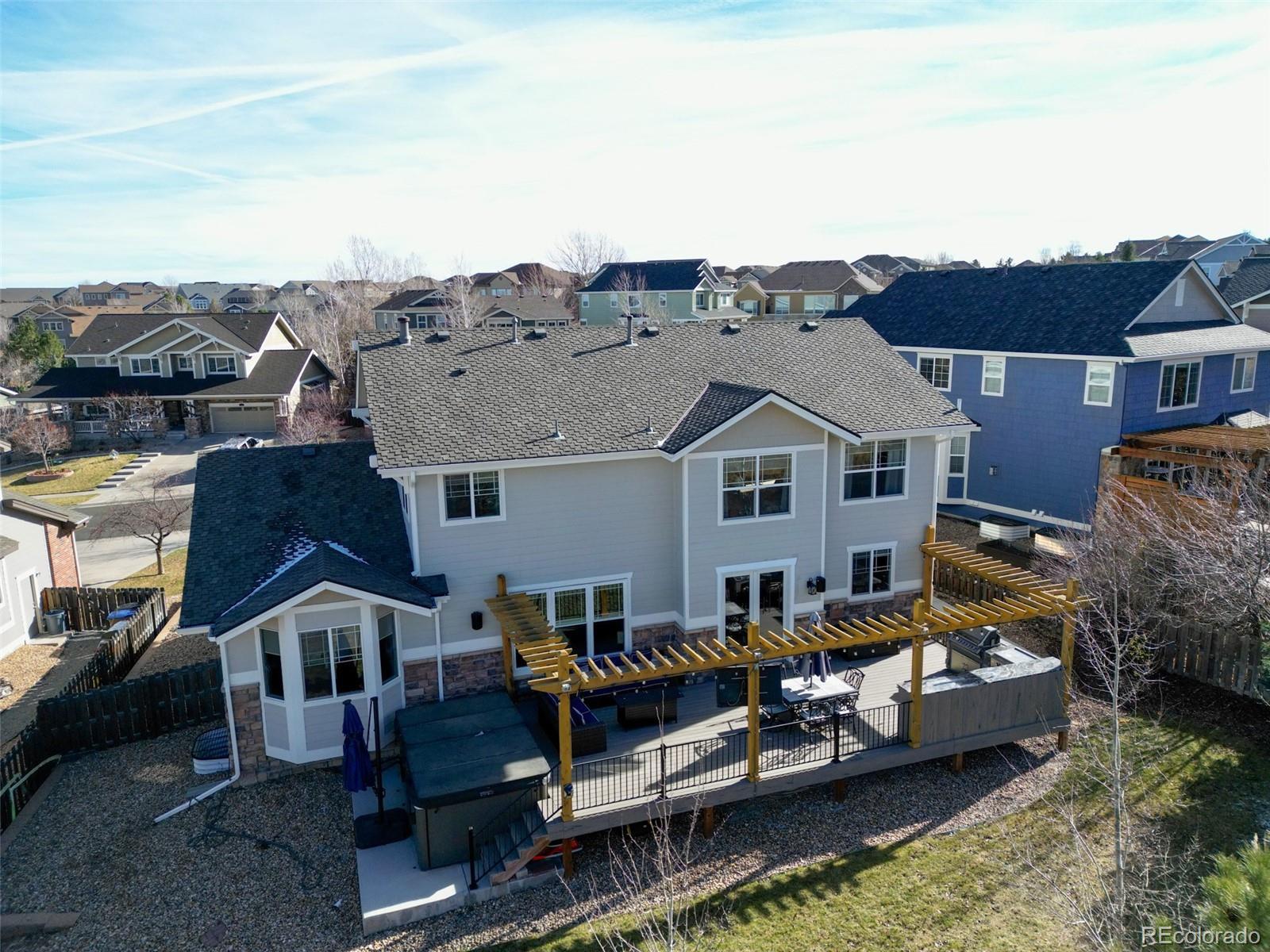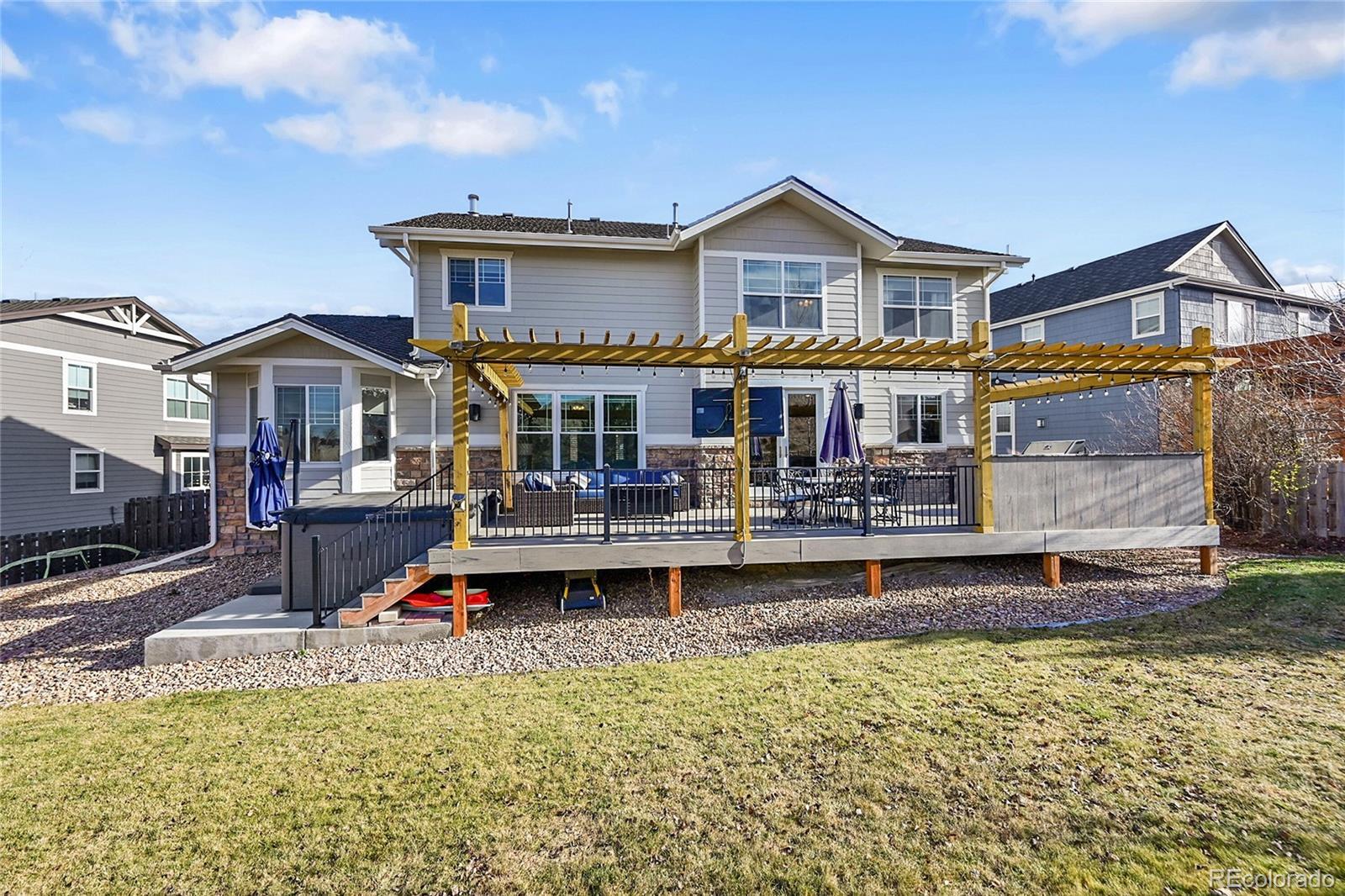Welcome to your dream home in the sought-after Beacon Point neighborhood! This stunning 2-story residence offers 5 spacious bedrooms, 4.5 bathrooms, and over 4,100 square feet of beautifully finished living space. The 3-car garage provides ample storage, while a custom-finished basement features an open rec room, wet bar, game room, and a guest bedroom with a full bath. The expansive primary suite includes a cozy sitting area and a luxurious 5-piece bath. Upstairs, you'll find three additional roomy bedrooms and two more full bathrooms. A private office with French doors and a dual-sided fireplace is perfect for working from home. The main level boasts beautiful hardwood floors, a mudroom, and a gourmet kitchen with stainless steel appliances, a large island, and a walk-in pantry. Enjoy meals in the formal dining room or casual breakfast nook. Outside, a custom deck with a pergola, outdoor kitchen, built-in gas grill, and swim spa offers a backyard retreat that backs to open space. Walk to Aurora Reservoir and the neighborhood pool and clubhouse. Welcome home!