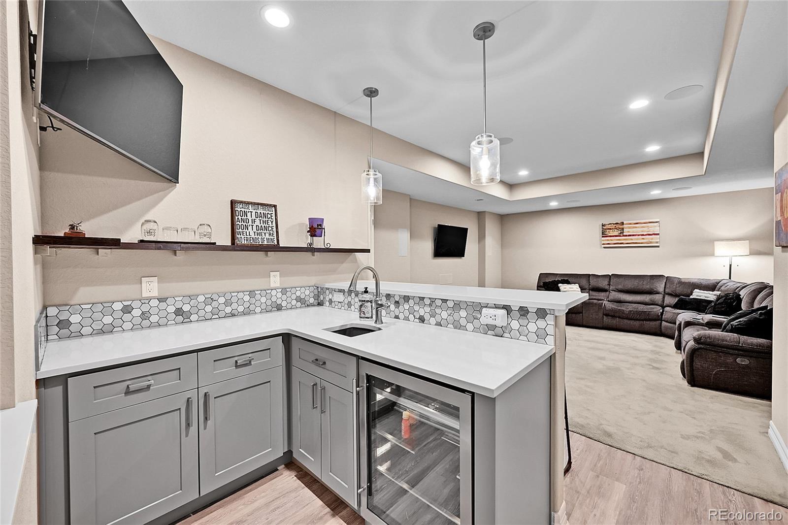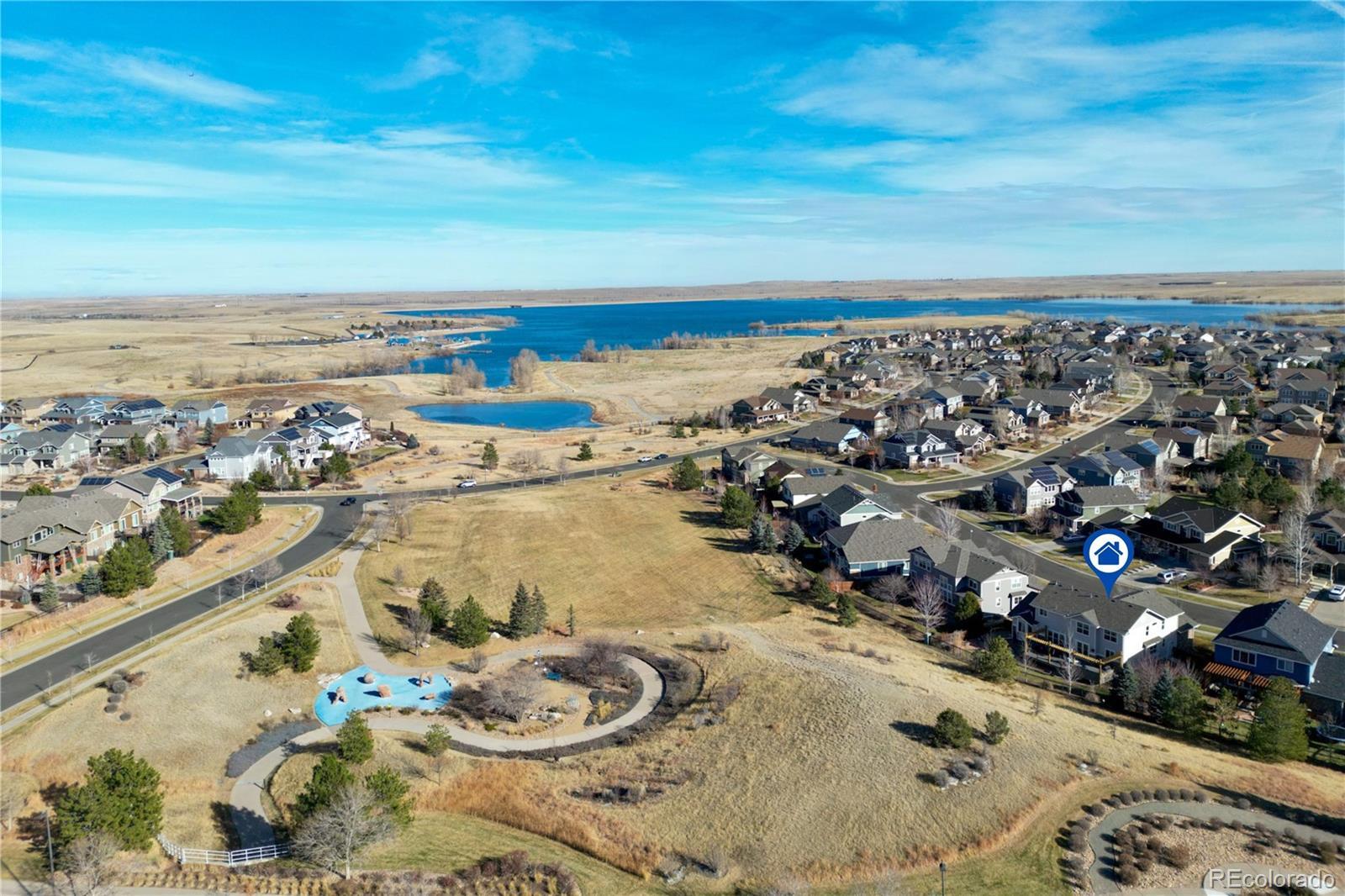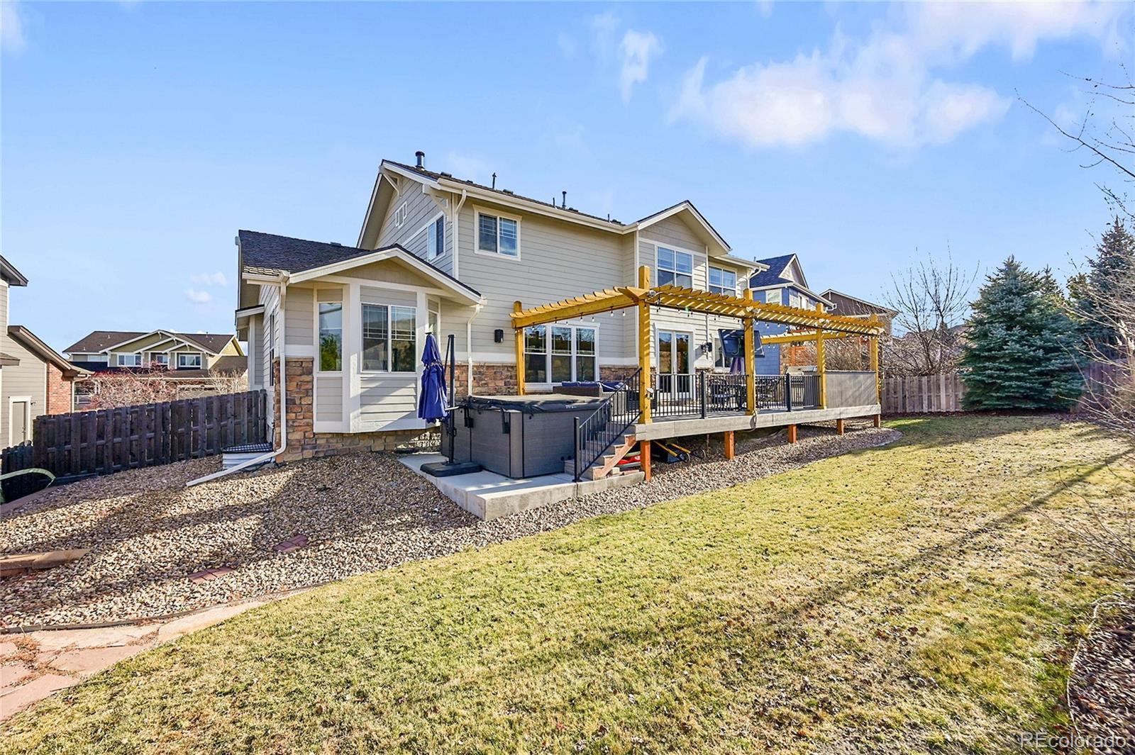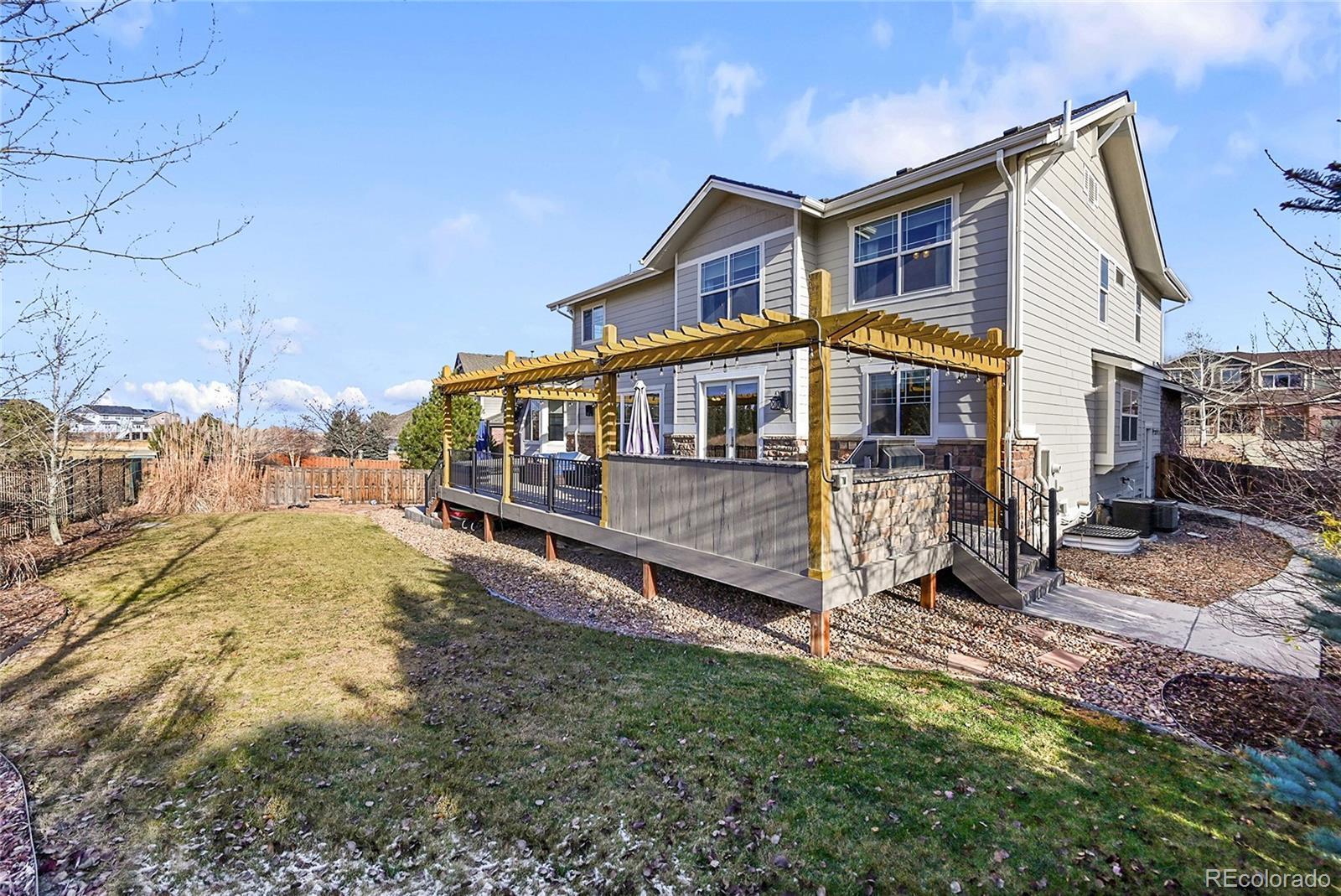 Welcome to your dream home in the sought-after Beacon Point neighborhood! This stunning 2-story residence offers 5 spacious bedrooms, 4.5 bathrooms, and over 4,100 square feet of beautifully finished living space. The 3-car garage provides ample storage, while a custom-finished basement features an open rec room, wet bar, game room, and a guest bedroom with a full bath. The expansive primary suite includes a cozy sitting area and a luxurious 5-piece bath. Upstairs, you'll find three additional roomy bedrooms and two more full bathrooms. A private office with French doors and a dual-sided fireplace is perfect for working from home. The main level boasts beautiful hardwood floors, a mudroom, and a gourmet kitchen with stainless steel appliances, a large island, and a walk-in pantry. Enjoy meals in the formal dining room or casual breakfast nook. Outside, a custom deck with a pergola, outdoor kitchen, built-in gas grill, and swim spa offers a backyard retreat that backs to open space. Walk to Aurora Reservoir and the neighborhood pool and clubhouse. Welcome home!