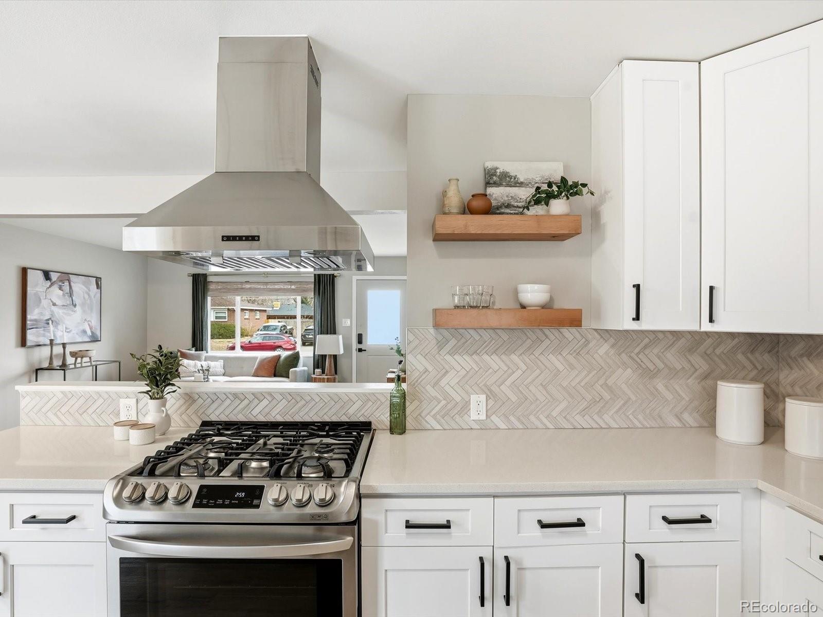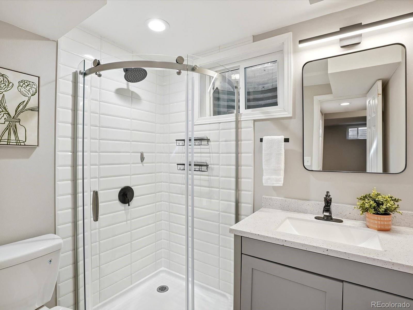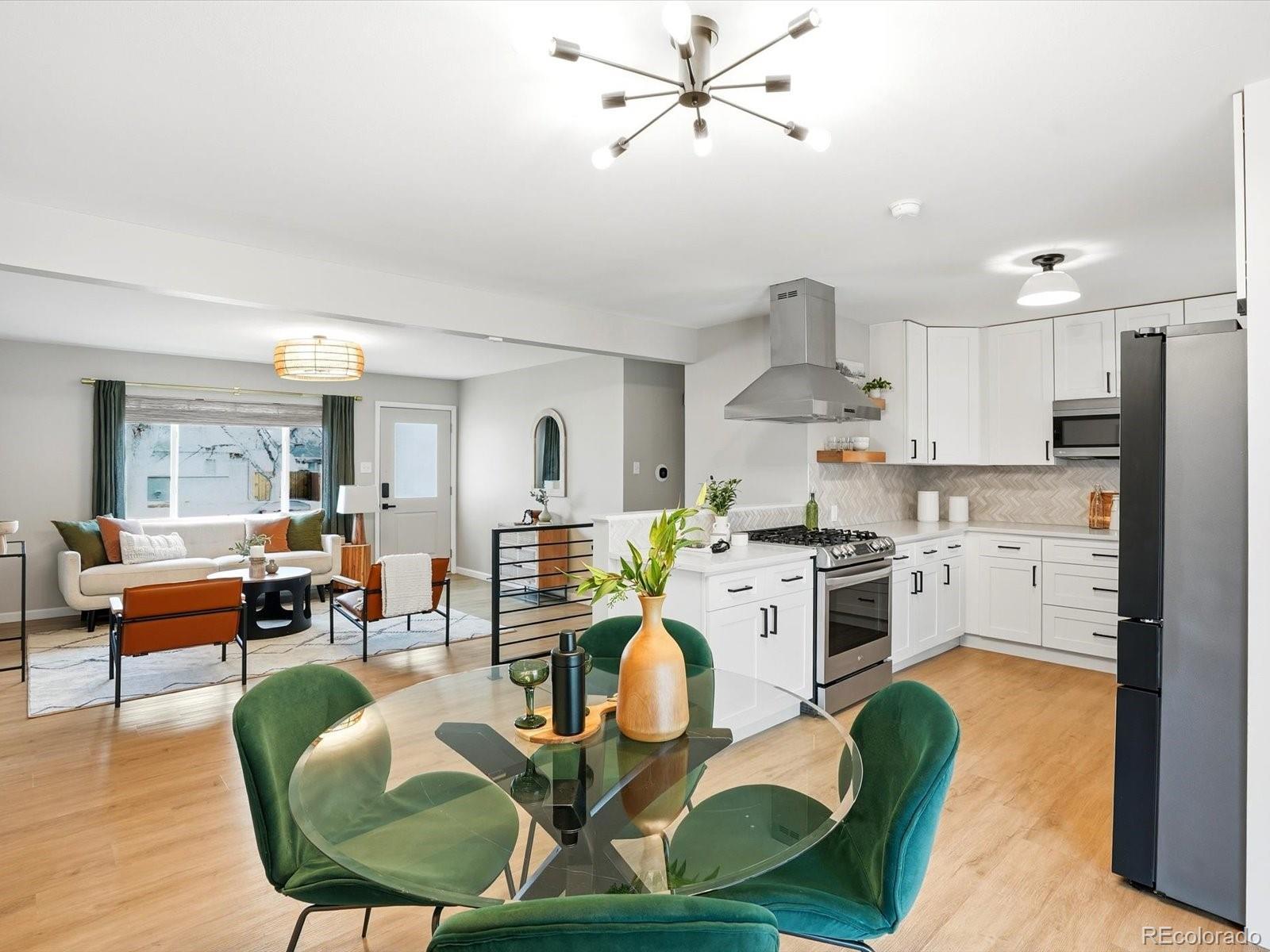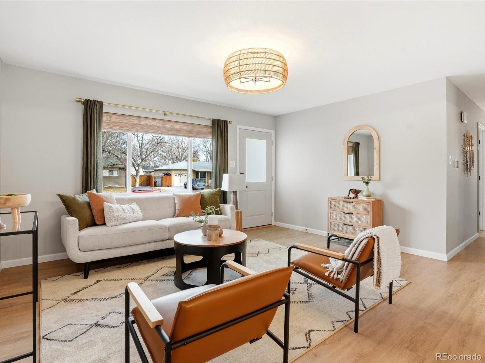 Move-in ready and completely remodeled, this spacious Arvada ranch delivers the perfect mix of modern updates, flexible living space, and truly exceptional garage storage - all just minutes from Olde Town Arvada and steps from outdoor recreation. The main level welcomes you with an open floor plan filled with natural light, beautiful hardwood floors throughout, and a functional layout designed for both everyday living and entertaining. The remodeled kitchen shines with quartz counters, tile backsplash, stainless steel appliances, gas stove with hood, smart fridge, floating shelves, and a spacious pantry. A formal dining area sits just off the kitchen for easy hosting. Three bedrooms and two updated bathrooms complete the main level, including a primary suite with a built-in closet system and updated ensuite ¾ bath. Downstairs, the fully renovated basement nearly doubles your living space with a massive great room, two additional bedrooms (including one non-conforming), an updated ¾ bath, large workshop and laundry room with utility sink, and abundant storage. Outside, enjoy a covered back porch, attached one-car garage, newer roof, and owned 11.34 kW solar panels. The true standout feature is the heated detached garage offering space for three vehicles plus an RV-height bay - an incredibly rare find in this area and perfect for car enthusiasts, hobbyists, or storing all your Colorado adventure gear. Located just a five-minute walk to Ralston Creek Trail and minutes from Olde Town Arvada’s restaurants, shops, breweries, the Apex Center, and Majestic View Park. Turnkey condition, an unbeatable location, and a rare garage setup make this home a standout!