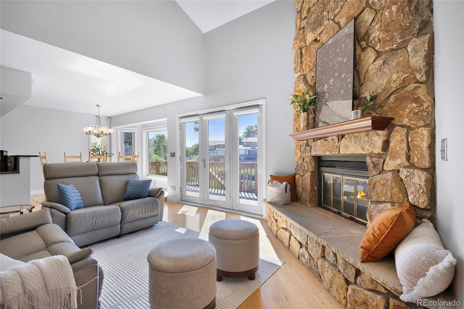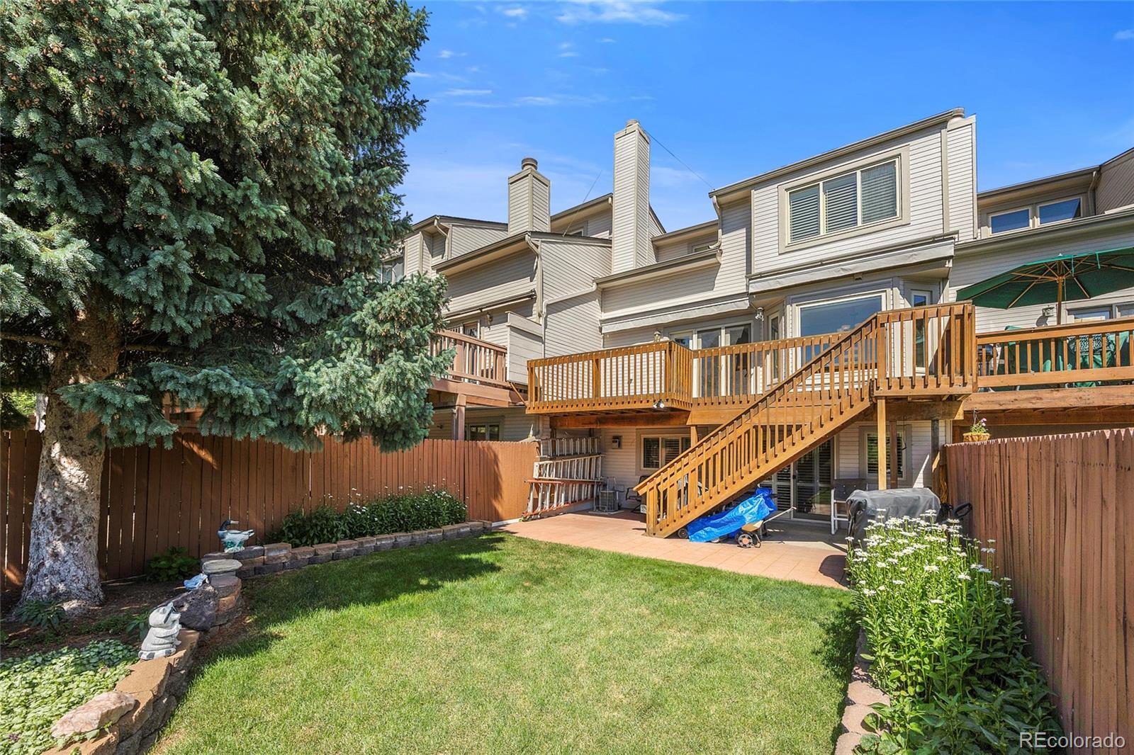 Welcome to this beautifully maintained townhome in high-demand Lakewood Hills—just minutes to Green Mountain Open Space, Light Rail, and 6th Ave West. With an open, airy layout and thoughtful updates throughout, this home offers both charm and modern comfort. The main level features hardwood floors and a spacious open floor plan connecting the living room, dining area, and kitchen. The vaulted living room is anchored by a floor-to-ceiling stone gas fireplace and filled with natural light from oversized windows and French doors opening to a wooden deck. Enjoy views of McIntyre Gulch and a fully fenced backyard with lawn, garden space, patio, and shade tree. The kitchen flows into the dining area and features a large breakfast bar—perfect for dining or entertaining. A main-level half bath, office, and interior access to the attached two-car garage add convenience. Upstairs, two vaulted-ceiling primary suites offer comfort and privacy. The larger suite has a walk-in closet, double sinks, generous vanity, separate water closet, walk-in shower with built-in bench, and custom floor-to-ceiling built-ins. The second suite includes a walk-in closet, window seat, and ensuite bath with tub/shower combo. The walk-out basement adds versatility with new carpet, a second half bath, a wet bar, and direct backyard access—ideal for a home office, guest retreat, or extra living space. Pride of ownership shows in new paint, new carpet, newer windows and water heater, new electrical panel, and Hunter Douglas shutters. HVAC systems have been cleaned, serviced, and certified. The HOA maintains the pool, resurfaced tennis & pickleball courts, snow removal, trash, and exterior upkeep. With unbeatable access to the mountains, downtown Denver, Union Park, local restaurants, shops, and everyday conveniences, this home is a true Lakewood gem! Back on the market after a previous contingent sale didn’t close—through no fault of the seller, offering you a fresh opportunity!