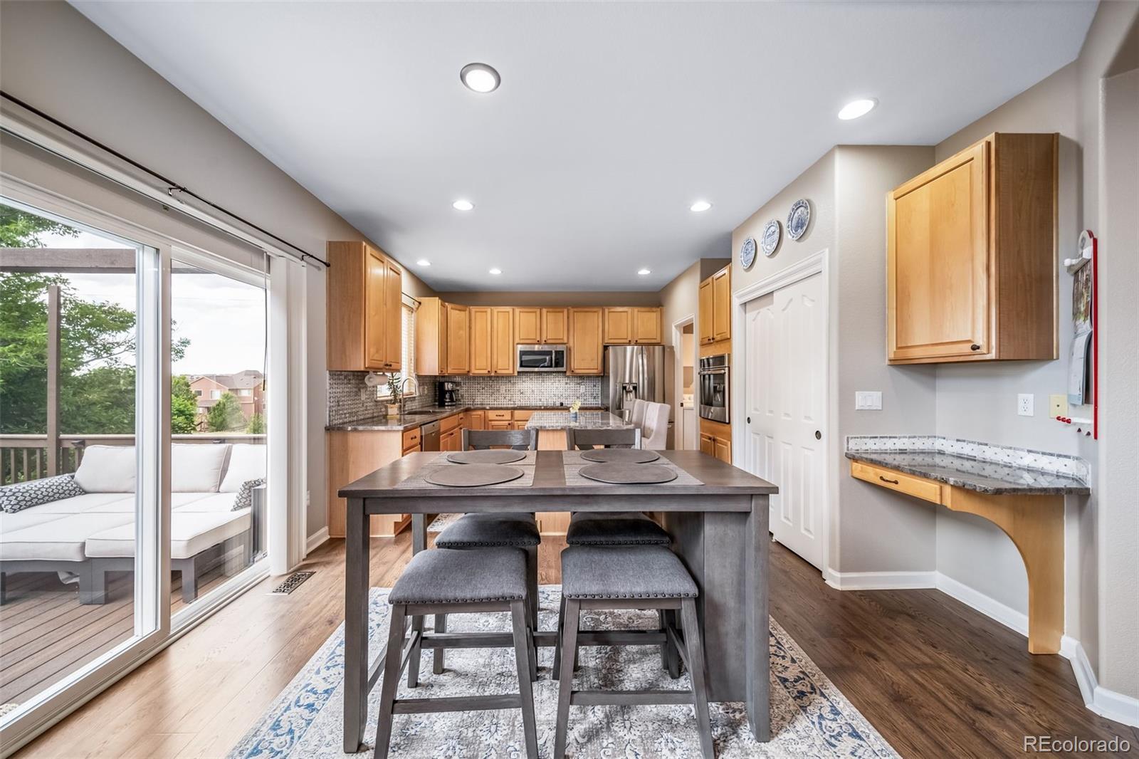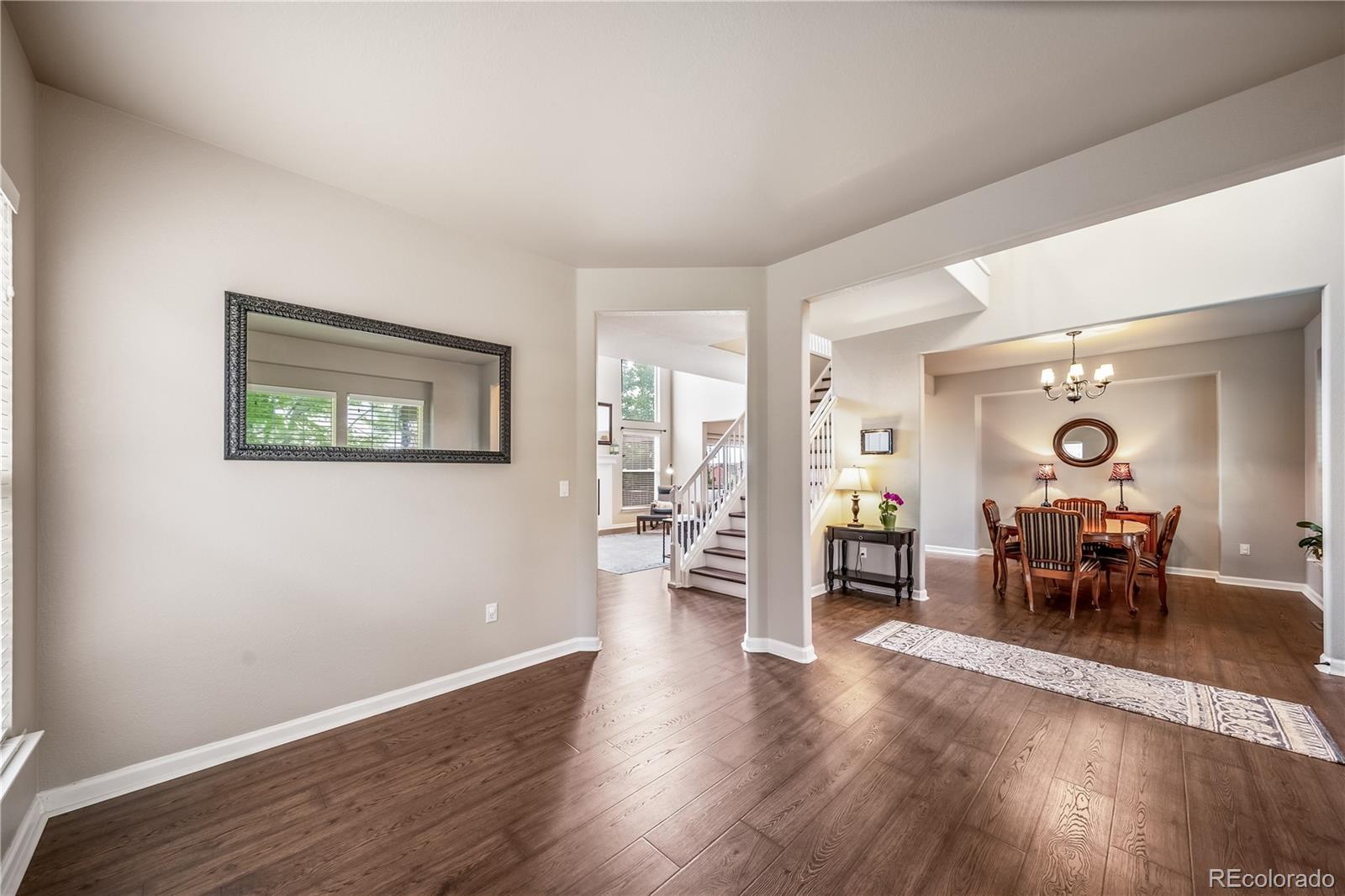Back on the market through no fault of the sellers. Tucked at the end of a quiet cul-de-sac in the heart of Parker’s Hidden River, this warm and welcoming 2-story home feels like the place where everyday moments turn into memories. From the moment you step inside, soaring ceilings and abundant natural light invite you in, offering space to gather, connect, or simply unwind after a long day. Upstairs, four comfortable bedrooms provide plenty of room for everyone, including a peaceful primary suite with its own 5-piece bath, dual sinks, soaking tub, walk-in shower, and spacious walk-in closet. Secondary bedrooms sit just across the hall for added privacy, one with its own walk-in closet and a shared full bath—perfect for guests, siblings, or extra storage. The main level offers a thoughtful blend of formal and casual spaces. Host holidays in the dedicated living and dining rooms, curl up by the fire in the cozy family room, or enjoy coffee in the sunny breakfast nook overlooking the backyard. The kitchen sits at the heart of the home with an island that welcomes homework, meal prep, or late-night conversations. A main-floor bedroom allows for an office or easily shifts into a guest room or play space. The finished walkout basement adds even more room to spread out, complete with a bar area, a bedroom, a flex room currently used as a gym, and direct access to a private backyard retreat. Mature trees and no neighbors behind create a peaceful setting for quiet mornings, summer cookouts, or evening gatherings under the stars. Beautifully updated in recent years; including a Trex deck, exterior paint, newer carpet and engineered wood floors, plus newer AC/furnace and electrical panel. This home is move-in ready and waiting for its next chapter. Community parks, trails, a clubhouse, pool, shopping, dining, schools, and Mainstreet Parker are just minutes away!
