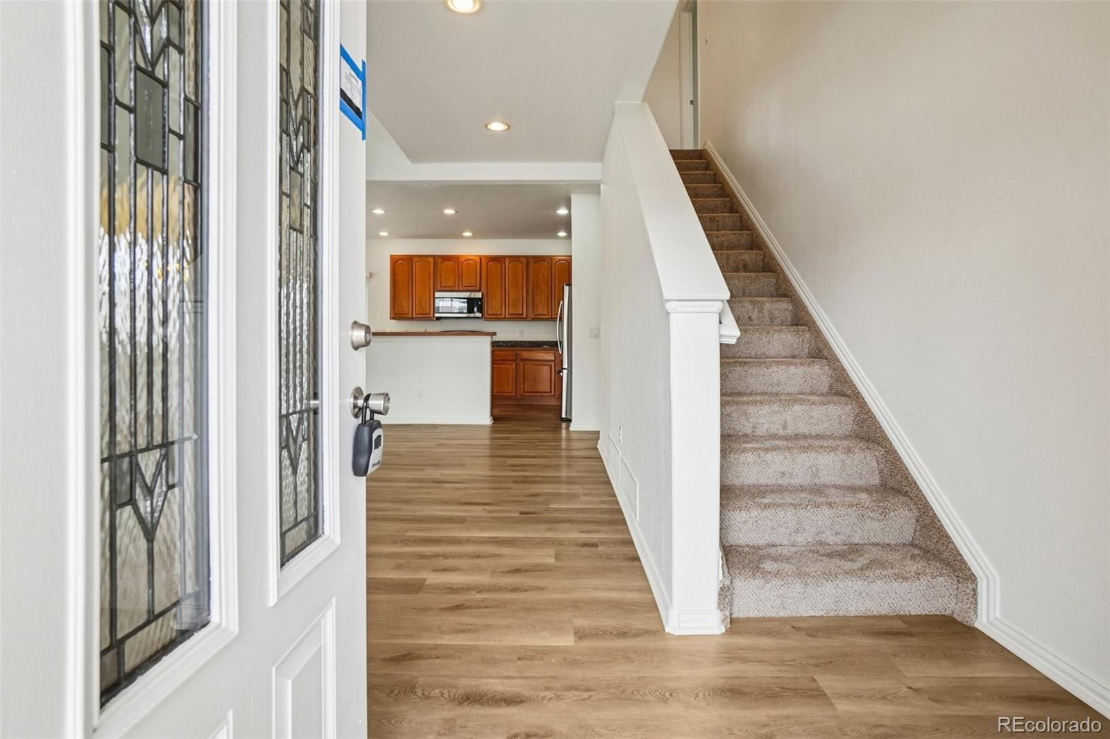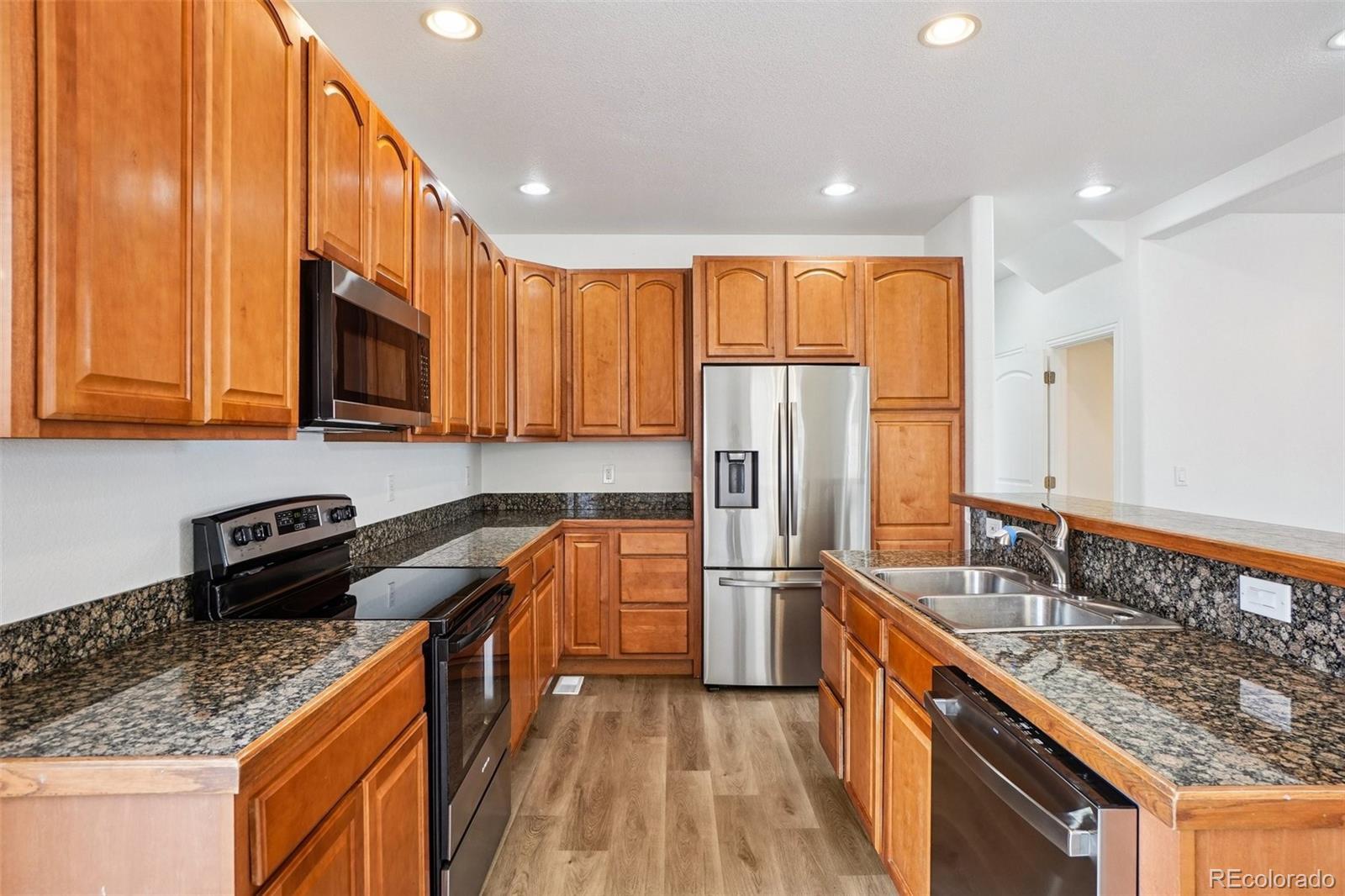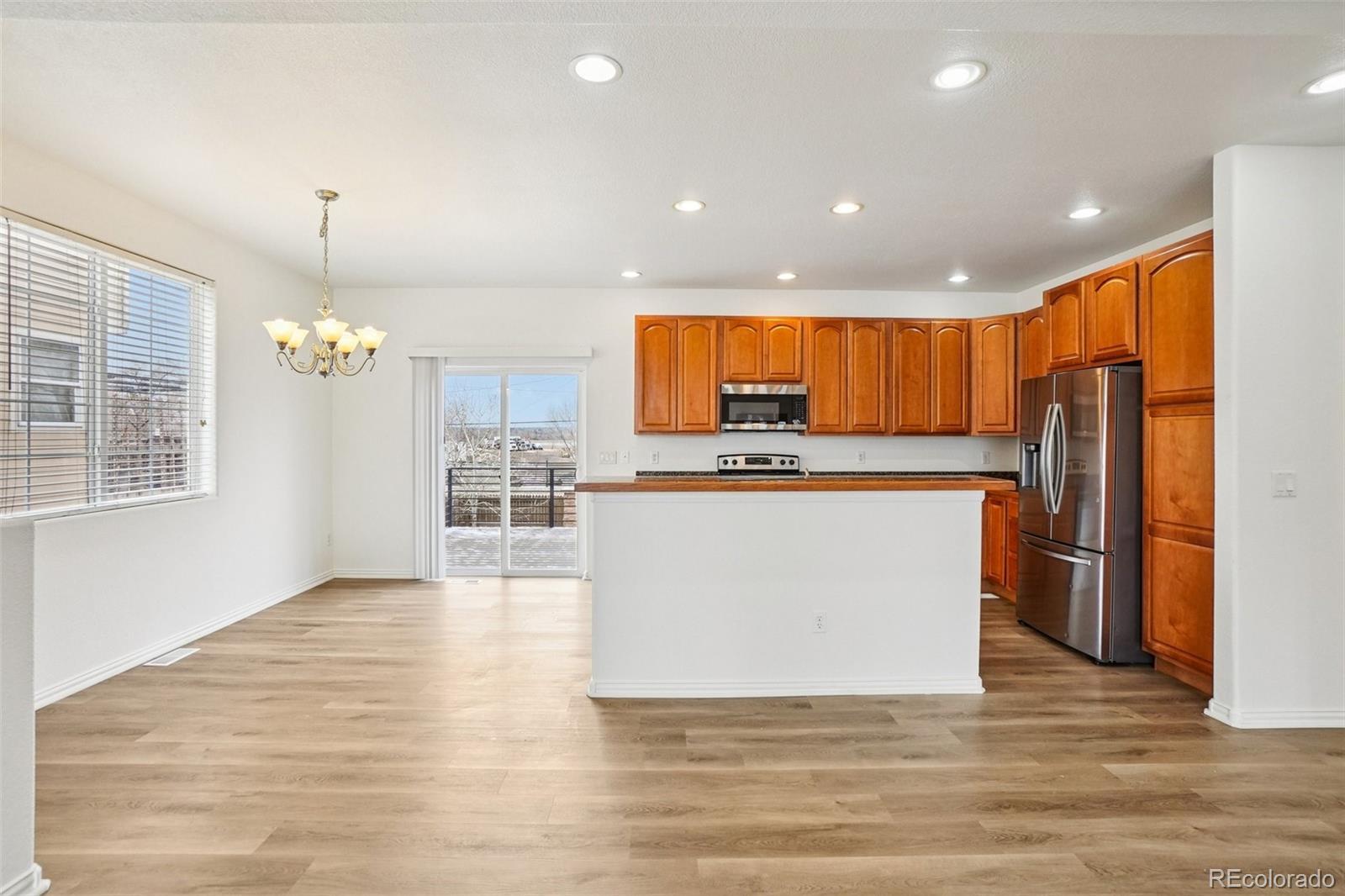 This lovingly maintained custom-built home has been cherished since the day it was constructed. Tucked away on a quiet cul-de-sac with no HOA, the property offers a peaceful, rural feel enhanced by mature trees and gently rolling landscape. Upon entry, you’re welcomed by a bright, open floor plan with vaulted ceilings and expansive windows that flood the home with natural light. The kitchen features abundant cabinetry, stainless steel appliances, and an adjacent dining area—designed for both functionality and everyday living. Beautiful vinyl plank flooring floors extend throughout the main level, office, and upper hallway. The thoughtfully designed bedroom layout includes bedrooms separated by a shared bathroom, offering privacy and convenience. The upstairs primary suite boasts a walk-in closet and a private en-suite bath complete with a jetted tub and double doors for added privacy. Additional highlights include ample storage throughout, a spacious main-floor office, and a finished basement with an open layout, bathroom, and wet bar—ideal for entertaining. Ideally located near shopping, golf courses, Riverdale Regional Park, and the Platte River Trail, with easy access to Hwy 2 and Hwy 85. Downtown Denver is just minutes away, and DIA is only 12 miles away.