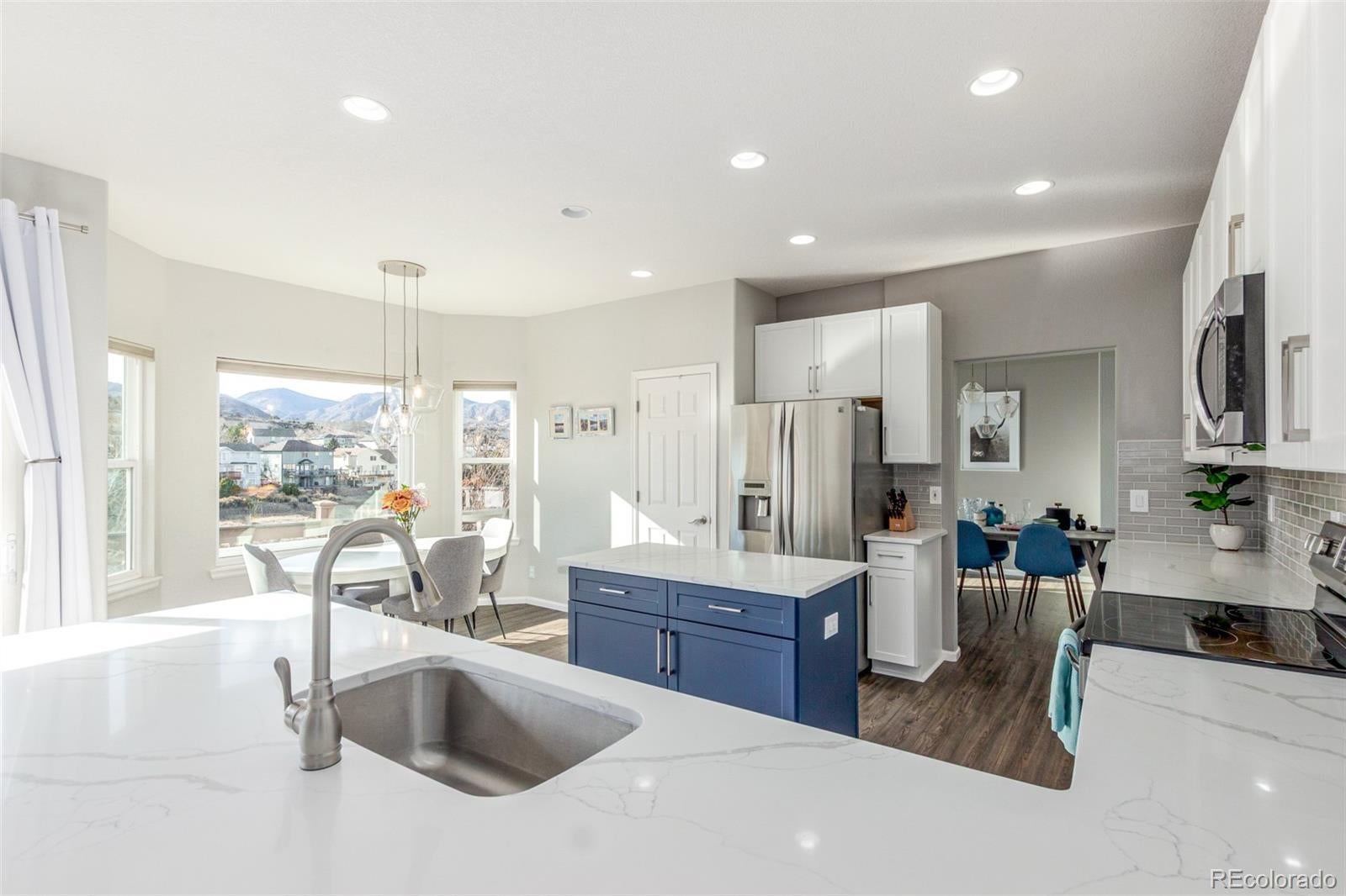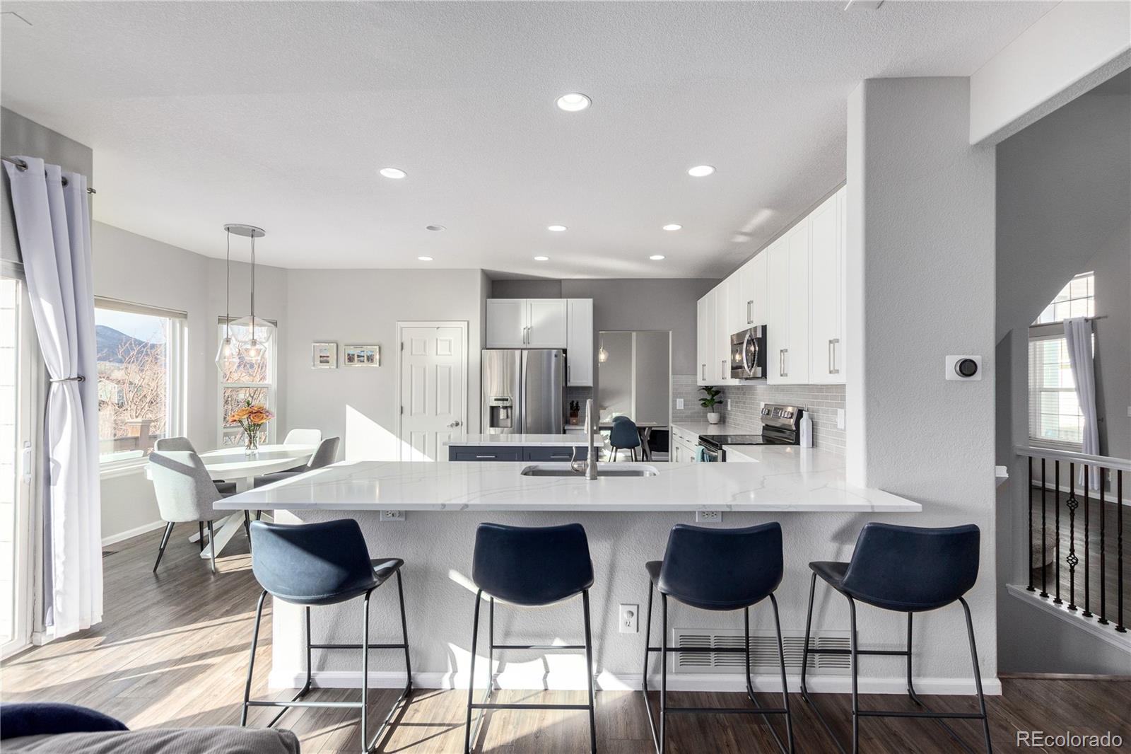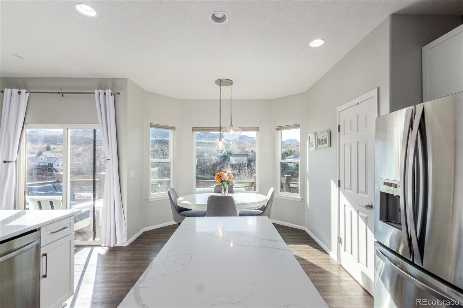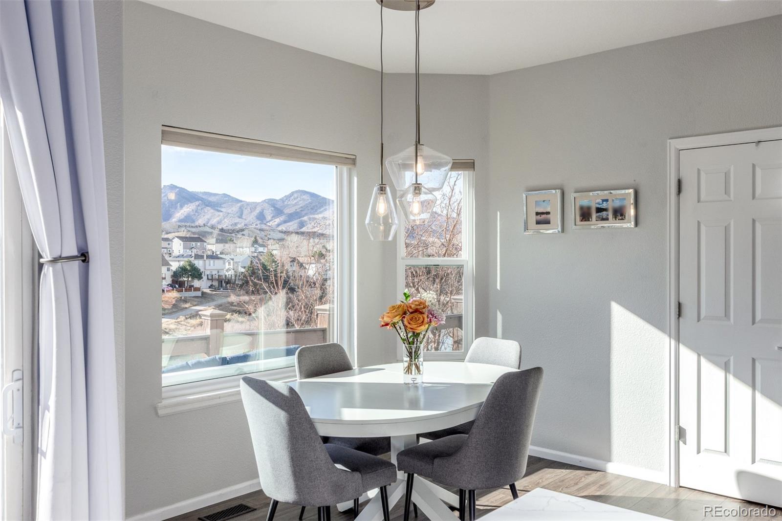Look no further! This wonderful 6 bed, 4 bath property nestled in the best cul-de-sac Roxborough has to offer is the one for you! A stunning facade w/stone accents, 3 car garage, and a welcoming front porch are just the beginning. Inside you will find a formal dining room and living area w/soaring ceilings, luxury vinyl flooring (with beautiful cherry hardwoods, underneath in case you're wondering), modern light fixtures, and neutral palette throughout. Continue into the cozy family room, showcasing a fireplace to keep you warm & cozy. Prepare delicious meals in this gourmet kitchen, equipped w/shaker cabinetry, a pantry, quartz counters, tile backsplash, stainless steel appliances, a peninsula with a breakfast bar, a breakfast nook and how about the most absolutely stunning views? You will never cook the same way again! The grand primary suite boasts plush carpet, a walk-in closet, a 5 piece bath w/dual sinks plus a garden tub and did I mention the breathtaking views? Upstairs, you’ll also find three additional generously sized bedrooms. The bedroom on the main level features elegant French doors and can be used as a den or office. Head downstairs into the basement and discover a large bonus room w/a second kitchen, an additional bedroom, bathroom, and walk-out access to... You guessed it! More striking views. You won't want to spend your time anywhere else w/a covered patio, a lovely deck, and a flagstone seating area, this home is a dream come true! This home features one of the largest and most sought after lots in the neighborhood. Don't miss out!