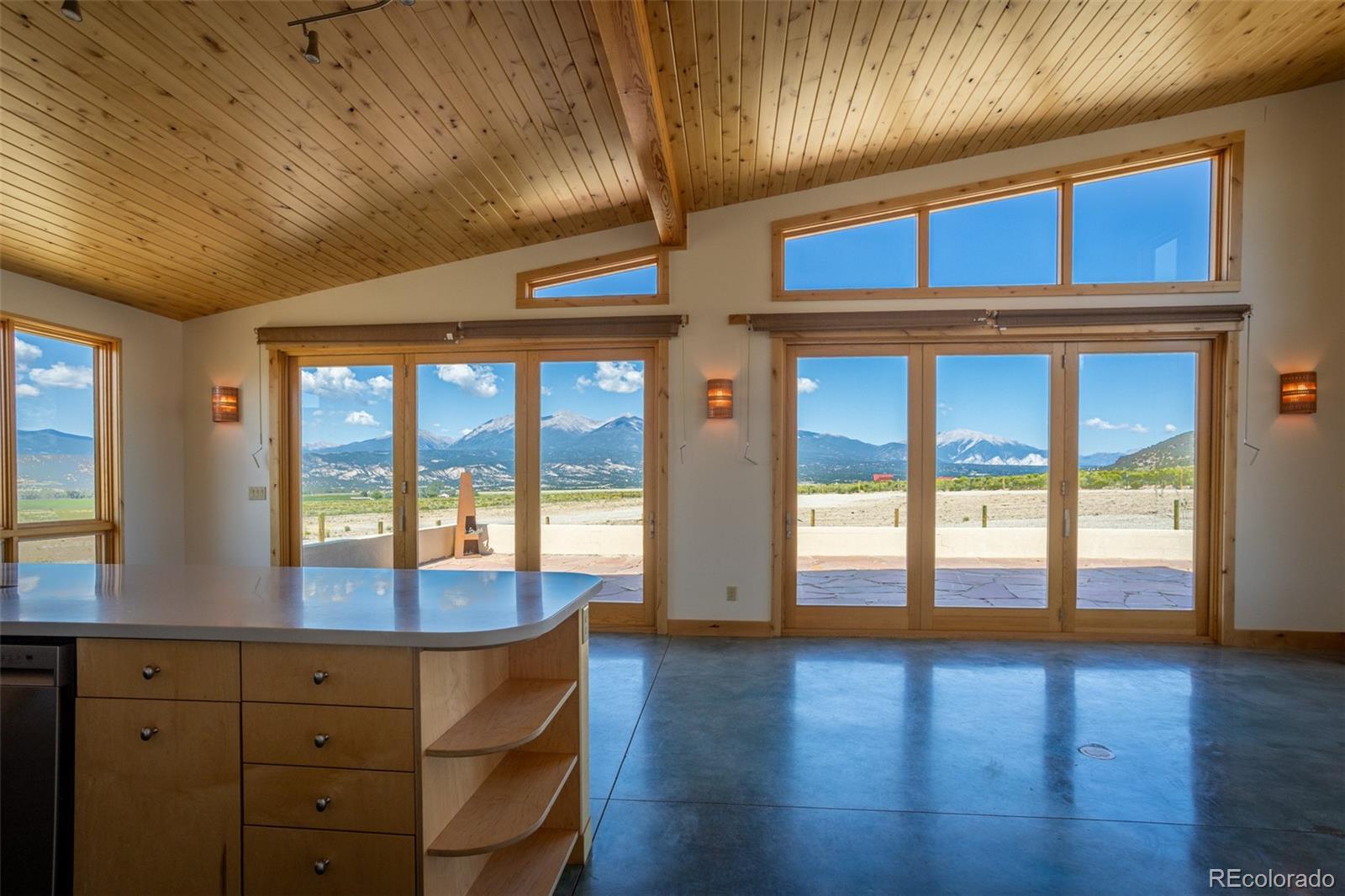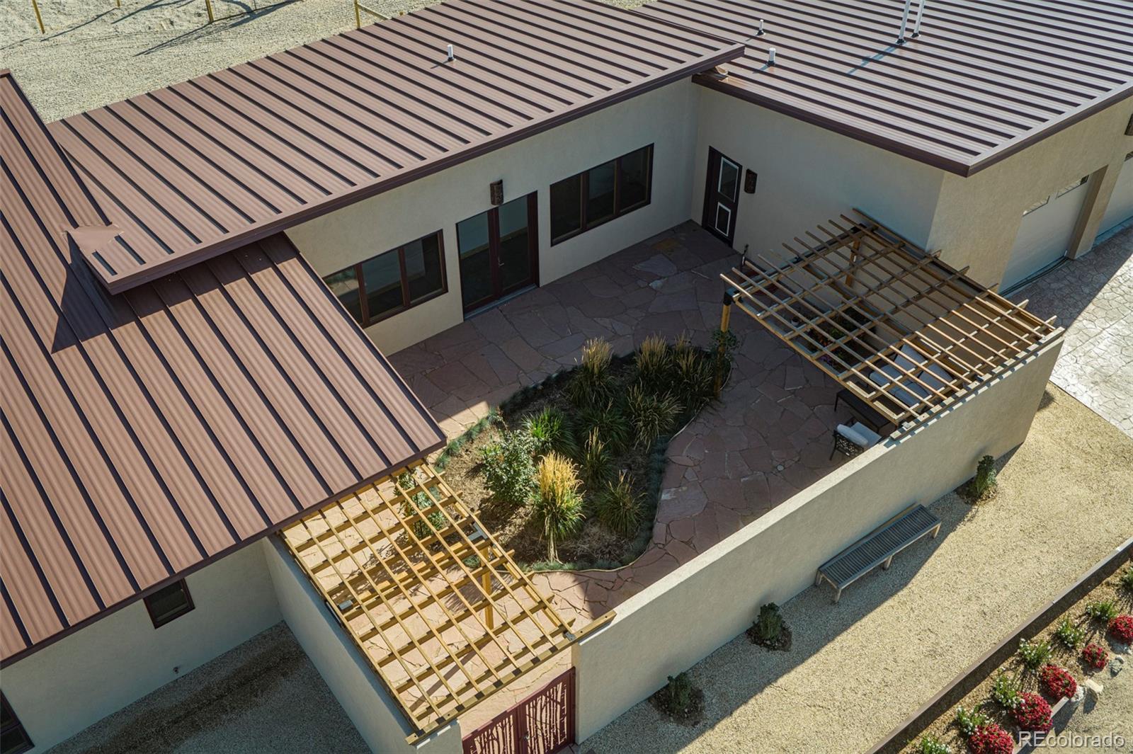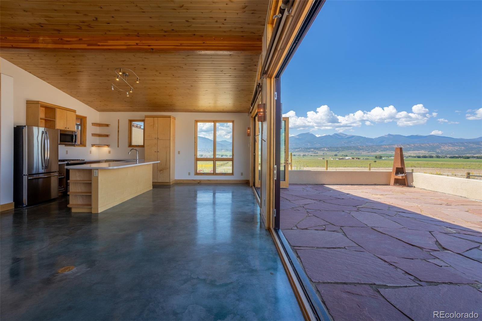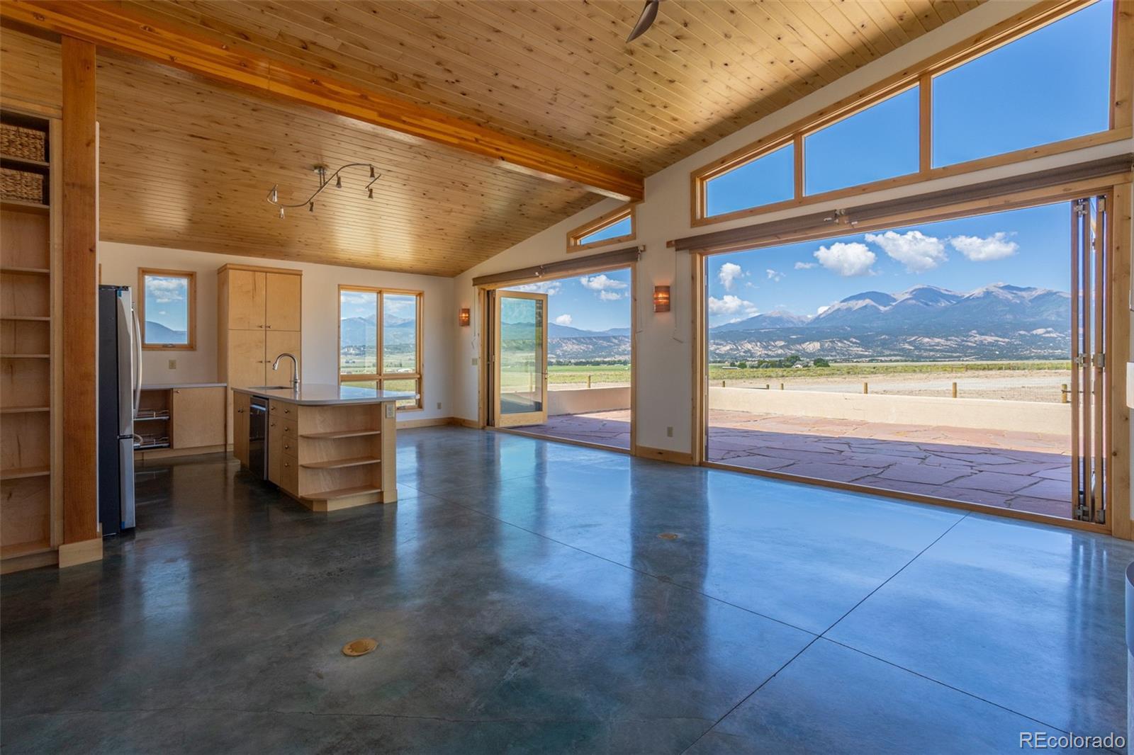 This modern, open-concept home, built in 2019, spans 1,748sf, featuring 2 bedrooms, 2 bathrooms, a modern kitchen with a clean and functional design and a large island, an oversized 2 car garage, a laundry room with a utility sink, and amazing outdoor spaces. Large windows and tri-fold glass patio doors open to panoramic views of the surrounding mountains and create an amazing indoor/outdoor experience when opened, effectively bringing the outdoors in. Polished concrete floors provide a clean, modern touch. A freestanding pellet stove adds to the comfortable feel of the home and supplements the in-floor radiant heat. Outside living space includes a large wraparound patio to enjoy the open space and mountain views and an enclosed south-side patio with pergolas providing shade and privacy. The 40 acre property is livestock ready with a two stall loafing shed with large tack room and hay storage, hydrant and automatic waterer, turnout stalls, a large 300ft x 500ft paddock, and an out-door arena (approximately 100ft x 263 ft), all constructed of steel posts and piping. A domestic well allows for watering livestock and up to an acre of lawn and garden. Bordered on two sides by BLM land the location offers plenty of open space, quiet, star-filled night skies, and direct access to public land for endless hiking, biking, or horseback riding. Downtown Salida, Colorado's largest National Historic District, is less than 6 miles away for shopping, dining, medical services, and other amenities. Arkansas River access is five miles from the property and Monarch Mountain Ski Area is only 26 miles away. There are minor covenants/deed restrictions but there is no home owner's association of dues associated with the property.