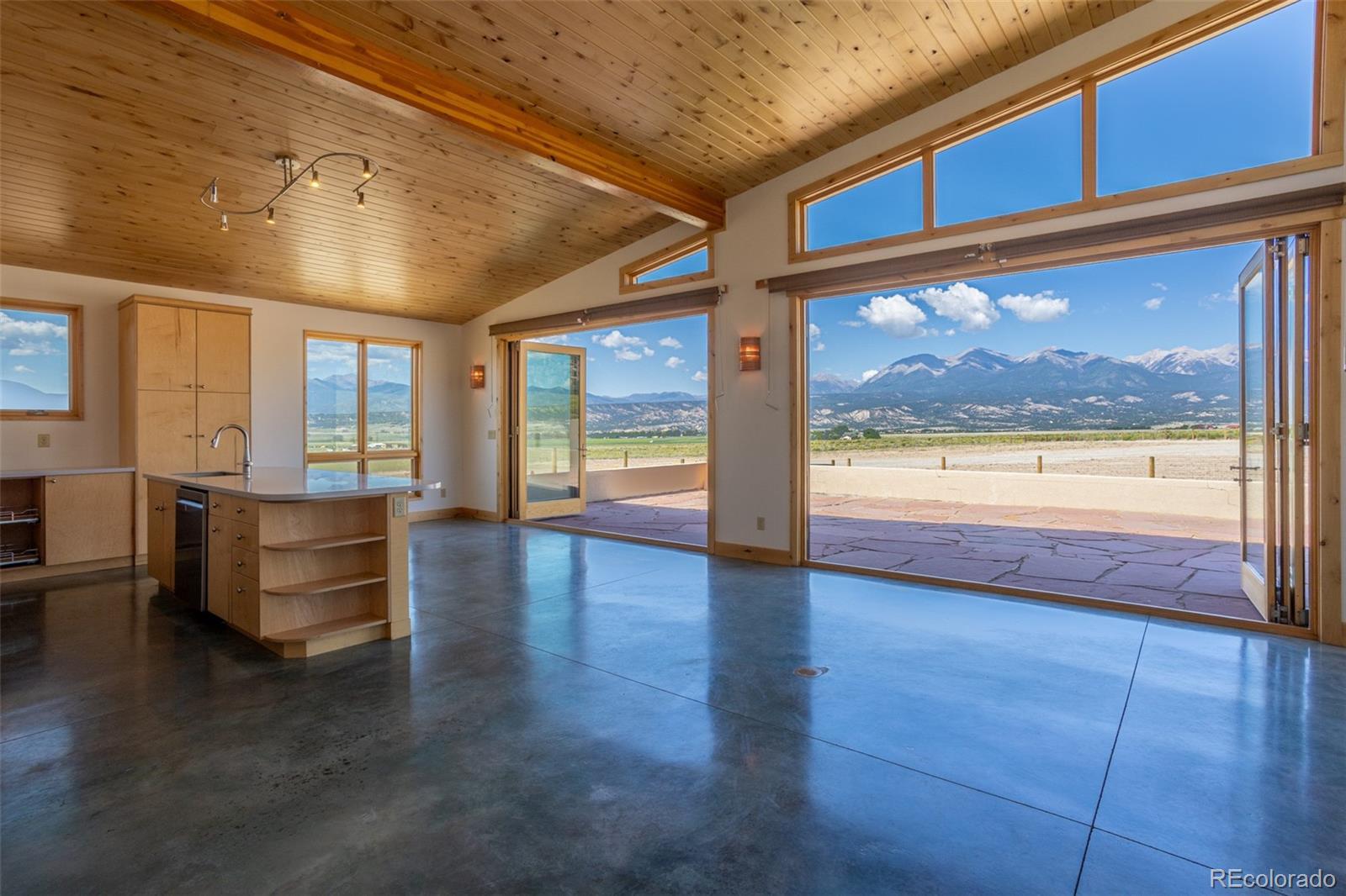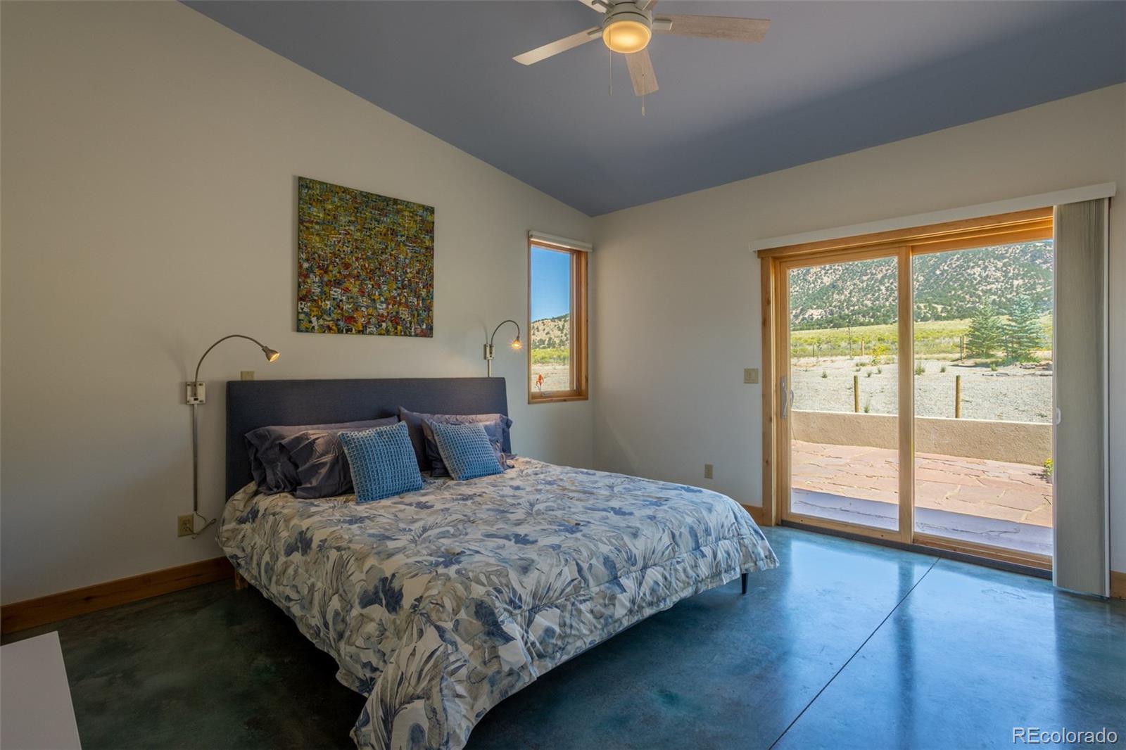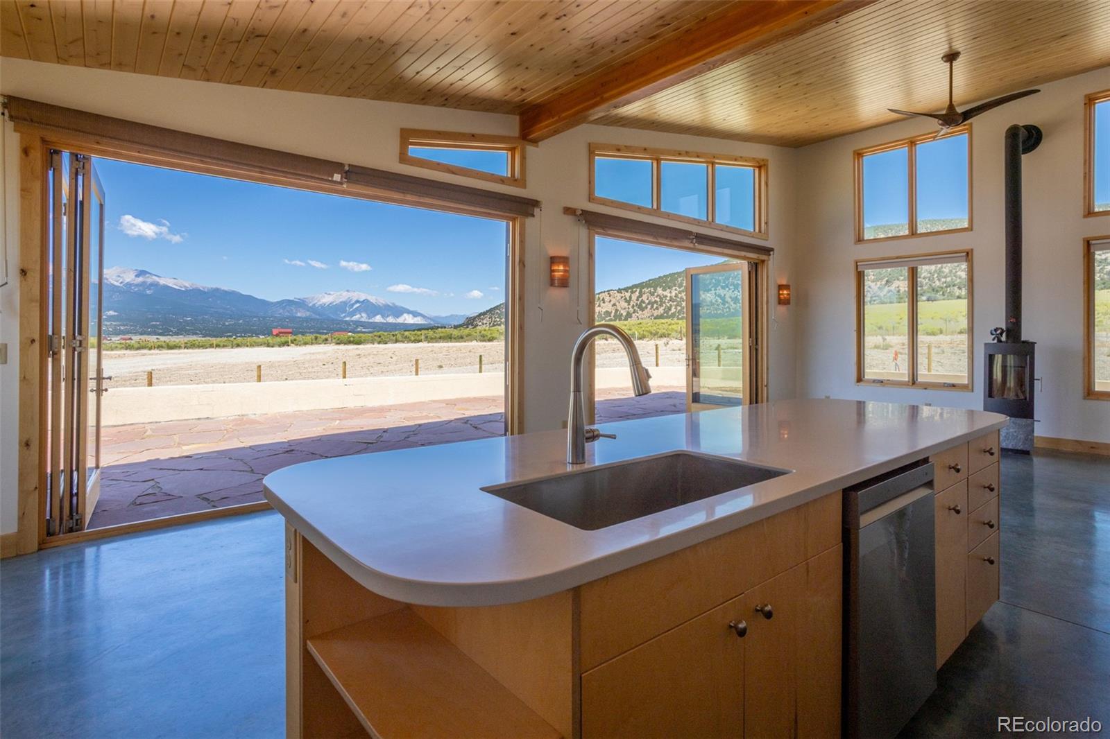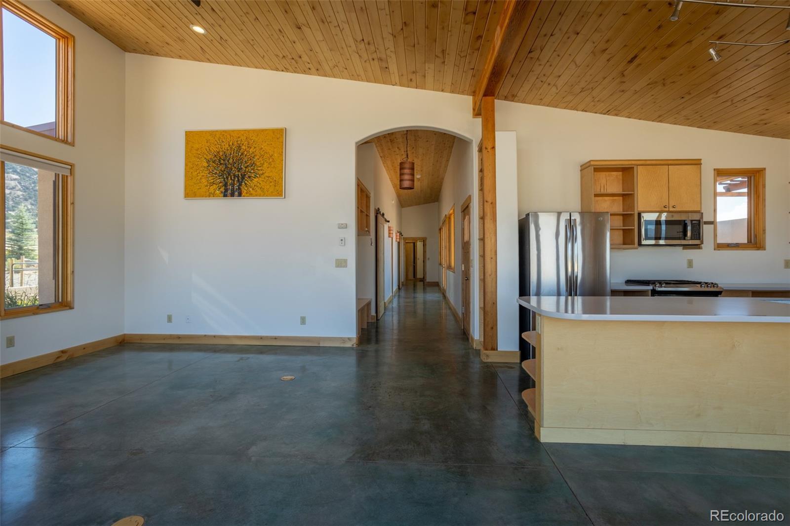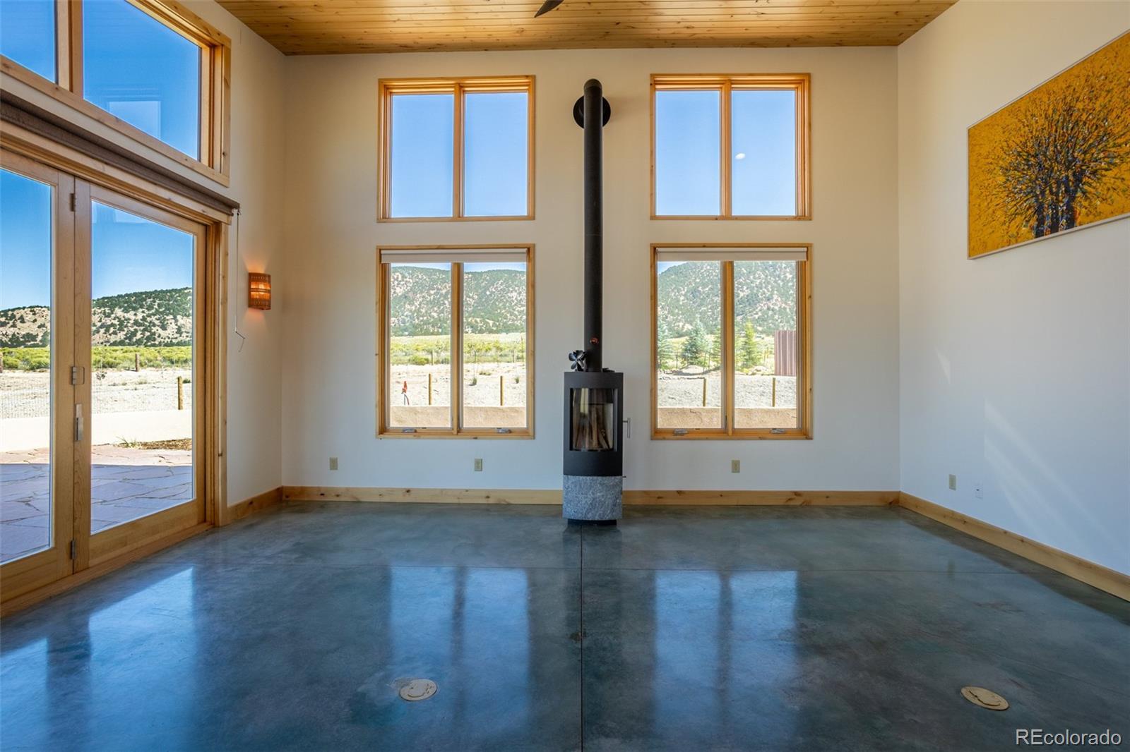 This modern, open-concept home, built in 2019, spans 1,748sf, featuring 2 bedrooms, 2 bathrooms, a modern kitchen with a clean and functional design and a large island, an oversized 2 car garage, a laundry room with a utility sink, and amazing outdoor spaces. Large windows and tri-fold glass patio doors open to panoramic views of the surrounding mountains and create an amazing indoor/outdoor experience when opened, effectively bringing the outdoors in. Polished concrete floors provide a clean, modern touch. A freestanding pellet stove adds to the comfortable feel of the home and supplements the in-floor radiant heat. Outside living space includes a large wraparound patio to enjoy the open space and mountain views and an enclosed south-side patio with pergolas providing shade and privacy. The 40 acre property is livestock ready with a two stall loafing shed with large tack room and hay storage, hydrant and automatic waterer, turnout stalls, a large 300ft x 500ft paddock, and an out-door arena (approximately 100ft x 263 ft), all constructed of steel posts and piping. A domestic well allows for watering livestock and up to an acre of lawn and garden. Bordered on two sides by BLM land the location offers plenty of open space, quiet, star-filled night skies, and direct access to public land for endless hiking, biking, or horseback riding. Downtown Salida, Colorado's largest National Historic District, is less than 6 miles away for shopping, dining, medical services, and other amenities. Arkansas River access is five miles from the property and Monarch Mountain Ski Area is only 26 miles away. There are minor covenants/deed restrictions but there is no home owner's association of dues associated with the property.