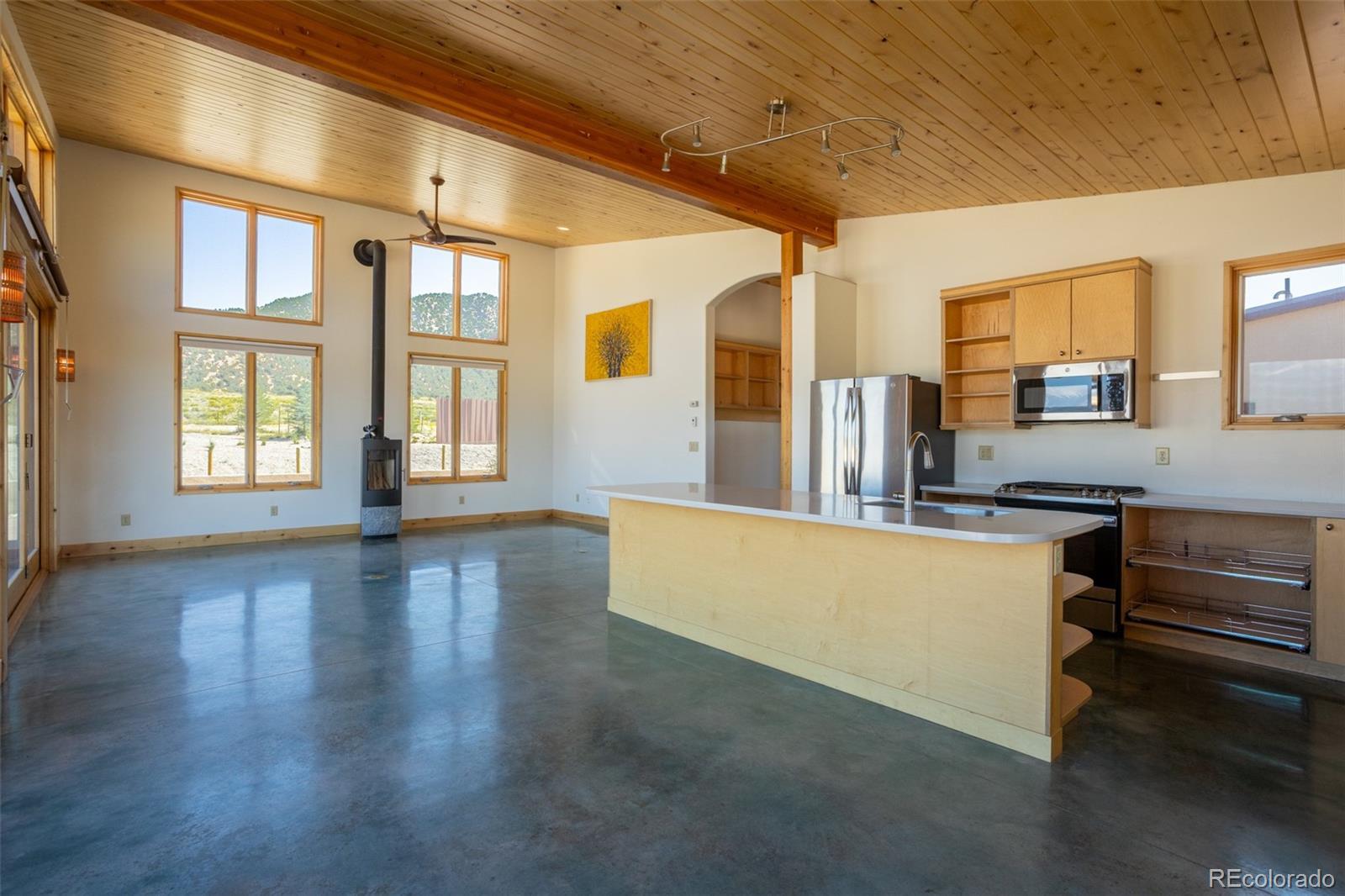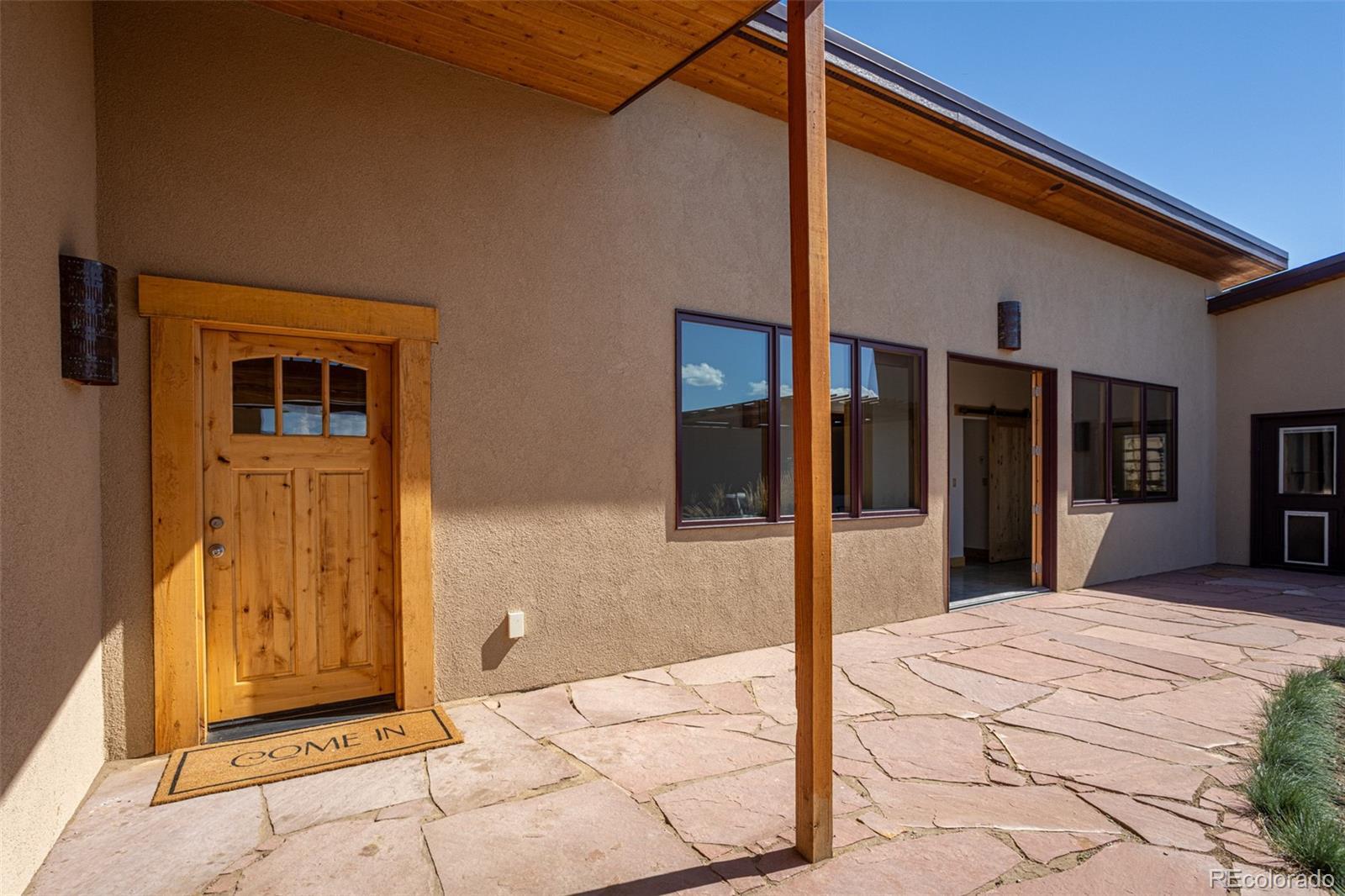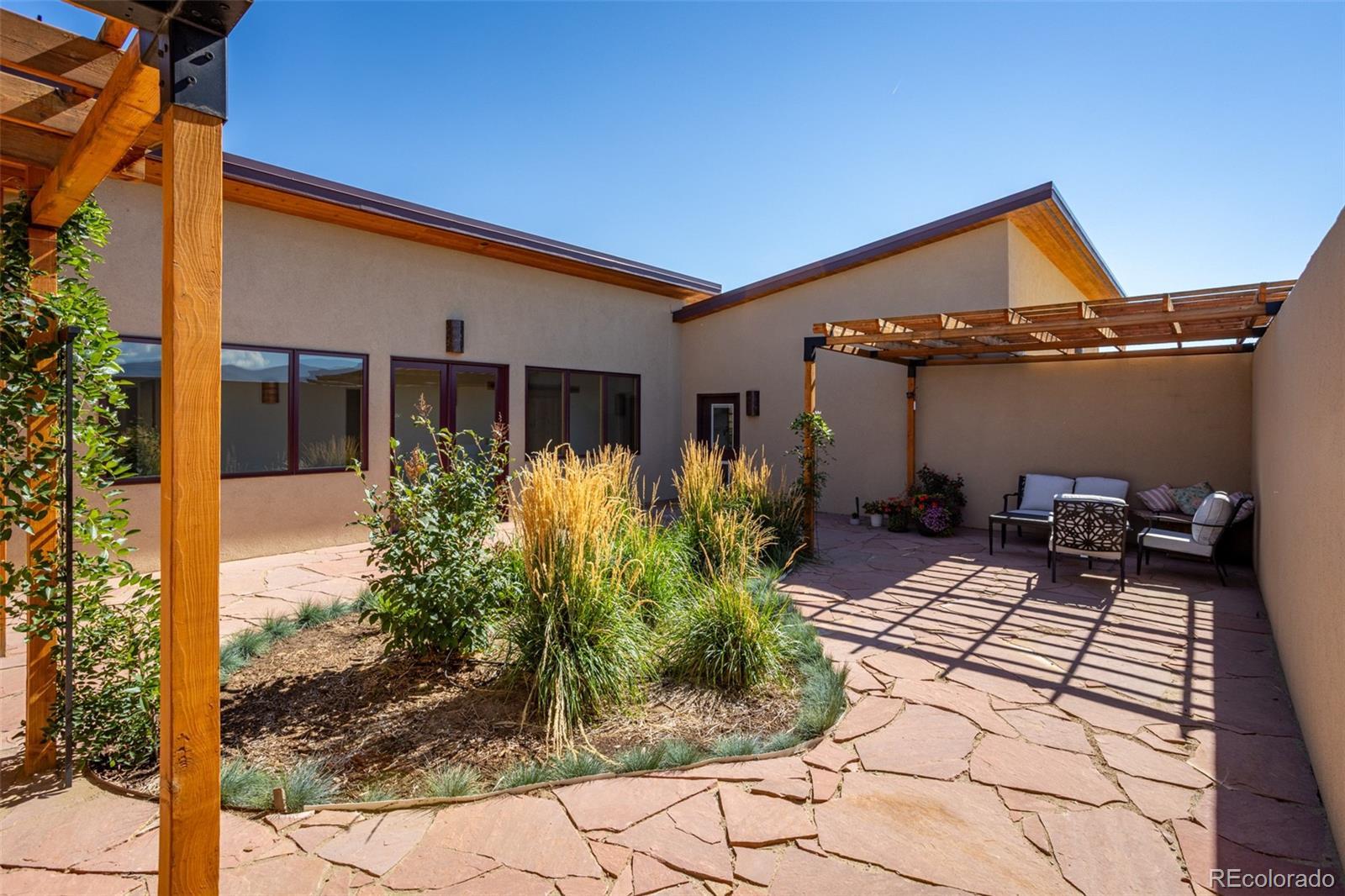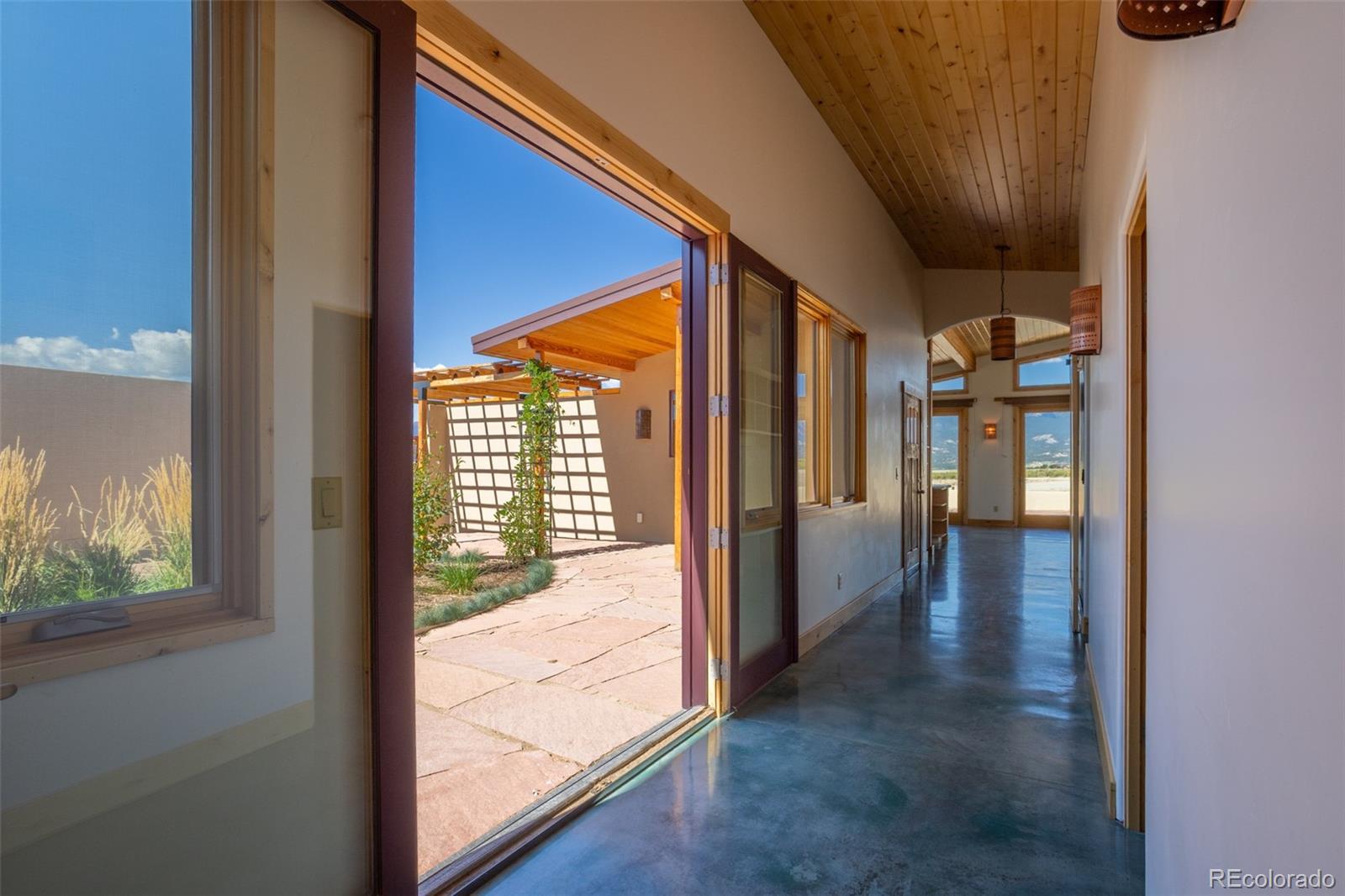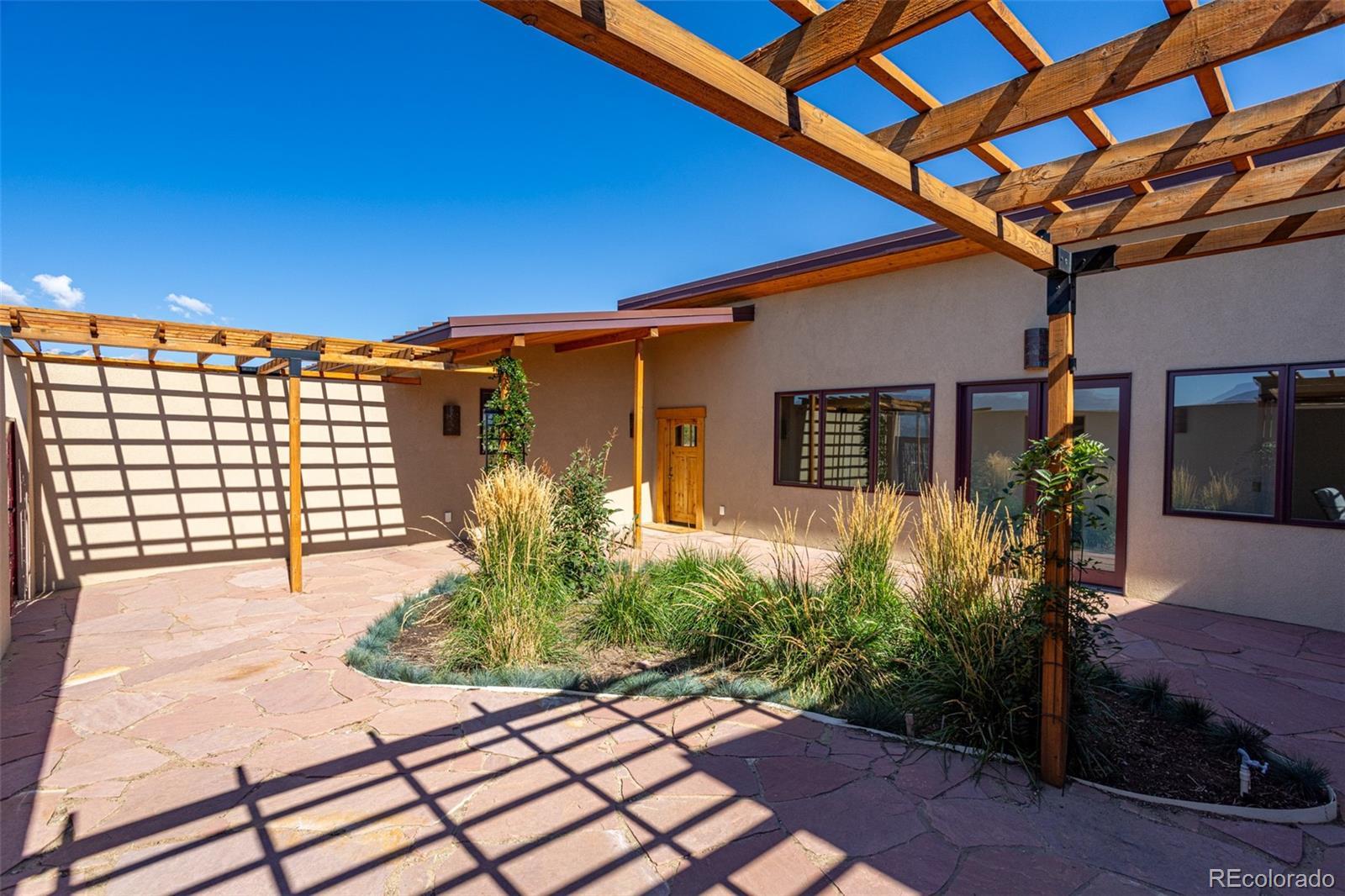 This modern, open-concept home, built in 2019, spans 1,748sf, featuring 2 bedrooms, 2 bathrooms, a modern kitchen with a clean and functional design and a large island, an oversized 2 car garage, a laundry room with a utility sink, and amazing outdoor spaces. Large windows and tri-fold glass patio doors open to panoramic views of the surrounding mountains and create an amazing indoor/outdoor experience when opened, effectively bringing the outdoors in. Polished concrete floors provide a clean, modern touch. A freestanding pellet stove adds to the comfortable feel of the home and supplements the in-floor radiant heat. Outside living space includes a large wraparound patio to enjoy the open space and mountain views and an enclosed south-side patio with pergolas providing shade and privacy. The 40 acre property is livestock ready with a two stall loafing shed with large tack room and hay storage, hydrant and automatic waterer, turnout stalls, a large 300ft x 500ft paddock, and an out-door arena (approximately 100ft x 263 ft), all constructed of steel posts and piping. A domestic well allows for watering livestock and up to an acre of lawn and garden. Bordered on two sides by BLM land the location offers plenty of open space, quiet, star-filled night skies, and direct access to public land for endless hiking, biking, or horseback riding. Downtown Salida, Colorado's largest National Historic District, is less than 6 miles away for shopping, dining, medical services, and other amenities. Arkansas River access is five miles from the property and Monarch Mountain Ski Area is only 26 miles away. There are minor covenants/deed restrictions but there is no home owner's association of dues associated with the property.