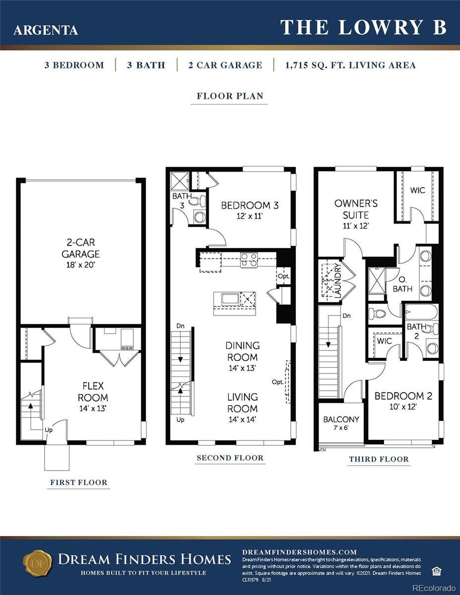 Dream Finders Homes is excited to be a part of Argenta and offer our brand-new luxury three-story townhomes in Metro Denver. This 3-bedroom, 3-bathroom Lowry B allows for optimum flow and flexibility of space. Not only are there dual master suites, but this home also comes with a balcony and laundry room on the 3rd floor, open 2nd floor with 3rd bedroom and full bath, plus a bonus/flex room on the first level, and a 2-car garage! Built with energy efficiency in mind, with an eco-friendly AC, furnace, tankless water heater, lighting, and more. We also include blinds in this community! This particular home is on a corner lot in a stunning courtyard. These chic homes are in the heart of Metro-Denver and are waking distance to Lowry Town Center and Lowry Dog Park, UCHealth, and Cherry Creek Shopping Center. The location is also convenient to Downtown and offers easy access to I-25 and I-70. We know you'll love these stunning townhomes at Argenta so call us today and schedule a visit!