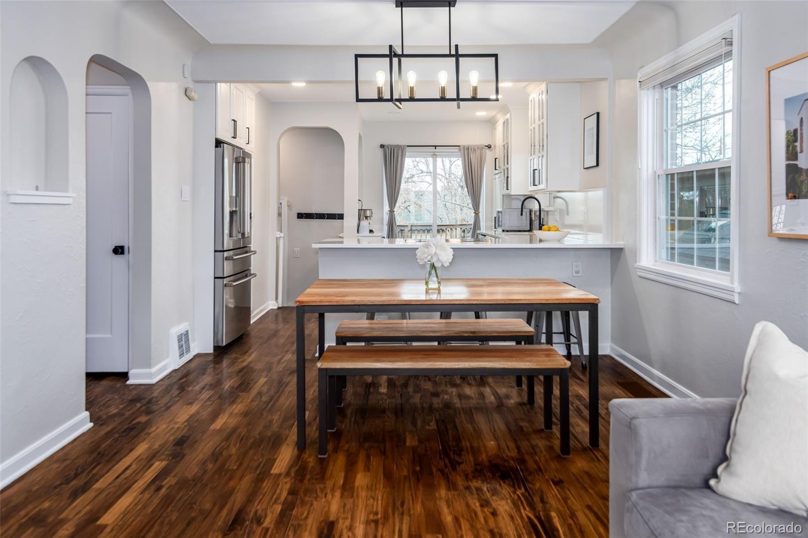 Tucked away on a quiet, tree-lined street in the heart of Berkeley, this charming mid-mod home offers a seamless blend of style, comfort, and location. *Zoned for Edison Elementary. Just one block from Rocky Mountain Lake Park, enjoy easy access to some of the neighborhood’s most loved outdoor and community spaces, perfect for daily walks, relaxing afternoons, or taking in Colorado sunsets. The fully renovated kitchen is a true highlight, featuring brand new GE Café appliances including a dishwasher, refrigerator, and induction range/oven. Modern finishes and thoughtful design make both everyday living and entertaining effortless. The included LG front-load washer and dryer add to the home’s move-in-ready appeal, while brand new carpet in the basement creates a fresh and inviting lower level ideal for a second living space, office, or guest area. Natural light fills the interior, showcasing clean lines and timeless character that reflect classic mid-century inspiration. Set on a generous lot, the outdoor spaces are equally impressive. Multiple patios offer ideal areas for dining, relaxing, or hosting, while the spacious yard is fully enclosed by a backyard fence that is less than one year old, providing privacy and peace of mind. Solar helps reduce utility costs, adding both efficiency and long-term value. A two-car garage plus two additional parking spaces provide rare convenience in this desirable area. Location is a standout feature. A short walk brings you to the vibrant Tennyson Street corridor with its popular shops, restaurants, and local favorites. Nearby access to I-70, Speer, Federal, and I-25 makes getting around town or heading to the mountains easy. The home is located within the NW enrollment zone, offering buyers flexibility when exploring public school options. Enjoy close proximity to Berkeley Lake Park, Smiley Library, 32nd Street dining, and quick access to LoHi. This Berkeley gem offers a lifestyle that feels both connected and relaxed.