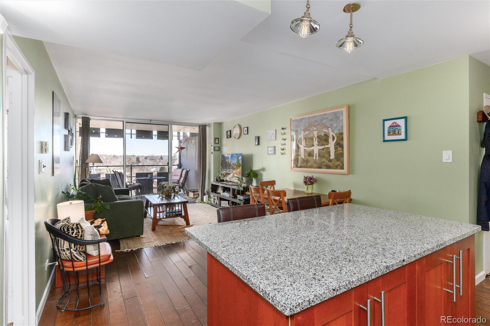 Welcome Home to your perfect 1 bedroom, 1 bath condo in the heart of Cap Hill! Thoughtfully designed to maximize every inch, the space feels bright and welcoming, with natural light filling the open living area and a great private balcony to soak up the morning sun! The bedroom offers a peaceful retreat with just the right amount of space to unwind. The kitchen is remodeled (as is the bathroom), open and spacious—ideal for everyday living. With its cute details and comfortable layout, this condo is perfect for anyone looking for a low-maintenance home! Building amenities include rooftop pool, fully equipped fitness center, sauna, clubhouse and outdoor deck—perfect for gathering with friends or taking in panoramic city and mountain views. Deeded parking spot and storage unit. Turnkey and ready for move in!